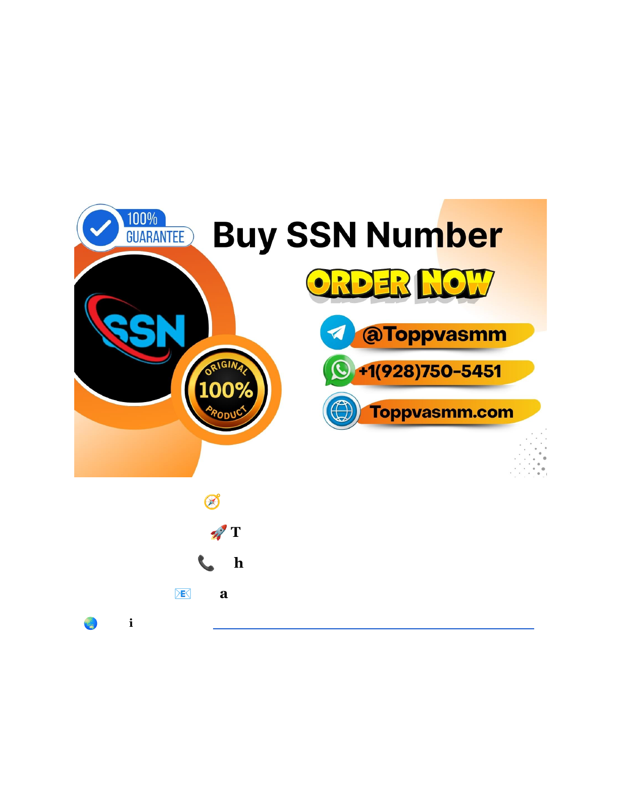 How Can I Get a Social Security Number? Buy SSN Number Need a Social Security Number? It's important for work and benefits. You can apply at a Social Security office. Bring your ID and documents. The process is simple. Want to know more? Keep reading. 🧭 24/7 Hours Reply/Contact 🚀 Telegram:@Toppvasmm 📞 WhatsApp:+1(928)750-5451 📧 Email:toppvasmm281@gmail.com 🌏Website Visit Now:- https://toppvasmm.com/product/buy-ssn-number/ Biography https://toppvasmm.com/product/buy-ssn-number/ How Can I Get a Social Security Number? Aspect Details References / Sources What is a Social Security Number (SSN)? A Social Security Number is a nine-digit number issued by the Social Security Administration (SSA) used to track individuals for Social Security benefits and taxation. Social Security number & card | SSA Who can apply for an SSN? - U.S. born citizens. - Non-citizens with permission to work from the Department of Homeland Security (DHS). Social Security Administration - SSN Eligibility How to apply for a Social Security Number for the first time? 1. Start the application online. 2. Self-schedule an appointment at your local SSA office or card center. 3. Bring required documents such as proof of identity, age, and U.S. citizenship or immigration status. 4. Complete the application in person. SSA Blog - Faster SSN Application SSA - How to Get a Social Security Number Required documents for SSN application - Proof of identity (e.g., U.S. passport, driver's license). - Proof of age (e.g., birth certificate). - Proof of citizenship or lawful immigration status. - For noncitizens: DHS work authorization. SSA - Required Documents How to get proof of your Social Security Number? - Your Social Security card is the legal proof of your SSN. - Other documents may serve as proof such as tax forms, Social Security benefit statements, or pending SSN applications. - If these are unavailable, request a replacement card. SSA - How to Get Proof of SSN or Benefits CoveredCA - Proof of Social Security Number Is a Social Security Number a public record? - Many state laws restrict public display of SSNs, but enforcement varies. - Some open records laws allow disclosure of certain government records that may include SSNs. - Federal Privacy Act restricts public display and lookup of full SSNs. - Courts typically redact all but the last four digits on public documents. Epic.org - Government Records & Privacy California Courts - SSN Redaction Government Accountability Office (GAO) Who can lawfully request your SSN? Federal law mandates that certain agencies and entities may request your SSN, including: - Departments of Motor Vehicles (DMV) - Tax authorities - Welfare offices - Employers, financial institutions, and government agencies as required by law. IdentityHawk - Who Can Request SSN How to replace a lost or stolen Social Security card? - Apply online or at your local Social Security office. - Provide required identification documents. - There is no fee for replacement cards. - Limit on number of replacement cards per year and in lifetime. SSA - Replace Social Security Card https://toppvasmm.com/product/buy-ssn-number/ How to protect your Social Security Number? - Only provide your SSN when legally required and you understand its use. - Monitor your personal information to detect identity theft. - Understand local and state laws regarding SSN privacy and protection. - Be cautious with public records that may contain SSN information. IdentityTheft.gov - Protect Your SSN SSA - Privacy Act and SSN Protection Additional resources - FOIA Requests for Social Security information: Submit via FOIAXpress Public Access Link. - Social Security Statement: View your earnings and estimated benefits online. - Genealogy and historical SSN records for family research. SSA FOIA Requests Get Your Social Security Statement Social Security Number History - SSA Early Life The idea of a Social Security Number (SSN) began many years ago in the United States. It was created to help keep track of people's earnings and to provide benefits when they retire or cannot work. The system started in the 1930s during a time when many Americans needed support. Over time, the use of SSNs grew to include many other purposes, like paying taxes and applying for jobs. Today, people born in the U.S. usually get their SSN shortly after birth. If someone moves to the U.S. from another country, they can apply for an SSN once they have permission to work or live in the country. The Social Security Administration in Austin, Texas, and other offices help people get their SSNs by checking their documents and sending the number by mail. It is important to use official sources to apply for or replace an SSN to keep personal information safe.3 🧭 24/7 Hours Reply/Contact 🚀 Telegram:@Toppvasmm 📞 WhatsApp:+1(928)750-5451 📧 Email:toppvasmm281@gmail.com 🌏Website Visit Now:- https://toppvasmm.com/product/buy-ssn-number/ https://toppvasmm.com/product/buy-ssn-number/ https://toppvasmm.com/product/buy-ssn-number/ Family How Can I Get a Social Security Number? Step Description 1. Application Fill out an application for a Social Security card. You can start online or get the form at your local Social Security office. 2. Appointment Schedule a visit to your local Social Security office to submit your documents and complete the process. 3. Documents Bring important documents that prove your identity, age, and citizenship or immigration status. 4. Parents and Siblings Parents: John and Mary Smith live in Austin, Texas. They help with the application by providing their names and information. Siblings: Emily Smith, aged 15, and Michael Smith, aged 10, also live in Austin. Their Social Security numbers may help in family records. To get a Social Security number, you need to show proof of who you are. Parents often assist children in this process. They provide their names and documents to the Social Security office. Siblings' information can also be useful to che