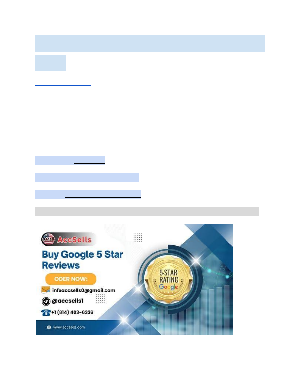 Fast Track Your Google Reviews: A How-To Guide Buying positive reviews can help people trust your business more. We offer 100% real, non-drop Google reviews from different places to fit your business as per your brand presence and that’s why we are rated as the best Google reviews growth services provider. Our safe and reliable service will help your (GBP) Google Business Profile grow. That’s why we’re known as one of the best places to buy Google reviews for growth of your GMB account. If You want to more information just contact now 24 Hours Reply/ Contact : – ↪ Telegram: @accsells1 ↪ WhatsApp: +1 (814) 403–6336 ↪ E-mail: infoaccsells0@gmail.com ↪ Website Visit: https://accsells.com/product/buy-google-5-star-reviews/ How to Buy Google Reviews in 30 Seconds https://accsells.com/product/buy-google-5-star-reviews/ https://t.me/accsells1 https://api.whatsapp.com/send?phone=18144036336 mailto:infoaccsells0@gmail.com https://accsells.com/product/buy-google-5-star-reviews/ 1. Pick A Plan Choose how many online reviews you want from readymade packages to buy for your business profile and add them to your order. 2. Add To Cart Simply provide your Google Business Profile (GBP) link and your email address. No password required. We recommend to once Crosscheck GBP link before sharing. 3. One-Step Checkout After that, easily pay for Google reviews with a single click using your preferred payment methods, such as credit card, crypto, apple pay or any other card. 4. Get Reviews Delivered! Within a short turnaround time, get your positive reviews instantly delivered to your business profile account safely. All Google reviews are from real people, non-drop, so it’s not illegal. Increase Visibility Offering exceptional services to help businesses locally to gain the desired visibility and more customers. Non-drop Reviews Guarantee 100% real, genuine and non-drop Google reviews. If unsatisfied, ask for a refund. Dedicated Support Get 24*7 customer support from our team to answer all your queries related to purchasing Google reviews. Delivery Worldwide We offer instant delivery of Google reviews services for your business profile in the UK, Canada, Australia, and many other places. Best Place To Buy Positive Google Reviews — AccSells Are you looking to buy online reviews at cheap prices to enhance your brand’s image and attract more organic traffic to your website and offline stores? AccSells offer positive high-quality Google reviews service only to help your business stand out at affordable prices. https://accsells.com/product/buy-google-5-star-reviews/ Our paid Google reviews will help you achieve growth goals effectively and effortlessly. With us, you get reliable, affordable, and the best experiences. When you pay for positive Google reviews from our team, you get reviews sourced from 100% real people and local profiles. We add value to your business page and also contribute to ranking your store on local searches by providing Google 5 star reviews. AccSells are rated as the best site to buy Google reviews. We help online and offline businesses and professional service providers to maximise their impact on the target audience. Our Google review services are non-drop and 100% guaranteed with complete customer satisfaction. Our online reviews service experts team will make sure that your online reputation is enhanced and that your business starts appearing more credible than before. Benefits To Buy Google Reviews We know, the first question you want to ask is, what are the real benefits of buying Google reviews, and how will it help my GMB profile? It’s true that growing organic Google business reviews for your profiles takes a lot of time. Instead, spend your marketing budget on purchasing real Google reviews from real people and take these below-listed advantages. Build Online Reputation Having high-quality product is not impactful, until customers love it. So, start with buying a few positive Google reviews to enhance your brand’s reputation & get higher conversion rates. Support Buying Decisions No one goes with a brand that has poor reviews. Get Positive Google reviews on your business page and give them more confidence about your products and offerings. Improve Local SEO Google considers positive reviews a strong ranking signal. If you target all your keywords with paid reviews on Google, your business will start appearing in local listings in countries like the UK, CA, and AU. Convert More Customers Positive Google reviews are a powerful conversion tool. Buy Google 5 star reviews from AccSells and transform leads into lifetime customers. Build Brand Awareness https://accsells.com/product/buy-google-5-star-reviews/ https://accsells.com/product/buy-google-5-star-reviews/ https://accsells.com/product/buy-google-5-star-reviews/ When you buy paid reviews on Google, the visibility of your business increases online. Enhanced visibility leads to more people knowing about your business, thereby increasing its awareness and customer queries. Improve Brand Trust These days, customers check your Google business reviews to know everything about your brand, the quality of products or services you deliver, and the areas you serve. That’s what makes your brand a hit or a flop. Increased Google reviews can establish brand trust; try out yourself. More Customer Engagement Real reviews on Google profiles encourage more people to reach out to your business. Moreover, when you engage with the increase Google reviews, a sense of community is fostered among your prospects. Improved Visibility in Local Search Results When a prospect searches using a local keyword or search query related to your business, good Google review services help your business rank locally at the top. Buy more Google reviews to drive more leads and sales to your business. Influence Purchasing Decisions An increase in positive Google reviews significantly impacts the buying decisions of consumers, especially the new 