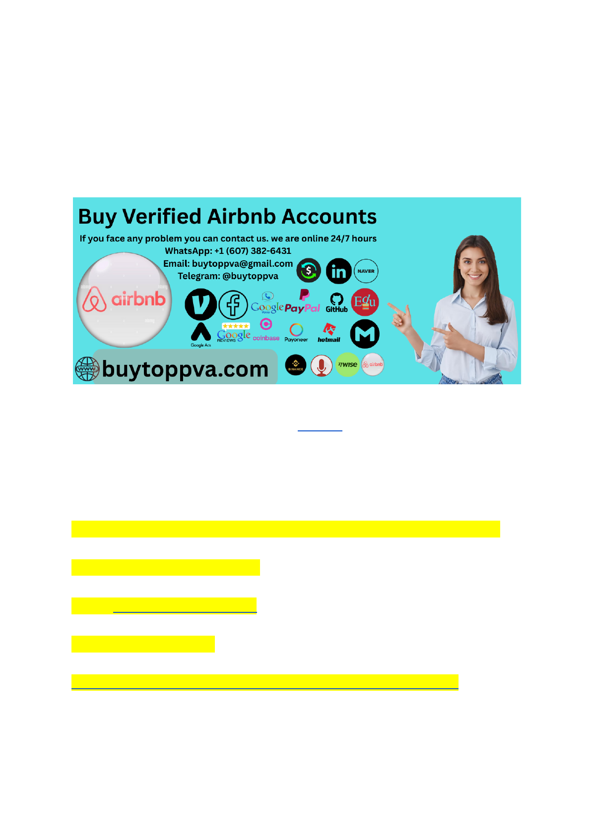 Fast & Trusted To Buy Verified Airbnb Accounts for Hosting ...2025 Buy Airbnb account from buytoppva.com offers several key benefits, especially for those looking to quickly and efficiently access Airbnb’s platform. These accounts are already verified through Airbnb’s strict identity checks, allowing you to bypass the time-consuming verification process and start using the platform right away. An account increases your credibility as a host or guest, ensuring you can book or list properties without restrictions. Additionally, verified accounts come with higher booking limits, enhanced security, and full access to all Airbnb features, including customer support and premium tools for managing listings. buytoppva.com guarantees that all accounts are legitimate, providing a safe and reliable service with instant delivery. This is ideal for users looking to make immediate transactions or for those who need multiple verified accounts for various purposes. With excellent customer support and quick service, buying a verified Airbnb account from buytoppva.com offers convenience, efficiency, and peace of mind. If you face any problem you can contact us. we are online 24/7 hours WhatsApp: +1 (607) 382-6431 Email: buytoppva@gmail.com Telegram: @buytoppva https://buytoppva.com/product/buy-verified-airbnb-accounts/ Airbnb Accounts Features 100% Satisfaction Guaranteed. Photo ID confirmed. https://buytoppva.com/product/buy-verified-airbnb-accounts/ mailto:buytoppva@gmail.com https://buytoppva.com/product/buy-verified-airbnb-accounts/ Email checked The account is active and fully verified. Complete documentation, and verify the account. High-quality service. Provide full access Available in all countries Airbnb accounts. 100% Money-Back Guarantee. 24/7 service access and customer support. Buy Airbnb account can offer significant advantages for both hosts and guests looking to utilize the platform quickly and efficiently. One of the primary benefits is immediate access to all of Airbnb’s features without having to go through the lengthy and often cumbersome verification process. Verified accounts are crucial for gaining trust and credibility, ensuring that users are seen as legitimate hosts or guests. For hosts, purchasing a verified account provides an established profile that can attract more bookings and reduce the risk of cancellations. With a verified account, hosts often enjoy higher booking limits and additional features to help manage listings more effectively. For guests, buying a verified Airbnb account allows quick and seamless booking without the need for repeated verification steps, making it easier to secure accommodations when needed. Verified accounts also tend to have better customer support, ensuring any issues are resolved promptly. Additionally, a verified account offers enhanced security, giving both hosts and guests peace of mind knowing their personal and financial information is protected. Whether you’re looking to rent out a property or book an accommodation for travel, purchasing a verified Airbnb account streamlines the process and provides greater flexibility, security, and credibility on the platform. Buy Airbnb Account What You Need to Airbnb Account Requirements? As you can see, there are many requirements to have the Airbnb account created and maintained; which are important not only for hosts but also for guests to ensure a seamless and secure experience on the platform. You enter a legitimate email address and create a strong password. Airbnb generally requires a government-issued ID for identity verification (like a passport, driver’s license, or national identity card) for identity confirmation. Additionally, you may need to upload a selfie or perform facial recognition to match the ID provided, ensuring a higher level of security. Proof of address, like a recent utility bill or bank statement, may also be required in some cases, especially for hosts. For hosts looking to list a property, Airbnb requires details about the property, including photos, descriptions, and pricing, along with a clear understanding of local laws and regulations that may affect rentals in your area. Hosts should also register for bank transfers, or connect their PayPal account as a payment method, in order to receive payouts from bookings. Finally, not getting banned from the platform is also important, which involves building good reviews and following Airbnb’s rules and policies. Following these commitments will ultimately increase the trust, smoothness and entertainment of user activity on our platform. Buy Airbnb Account Benefit of Buy Verified Airbnb Account Buying a verified Airbnb account offers several key benefits for individuals looking to start hosting or booking properties on the platform quickly and securely. One of the primary advantages is the ability to bypass the often time-consuming verification process. Verified https://buytoppva.com/product/buy-verified-airbnb-accounts/ accounts are already authenticated, meaning users can immediately access all of Airbnb’s features, including the ability to book stays or list properties without delay. For hosts, a verified account helps build trust with potential guests, as Airbnb prioritizes profiles with verified credentials. This adds the probability of getting bookings and credibility in the community. For guests, a verified account ensures smoother and faster bookings, reducing the chance of encountering issues during the reservation process. Additionally, verified accounts come with higher booking limits and fewer restrictions, allowing users to enjoy the full flexibility of the platform. A verified profile also benefits from quicker customer support and better protection in case of disputes or cancellations. Furthermore, Airbnb’s verification process helps ensure safety, reducing the risk of fraud or other malicious activities. By purchasing a verified Airbnb account, users gain instant credibility, security, and acc