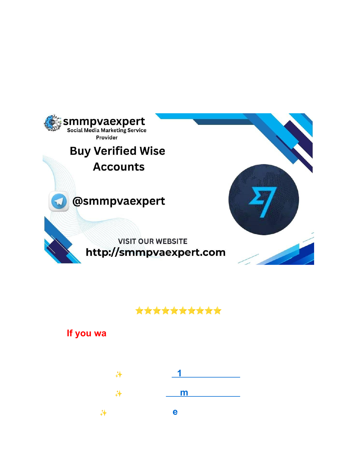 How to Securely Verify Your Wise Account in 2024: Essential Tips Are you tired of worrying about the security of your financial transactions? In today's digital age, having a reliable and secure payment method is crucial. When it comes to managing your finances, verified accounts can provide an additional layer of trust and credibility. But what does it mean to buy verified Wise accounts, and how can it benefit you? ⭐⭐⭐⭐⭐⭐⭐⭐⭐⭐ If you want more information just contact me now. 24 Hours Reply/Contact ✨WhatsApp:+1(256)7064932 ✨Telegram:@smmpvaexpert ✨Email:smmpvaexpert@gmail.com https://api.whatsapp.com/send/?phone=12567064932&text&type=phone_number&app_absent=0 https://t.me/smmpvaexpert ●── ●✦── ●✦── ●✦── ●✦── ●✦── ●✦── ●✦●── ●✦── Buy Verified Wise Accounts This article will guide you through the process of purchasing a verified Wise account, highlighting the importance of security and reliability in financial transactions. Key Takeaways ● Understanding the benefits of using verified Wise accounts for secure financial transactions. ● Learning how to purchase a verified Wise account safely and efficiently. ● Gaining insights into the importance of reliability in financial management. What Are Wise Accounts and Why They Matter Wise accounts have become an essential tool for individuals and businesses looking to manage international transactions efficiently. Understanding what Wise accounts are and their significance is crucial for anyone involved in cross-border financial activities. The Evolution from TransferWise to Wise In 2011, the company was founded as TransferWise, focusing on providing a cost-effective alternative for international money transfers. Over time, the company evolved and rebranded as Wise in 2021, expanding its services beyond just money transfers to include multi-currency accounts and other financial solutions. This evolution reflects the company's commitment to adapting to the changing needs of its users. Core Features of Wise Accounts Wise accounts offer several key features that make them valuable. These include the ability to hold and manage multiple currencies in one account, low fees for international transactions, and a transparent exchange rate. The multi-currency management capability is particularly beneficial for businesses and individuals with international financial obligations. The Verification Process Explained The verification process for Wise accounts is a critical step that ensures the security and compliance of transactions. To verify a Wise account, users must provide identification documents, which helps prevent fraud and comply with anti-money laundering regulations. This process, while detailed, is designed to protect users and maintain the integrity of the Wise platform. For those looking to acquire a verified Wise account, it's essential to find trusted wise account sellers to ensure a secure transaction. Whether you're an individual or a business, understanding the value and process of obtaining a Wise account can significantly impact your financial operations. ⭐⭐⭐⭐⭐⭐⭐⭐⭐⭐ If you want more information just contact me now. 24 Hours Reply/Contact ✨WhatsApp:+1(256)7064932 ✨Telegram:@smmpvaexpert ✨Email:smmpvaexpert@gmail.com ●── ●✦── ●✦── ●✦── ●✦── ●✦── ●✦── ●✦●── ●✦── Benefits of Using Verified Wise Accounts Verified Wise accounts offer a multitude of benefits for individuals and businesses looking to simplify international transactions. With a verified account, users can enjoy a range of features designed to make financial operations smoother and more cost-effective. International Money Transfers at Low Fees One of the primary advantages of using a verified Wise account is the ability to make international money transfers at significantly lower fees compared to traditional banking systems. Wise uses the real exchange rate, ensuring that users get the best possible deal without hidden charges. Multi-Currency Management Capabilities Verified Wise accounts also offer advanced multi-currency management capabilities. Users can hold, send, and receive money in multiple currencies, making it an ideal solution for businesses operating globally or individuals with international financial obligations. Edit https://api.whatsapp.com/send/?phone=12567064932&text&type=phone_number&app_absent=0 https://t.me/smmpvaexpert Delete Business Payment Solutions For businesses, verified Wise accounts provide a streamlined payment solution that can be integrated into existing financial systems. This includes batch payments, recurring payments, and detailed transaction records, making financial management more efficient. Integration with Other Financial Services Wise accounts can be easily integrated with other financial services, enhancing their utility. This includes accounting software, payment gateways, and other financial tools, allowing for a more cohesive financial management experience. By buying a verified Wise account online, users can immediately tap into these benefits, making it a worthwhile investment for those looking to optimize their financial operations. When seeking the best Wise accounts to buy, it's essential to consider the seller's reputation and the account's features to ensure a smooth transition. Why People Buy Verified Wise Accounts Many individuals and businesses are turning to purchasing verified Wise accounts to streamline their financial transactions. This trend is driven by several key benefits that come with having a verified account. Immediate Access Without Waiting Periods One of the primary reasons people buy verified Wise accounts is to gain immediate access to the platform's services without the waiting period associated with verifying a new account. This is particularly useful for those who need to make urgent international transactions