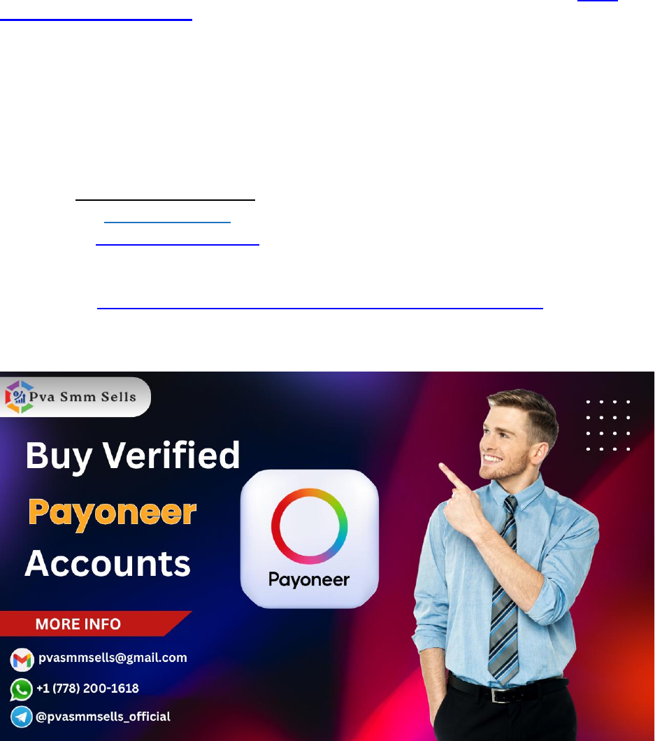 Buy Verified Payoneer Accounts Introduction to Payoneer In today's fast-paced digital economy, having a reliable payment solution is essential. Enter Payoneer—a global online payment platform that connects businesses and freelancers to clients around the world. With its user-friendly interface and robust features, it has quickly become a favorite among individuals seeking seamless financial transactions. ⭐⭐⭐⭐⭐⭐⭐⭐⭐⭐⭐⭐⭐⭐⭐⭐⭐⭐⭐⭐ If you want to more information just contact now. 24 Hours Reply/Contact ➤E-mail: pvasmmsells@gmail.com ➤WhatsApp: +1 (778) 200-1618 ➤Telegram: @pvasmmsells_official ➤Discord: pvasmmsells ➤Visit Now: https://pvasmmsells.com/product/buy-verified-payoneer-accounts/ ⭐⭐⭐⭐⭐⭐⭐⭐⭐⭐⭐⭐⭐⭐⭐⭐⭐⭐⭐⭐ But there's more to the story. To unlock all the benefits of Payoneer, you need a verified account. https://pvasmmsells.com/product/buy-verified-payoneer-accounts/ https://pvasmmsells.com/product/buy-verified-payoneer-accounts/ mailto:pvasmmsells@gmail.com https://wa.link/ln3e7x https://t.me/pvasmmsells_official https://pvasmmsells.com/product/buy-verified-payoneer-accounts/ This verification not only enhances security but also opens up access to various features that can elevate your business operations or freelance career. Are you ready to explore why buying verified Payoneer accounts could be your ticket to hassle- free payments? Let’s dive into how this can transform your financial experience! Benefits of Having a Verified Payoneer Account Having a verified Payoneer account opens doors to countless opportunities for online transactions. This verification provides an added layer of security, ensuring that your financial information remains protected. With a verified account, you gain access to faster withdrawals and seamless transfers. This means you can receive payments from clients globally without unnecessary delays. Another significant advantage is the ability to transact in multiple currencies. A verified Payoneer account allows you to hold balances in different currencies, reducing conversion fees and making international business more economical. Additionally, many platforms prefer or require users to have a verified status for processing payments. Being verified boosts your credibility among clients and partners alike, fostering trust in your professional dealings. Having this level of verification can simplify tax reporting processes when dealing with cross- border transactions. It helps keep everything organized and compliant with regulations. How to Set Up and Verify a Payoneer Account Setting up a Payoneer account is straightforward. First, visit the official website and click on “Sign Up.” You’ll need to provide your email address and create a secure password. After that, fill in your personal information. This typically includes your name, date of birth, and country of residence. Be sure to enter accurate details as they need to match your identification documents. Next comes the verification process. You'll be required to upload identification such as a passport or driver's license along with proof of address like a utility bill or bank statement. Once submitted, Payoneer will review these documents for approval. This may take some time but ensures you have full access to all features when verified. Regularly check your email for updates on the status of your application so you're informed about any further requirements needed for completion. Why People Choose to Buy Verified Payoneer Accounts https://pvasmmsells.com/product/buy-verified-payoneer-accounts/ Many individuals and businesses turn to buying verified Payoneer accounts for convenience. Setting up payment solutions can be time-consuming, especially when navigating verification processes. A ready-made account saves precious hours. Moreover, a verified account opens doors to global markets. Freelancers and entrepreneurs want seamless transactions across borders without delays. This is crucial in today’s fast-paced business environment. Security is another significant factor; verified accounts often come with added protections against fraud or unauthorized access. Buyers gain peace of mind knowing their funds are safeguarded. Those new to online payments may find it daunting to manage the intricacies of creating an account from scratch. Purchasing a fully operational, verified account eliminates that struggle and allows them to focus on what truly matters—growing their business or freelance career. Buy Verified Payoneer Accounts — Instant Setup for Global TransactionsConclusion When you buy verified Payoneer accounts, you unlock instant access to a world of opportunities. The setup process is seamless and efficient, allowing users to engage in global transactions without delay. Having an account ready for use means you can start receiving payments from clients worldwide immediately. This feature is particularly beneficial for freelancers and businesses looking to expand their reach. Moreover, the verification aspect adds a layer of security. You can trust that your financial activities are safeguarded while enjoying swift transaction capabilities. Purchasing a verified account ensures compliance with necessary regulations, eliminating potential hurdles along the way. Embrace the convenience and reliability that come with this solution today! Verified Payoneer Accounts — Trusted Solution for Freelancers & Entrepreneurs Freelancers and entrepreneurs thrive on flexibility, and having a verified Payoneer account provides just that. This payment platform simplifies international transactions, allowing users to receive funds from clients worldwide without hassle. With a verified account, you eliminate the stress of payment delays and restrictions. It opens doors to numerous marketplaces like Upwork and Fiverr where timely payments are crucial for success. https://pvasmmsells.com/product/buy-verified-payoneer-accou