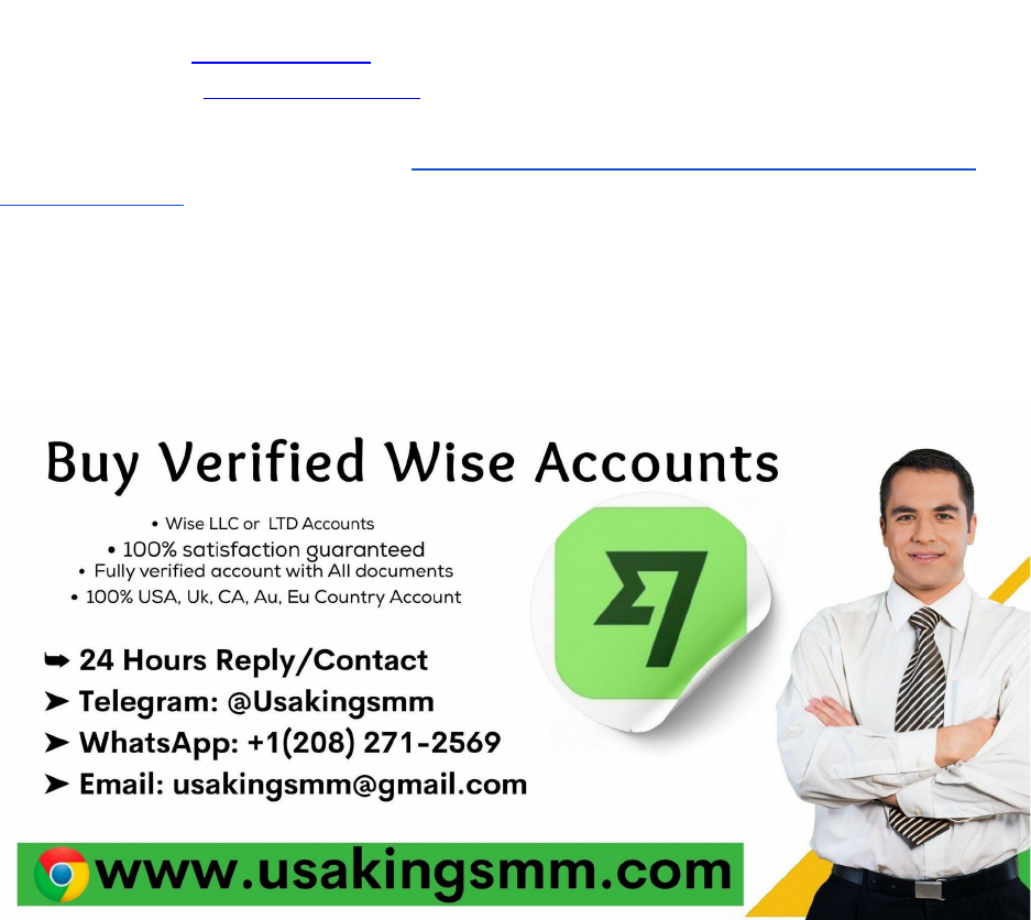 Best Way Tips on How to Buy Verified Wise Accounts in 2025 Looking to buy verified Wise accounts? Don’t take risks with unverified sources – choose our verified Wise accounts for a fast, reliable, and worry-free experience. Your search ends here! At Usakingsmm, we provide a wide range of fully verified Wise accounts to make your transactions smooth, secure, and hassle-free. With so many sellers in the market, it’s tough to know who to trust. Unfortunately, scams are everywhere, but we stand out as a trusted and experienced provider, ensuring your safety and satisfaction. ➥ 24 Hours Reply/Contact ➤ Telegram: @Usakingsmm ➤ WhatsApp: +1(208) 271-2569 ➤ Email: usakingsmm@gmail.com Website Visit Now:-Click the link:- https://usakingsmm.com/product/buy-verified-wise-accounts/ With our simple and secure purchase process, getting a verified Wise account has never been easier. No more waiting, no more uncertainty – our accounts are 100% valid and ready for immediate use. Whether you need a personal or business Wise account, we’ve got the perfect solution to meet your needs. Buy verified Wise accounts now and enjoy the benefits of a verified Wise account today! What are verified wise accounts? The verified Wise account is an authenticated account that has been registered on the verified Wise accounts platform and has successfully passed a detailed verification process. This process typically includes confirming the identity of the account owner and ensuring compliance with applicable laws. Verified Wise accounts offer numerous benefits, including higher transaction limits, enhanced security, and greater trust among customers. These accounts provide access to additional features and services such as forex and borderless banking. To complete the verification, users may need to submit identity documents for personal identification, proof of address, or other necessary information. Once verified, users can enjoy a seamless and secure experience while sending, receiving, and managing international funds with verified TransferWise accounts. With the assurance of a verified wise account, customers can confidently make banking transactions with peace of mind. ➥ 24 Hours Reply/Contact ➤ Telegram: @Usakingsmm ➤ WhatsApp: +1(208) 271-2569 ➤ Email: usakingsmm@gmail.com Website Visit Now:-Click the link:- https://usakingsmm.com/product/buy-verified-wise-accounts/ Benefits of Verified Wise Accounts Verified Wise accounts offer a range of advantages for users, ensuring both security and efficiency in managing finances. With a verified account, users can enjoy faster transactions and peace of mind, knowing their money is protected. Enhanced Security Verified Wise accounts are designed with enhanced security features to safeguard your personal and financial information. These added layers of protection make it more difficult for fraudsters to gain access to your account. Features like two-factor authentication provide an extra level of security, ensuring that only authorized users can access the account. The verification process also serves as a way to confirm your identity, ensuring that only legitimate users can make transactions. This process helps maintain the safety and integrity of your financial data, giving you the peace of mind you need when handling money online. Faster Transactions Time is precious, and Verified Wise accounts help you save it by processing transactions more quickly. Whether you’re sending or receiving money, the process is faster and more efficient, allowing you to avoid long delays. The speed of transactions ensures that you can manage your finances without unnecessary waiting. Why Should You Buy Verified Wise Accounts? If you’re considering using Wise for your transactions, you might wonder whether it’s worth buying a verified Wise account. The answer is yes! This paper will explain why you should buy verified Wise accounts and some of the advantages that you stand to gain by doing so. A verified Wise account offers numerous advantages, such as access to all platform features, including multi-currency support for seamless international transactions. Verified accounts provide enhanced security through document verification, ensuring that only legitimate users can access the account. This means faster, secure transfers with transparent fees and competitive exchange rates. By buying verified Wise accounts, you unlock these benefits, making managing both personal and business finances smoother, more efficient, and more reliable for global transactions. Buy Verified TransferWise Accounts If you’re looking to buy verified TransferWise accounts with full features, now is the right time to contact us and get your account. Verified TransferWise Accounts is a popular online money transfer service offering a convenient and cost-effective way to send and receive money internationally. Multi-currency accounts allow users to hold and manage funds in various currencies, making international transactions more flexible. Verified TransferWise accounts are known for their competitive exchange rates and low fees for currency conversion and international transfers. The platform provides a transparent fee structure, allowing users to see exact fees and exchange rates upfront, avoiding hidden charges. It ensures all features are enabled for seamless international transactions. Buy Verified Wise Personal and Business Accounts with Documents For those looking to buy verified Wise personal and business accounts with documentation, this is an opportunity to secure a fully enabled account for all your financial needs. With verified status, your transactions will be processed quickly, and you can manage your finances with confidence and convenience, both locally and globally. Wise (formerly TransferWise) is a leading online money transfer service that allows users to send and receive money internationally at low rates and with minimal fees. Wise offers both personal and business 