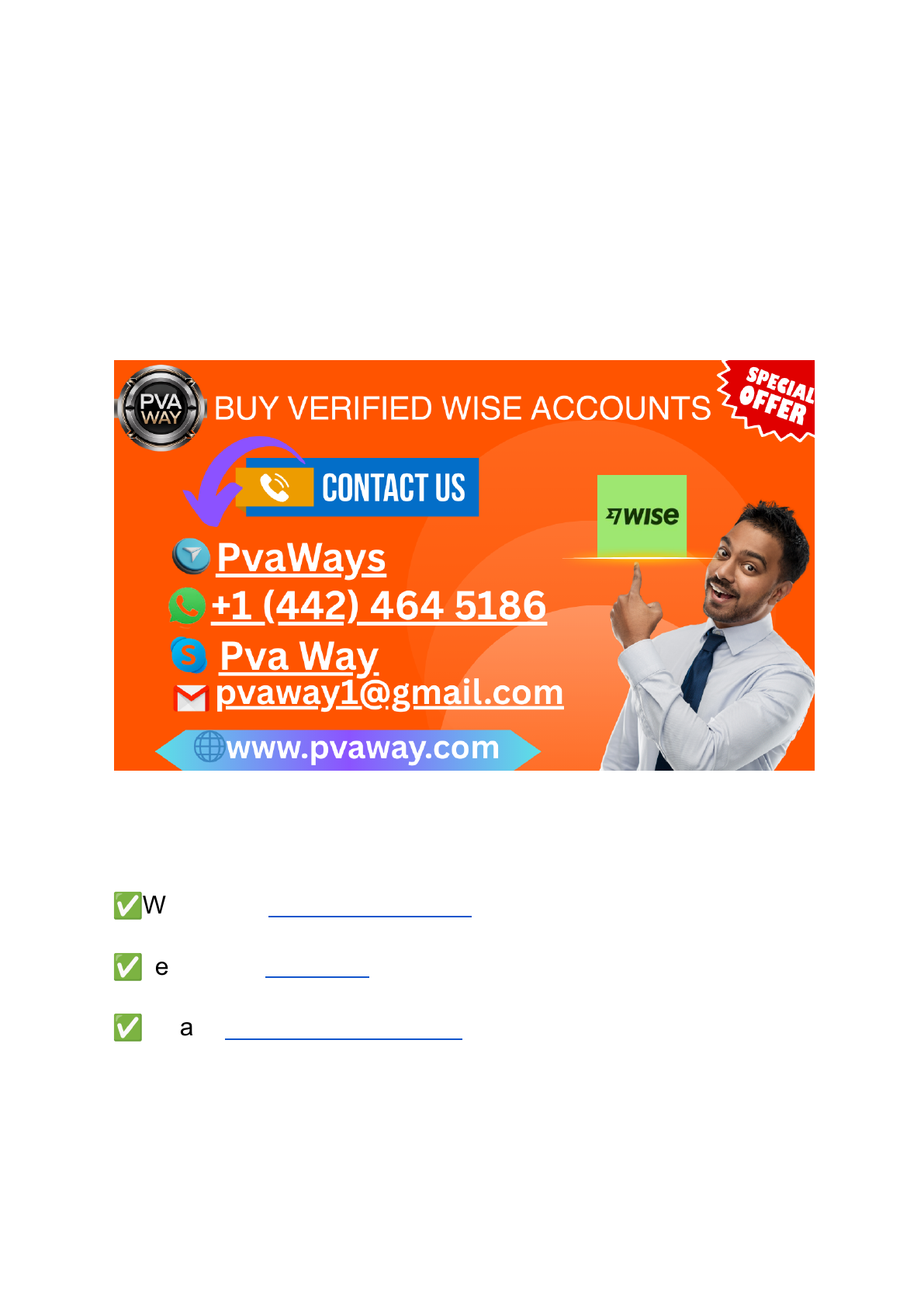 Buy Verified Wise Accounts-Best guide for users If you’re looking for a simple and secure way to manage your money internationally, our verified Wise (formerly Transferwise) accounts are the perfect solution. Whether you’re an individual or a business, having a verified Wise account can save you time and provide peace of mind. Just Knock us For Instant Reply ✅Whatsapp: +1 (442) 464 5186 ✅Telegram : PvaWays ✅Email : pvaway1@gmail.com Why Choose a Verified Wise Account? https://wa.me/+14424645186 http://t.me/pvaways mailto:pvaway1@gmail.com With our verified accounts, you can skip the complicated process of setting up and verifying a new account on your own. This means you can start using Wise right away without any delays. Our accounts are already verified, so you don’t need to worry about the paperwork or waiting times. How a Verified Wise Account Can Help You Wise is known for its low-cost international money transfers. A verified account means faster transactions, increased security, and a smoother overall experience. This is especially helpful if you frequently send or receive money across borders. Whether you’re sending money to family, paying for services abroad, or managing international business transactions, a verified Wise account makes the process easy and reliable. Easy Steps to Create and Verify a Wise Account If you prefer to create and verify your own Wise account, here’s a simple guide: 1. Get Started: Visit the Wise website or download the Wise app. 2. Sign Up: Click on the “Sign Up” button and enter your basic information like name, email, and phone number. 3. Secure Your Account: Create a strong password. Use a mix of letters, numbers, and symbols. 4. Verify Your Email: Check your inbox and click the verification link sent to you. 5. Provide Additional Info: You may need to provide more details like your nationality and address. 6. Verification: To fully activate your account, upload a photo of your ID (passport or driver’s license). Wise’s team will check your documents, and once verified, you’re ready to go! What to Expect During Verification The verification process is essential for security. It might take a few days, so be patient. During this time, it’s best to avoid making large transfers until your account is fully verified. Why Buy a Verified Wise Account? By purchasing a verified Wise account from us, you can skip all the steps above. It’s a hassle-free way to start using Wise immediately, with the confidence that your account is secure and ready for use. Start Using Wise Today Ready to make international transfers easier and more secure? Explore our selection of verified Wise accounts today and streamline your financial operations. Whether for personal use or business, having a verified account gives you the reliability and convenience you need. Types of Wise Accounts Available When using Wise (formerly Transferwise) for your financial needs, it’s important to know the different types of accounts you can choose from. Whether you’re an individual or a business, Wise offers options that fit your specific needs. Let’s take a closer look at the types of Wise accounts and their features. Personal Accounts Wise personal accounts are perfect for individuals who need to manage money across different countries. With a personal account, you can send, receive, and hold money in various currencies. This is ideal for people living abroad, frequent travelers, or anyone who needs to make international payments. You also get a Wise debit card, which lets you spend money globally with low fees and at real exchange rates, saving you money on conversions. Just Knock us For Instant Reply 🌐 Whatsapp: +1 (442) 464 5186 🌐 Telegram : PvaWays 🌐 Email : pvaway1@gmail.com Business Accounts For businesses, Wise offers special accounts designed to make international transactions easy and cost-effective. With a Wise business account, companies can pay suppliers, manage multiple currencies, and handle international payments smoothly. These accounts also offer features like multi-user access, allowing different team members to manage the account. Additionally, Wise integrates with bookkeeping software to automate financial records, saving businesses time and effort. Buy Verified Wise Accounts: The Ultimate Solution for Secure and Hassle-Free Transactions https://wa.me/+14424645186 http://t.me/pvaways In the digital age, financial transactions have become increasingly sophisticated, requiring secure and reliable platforms to handle them efficiently. Wise (formerly known as TransferWise) has emerged as a leading solution for those seeking low-cost international money transfers. However, to fully harness the power of Wise, having a verified account is crucial. This is where pvawaycomes in, offering high-quality, verified Wise accounts at an incredibly affordable rate. If you’re looking to buy verified Wise accounts, you’ve come to the right place. Why You Should Buy Verified Wise Accounts for Secure Transactions In today’s digital world, online financial transactions have become a necessity. For individuals and businesses alike, a reliable platform is essential for smooth transactions, and Wise (formerly known as TransferWise) stands out as one of the best. However, to fully benefit from this platform, it’s crucial to have a verified account. That’s why many people choose to Buy Verified Wise Accounts from trusted providers like pvaway. If you’re considering this option, here’s everything you need to know. What Are Verified Wise Accounts? When you Buy Verified Wise Accounts, you’re getting accounts that have undergone full verification processes, including identity checks, address confirmations, and bank verifications. These verified accounts are essential for avoiding restrictions and ensuring smooth transactions. Why Buy Verified Wise Accounts? There are several compelling reasons to Buy Verified Wise Accounts: 1. Legitimacy: When y