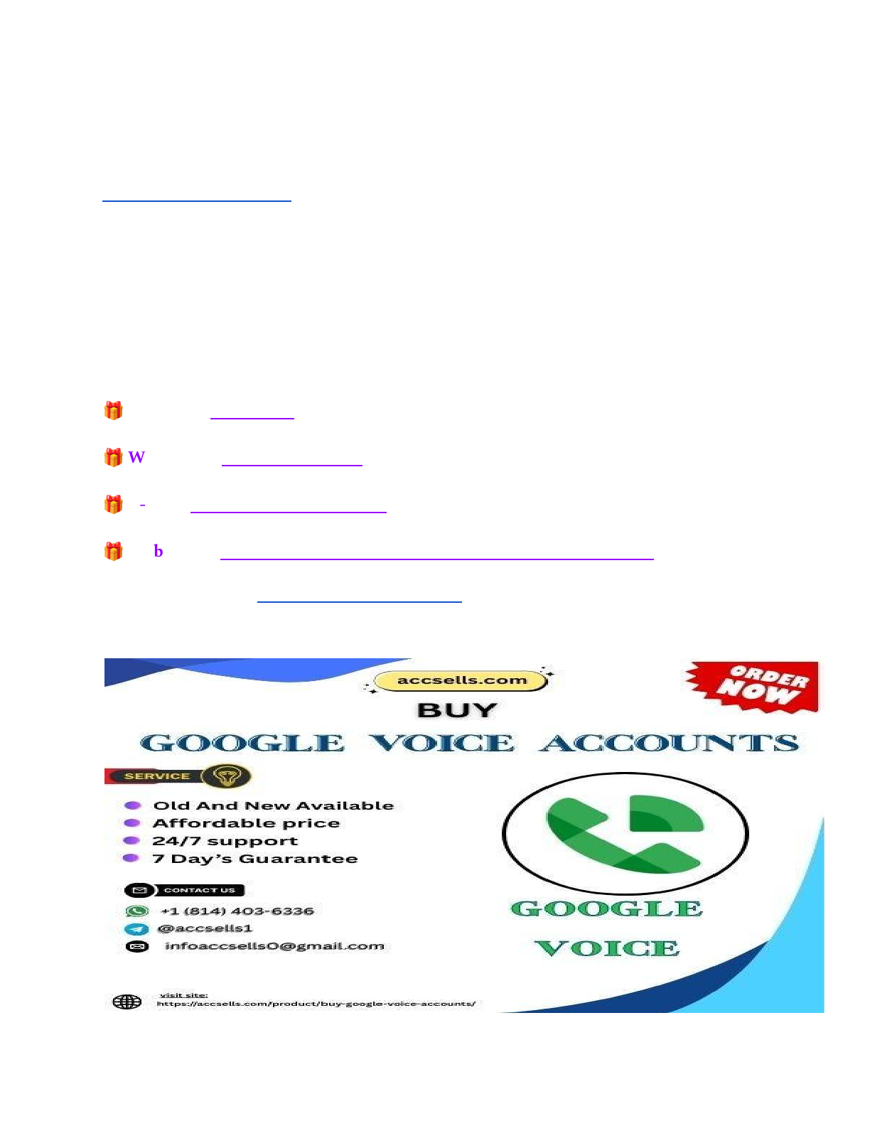 Buy Google Voice Accounts Buy Google voice accounts numbers that are used as the virtual number. US people use this number for business purposes and hide their phone numbers. In many cases, they just hide third-person numbers and use Google’s voice numbers publicly. A business owner can prevent spam phone calls. G voice for sale at a cheap rate. You can use this number for your customer or business purposes. We have stored a number of the USA phone number verified accounts. If You want to more information just contact now 24 Hours Reply/ Contact : – 🎁 Telegram: @accsells1 🎁 WhatsApp: +1 (814) 403–6336 🎁 E-mail: infoaccsells0@gmail.com 🎁 Web Visit:▸https://accsells.com/product/buy-google-voice-accounts/ Here is a direct link to the Google Voice Sale Page How long will it take to deliver after payment? https://accsells.com/product/buy-google-voice-accounts/ https://t.me/accsells1 https://api.whatsapp.com/send?phone=18144036336 mailto:infoaccsells0@gmail.com https://accsells.com/product/buy-google-voice-accounts/ https://accsells.com/product/buy-google-voice-accounts/ After payment, you don’t need to wait longer. Just log in to your WpHostsell account and you will see the download file, Where you will get your purchase Buy Google Voice Accounts. Buy Google Voice Accounts for instant delivery. Our Google voice account creating team is creating accounts and stoke different United States numbers. Google Voice only accepts messages of 59.5 seconds long. We can record your script or create one for you. Usually, around 150 words are the max you can have a 59.5-second message What do you get with G voice? ● 100% Work Guaranteed & Full Completed Profiles ● Recovery Anytime & Manual and Non-Drop ● USA Phone Verified Accounts & Active Profiles ● 24/7 Customer Support & High-Quality Service ● Express Delivery & Instant Work Start ● Very Cheap Price & No Fake Bots ● Mostly USA Profile’s Bio & Photo Where you can use Google Voice Accounts? Buy Google Voice Accounts to use in multiple areas in online business and communications. G voice is used for business purposes, profile verification, Craigslist posting services, etc. Use can forward calls to linked numbers and mobile apps: Android & iOS. Several freelancers working with me as a group member. Any time any amount delivered by our team worldwide. They are dedicated to supporting you 24/7. In a different case, people use it as blessed. G-voice helps you with several purposes. For example, line up and just receive calls through Gmail and Wi-Fi. It’s knowing how and when to manage customers and any time you can switch phones. Moreover, you will receive scuppered way SMS management as well as integration. An amazing way to record voice differently. It also allows you to take always calls. Not only this but also convert calls to voicemails. You can also buy Google Voice numbers from another provider. Buy Google Voice Accounts — Secure, Affordable, and Instant Activation https://accsells.com/product/buy-google-voice-accounts/ Introduction to Google Voice Accounts Google Voice is a revolutionary service that gives users a unique virtual number to make and receive calls or texts, manage voicemails, and more — all through the internet. Easy why to Buy Google Voice Accounts for business communication. It’s a practical solution for both personal and business communication, providing flexibility without needing additional SIM cards or separate phones. This VoIP (Voice over Internet Protocol) service allows users to connect via mobile devices or computers, helping streamline communication while ensuring privacy and convenience. Why Buy Google Voice Accounts? Purchasing Google Voice accounts offers several benefits, especially for users outside the U.S. and Canada, where access is restricted. Whether you need separate phone numbers for personal and business use or are looking to manage remote teams efficiently, Google Voice accounts are an excellent choice. Below are key advantages: Why Buy Google Voice Accounts 1. Privacy and Call Management: ● Keep personal and business calls separate. ● Use advanced call screening to control who contacts you. ● Avoid sharing personal numbers, minimizing unwanted calls or spam. 1. https://accsells.com/product/buy-google-voice-accounts/ 2. Free Voicemail Transcription and Texting: Google Voice automatically transcribes voicemails, making them easy to read. You can also send and receive texts without any extra costs, accessible from web browsers or mobile apps. 3. Call Recording and Switching Devices on the Go: Users can record calls at the press of a button and switch between devices mid-call without disconnecting. These features make Google Voice a powerful tool for business meetings and personal calls alike. Types of Google Voice Accounts Available When buying Google Voice accounts, it’s essential to understand the differences between old and new accounts. Types of Google Voice Accounts ● Old Accounts: These accounts have a usage history and are considered more reliable, often reducing the risk of being flagged by Google. ● New Accounts: These accounts are freshly created and untouched, perfect for users who want to start from scratch with a clean account. How to Choose a Reliable Provider When purchasing Google Voice accounts, follow these tips to ensure you get the best value: 1. Research Provider Reputation: Look for platforms with positive customer reviews and a history of reliable service. Verify that the site provides customer support, refund policies, and guarantees delivery. 2. Check Pricing Packages: Different sellers offer varied pricing based on the type of account, such as $5 for new accounts or $10+ for old ones. Make sure you’re getting a fair deal based on your needs 【9】. 3. Secure Payment Options: Ensure the platform offers secure payment methods, such as PayPal or credit cards, to protect your transactions. Benefits of Using Google Voice for Business