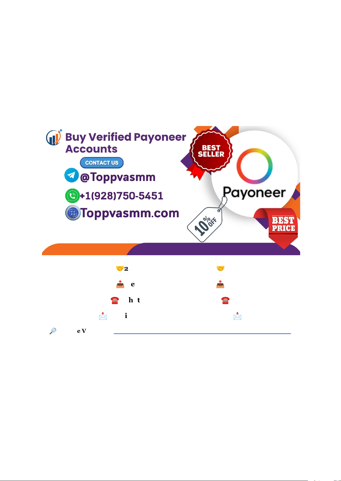 How Do I Buy a Verified Payoneer Account in 2025? Buy Verified Payoneer Account Many people want a ready-to-use account to save time and avoid the hassle of verification. But how do you find a safe and reliable option without risking your money or personal information? You’ll discover clear, simple steps to help you buy a verified Payoneer account confidently and securely. 🤝24/7 Hours Reply/Contact🤝 📥 Telegram : @Toppvasmm📥 ☎ WhatsApp :+1(928)750-5451☎ 📩 Email : toppvasmm281@gmail.com📩 🔎Website Visit Now :https://toppvasmm.com/product/buy-verified-payoneer-accounts/ Keep reading to learn exactly what you need to watch out for and how to protect yourself every step of the way. Why Choose Payoneer Payoneer is a popular choice for global payments in 2025. It provides a safe and reliable way to send and receive money worldwide. Many businesses and freelancers trust Payoneer for their financial transactions. The platform offers fast transfers and low fees, making it practical for many users. https://toppvasmm.com/product/buy-verified-payoneer-accounts/ Choosing a verified Payoneer account adds extra benefits. Verification means your identity and details are confirmed. This helps prevent fraud and increases your account limits. It also boosts trust with clients and partners. Verified accounts enjoy smoother transactions and better service access. Benefits Of Verified Accounts Verified accounts have higher withdrawal and deposit limits. Users can access more Payoneer services and features. Verification reduces the risk of account suspension. It allows you to link your account with other financial tools. Customer support prioritizes verified users, offering faster help. Verified status increases credibility with clients and marketplaces. Use Cases In 2025 Freelancers use Payoneer to receive payments from global clients. Small businesses pay suppliers and employees across borders. E-commerce sellers withdraw earnings from platforms like Amazon and eBay. Digital marketers transfer funds between countries quickly. Remote teams manage payroll through Payoneer. Verified accounts support smooth cross-border transactions in all these cases. Requirements For Verification Verification is a key step to use a Payoneer account fully. It ensures your identity and protects your money. Payoneer asks for certain documents and checks your eligibility before verification. Knowing these requirements saves time and avoids problems. 🤝24/7 Hours Reply/Contact🤝 📥 Telegram : @Toppvasmm📥 ☎ WhatsApp :+1(928)750-5451☎ 📩 Email : toppvasmm281@gmail.com📩 🔎Website Visit Now :https://toppvasmm.com/product/buy-verified-payoneer-accounts/ Documents Needed You must provide clear, valid documents to verify your account. A government-issued ID is mandatory. This can be a passport, driver’s license, or national ID card. A proof of address document is also required. Examples include a utility bill, bank statement, or rental agreement. All documents must be recent, usually within the last three months. Make sure photos or scans are clear and readable. Eligibility Criteria Payoneer only accepts users who meet certain rules. You must be at least 18 years old. Your country of residence must be supported by Payoneer services. Business accounts need to https://toppvasmm.com/product/buy-verified-payoneer-accounts/ https://toppvasmm.com/product/buy-verified-payoneer-accounts/ https://toppvasmm.com/product/buy-verified-payoneer-accounts/ provide business registration details. Personal accounts require a valid social security number or tax ID in some cases. The account must not have any prior violations with Payoneer. Meeting these criteria ensures smooth verification and use of your account. Where To Buy Verified Accounts Buying a verified Payoneer account requires care and the right source. Not all sellers offer legitimate accounts. Finding a trusted place is key to avoid problems later. Below are some tips on where to buy verified accounts safely. Trusted Marketplaces Some online marketplaces offer verified Payoneer accounts. Choose sites with strong user reviews and secure payment methods. Look for platforms that verify sellers before listing. These sites reduce the risk of fraud. Popular freelance and digital goods marketplaces may have trusted sellers. Always check ratings and feedback from previous buyers. Avoiding Scams Many scams exist in this market. Avoid offers that seem too cheap or promise instant verification. Never share personal details outside secure platforms. Verify seller identities and ask for proof of account legitimacy. Use payment methods that offer buyer protection. Avoid direct bank transfers or untraceable payments. Trust your instincts. If something feels wrong, step back. Step-by-step Buying Process Buying a verified Payoneer account in 2025 follows a clear step-by-step process. This helps ensure safety and trust. Each step is important to complete the purchase smoothly. Understanding these steps reduces risks and surprises. Start by choosing a reliable seller. Then select a payment method that works best. Finally, complete the account transfer carefully. Let’s break down each step for clarity. Selecting A Seller Find a seller with good reviews and ratings. Check for verified sellers on trusted platforms. Avoid sellers with little feedback or negative comments. Ask questions to confirm the seller’s legitimacy. A trusted seller reduces the chance of fraud. Choose sellers who offer clear account details. Payment Methods Choose a payment method that is secure and easy. Common options include PayPal, bank transfer, or cryptocurrency. Avoid cash payments or unknown methods. Use payment https://toppvasmm.com/product/buy-verified-payoneer-accounts/ https://toppvasmm.com/product/buy-verified-payoneer-accounts/ services that offer buyer protection. Confirm payment terms before sending money. Keep receipts or proof of payment for records. Account Transfer The seller 