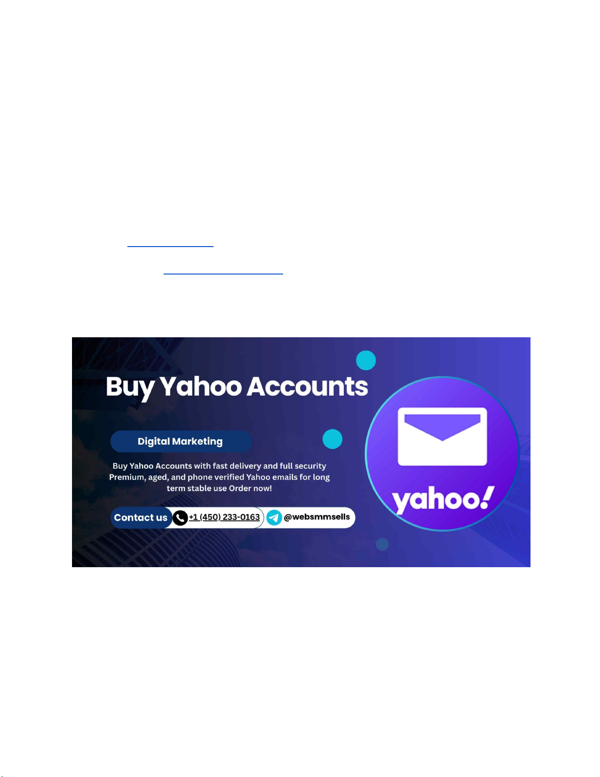 Buy Old Yahoo Accounts Contact US ➤ WhatsApp: +1 (450) 233–0163 ➤ Telegram: @websmmsells ➤ Email: websmmsells@gmail.com ➤ website: websmmsells.com If you're looking to buy old Yahoo accounts, you’re in the right place. Old or aged Yahoo accounts are trusted, powerful, and extremely useful for marketing, business verification, high-deliverability emailing, and more. And when it comes to reliable aged accounts, websmmsells.com is one of the best and safest places to buy them. In this guide, I’ll walk you through everything you need to know — what old Yahoo accounts are, why they’re important, their features, benefits, and how to use them safely. Let’s get started! What Are Old Yahoo Accounts? https://websmmsells.com/product/buy-yahoo-accounts/ https://websmmsells.com/product/buy-yahoo-accounts/ Old Yahoo accounts are email accounts created many years ago—sometimes 2, 5, or even 10+ years old. Because of their age, they carry a stronger trust score and higher authority. These accounts have history, login records, and sometimes recovery details already added. Why Businesses Still Use Yahoo Accounts Yahoo is still one of the most used email platforms worldwide. Many online services accept Yahoo more easily because it is considered stable and aged. How Aged Yahoo Accounts Work Aged accounts behave like naturally created, long-used email accounts. They: ● have older creation dates ● appear more trustworthy ● get fewer security checks ● deliver emails better Benefits of Buying Old Yahoo Accounts Buying old Yahoo accounts comes with huge advantages. Here’s why so many marketers and businesses choose them: Higher Trust Score Old accounts have years of activity behind them, making them less likely to get flagged or restricted. Better Email Deliverability If you do email marketing, aged Yahoo accounts help your emails land in the inbox, not the spam folder. Ideal for Marketing and Verification Old Yahoo accounts are perfect for: ● creating multiple business profiles ● account verification ● opening social media accounts ● running ads ● bulk emailing Secure Access and Long-Term Stability Older accounts are harder to trigger security checks compared to new ones. Why You Should Buy From websmmsells websmmsells.com is one of the most trusted marketplaces for aged accounts. Here’s why buyers love them: 100% Verified Old Yahoo Accounts Every account is manually checked, verified, and tested before delivery. Safe Login Details and Fast Delivery You get: ● Login email ● Password ● Recovery email info ● Full access Delivery is fast and safe. Affordable Prices You get high-quality aged accounts at very competitive prices. Features of Old Yahoo Accounts Sold by websmmsells You’ll receive premium features such as: Aged Accounts (2–10+ Years) The older the account, the higher the trust and stability. Phone & Recovery Email Added This helps secure your account and reduce login issues. Fresh Activity Logs Accounts are warmed up to ensure smooth usage. Best Uses of Old Yahoo Accounts Here are some powerful ways to use old Yahoo accounts: Email Marketing Send bulk mail without getting blocked. Social Media Verification Open Facebook, Twitter, Pinterest, and other accounts easily. Business Registrations Many businesses prefer Yahoo accounts for account setup. Bulk Messaging and Outreach Aged Yahoo accounts help with safe outreach campaigns. Step-by-Step Guide: How to Buy Old Yahoo Accounts Here’s a quick and simple buying process: 1. Visit websmmsells.com Go to the website and find the "Old Yahoo Accounts" category. 2. Choose Your Package Select how many accounts you need—single or bulk packages. 4. Receive Instant Delivery You’ll get your account details quickly after payment. How to Safely Use Old Yahoo Accounts To keep your accounts safe and long-lasting, follow these steps: Change Recovery Info Update: ● recovery email ● recovery phone ● security questions Use Secure IP Addresses Never use public Wi-Fi. Use a clean IP or residential proxy. Avoid Sudden High Activity Don’t log in and send 100 emails on the first day. Warm up the account slowly. Common Mistakes to Avoid When using aged Yahoo accounts, avoid these: Using Public IPs It can trigger security flags. Bulk Login on Same Day Login gradually to reduce risk. Why Aged Yahoo Accounts Are Better Than New Ones Aged accounts: ● have better deliverability ● are trusted by platforms ● pass verification more easily ● stay active longer New accounts get flagged faster, especially in bulk marketing. Conclusion Buying Old Yahoo Accounts from websmmsells is a smart move if you want reliable, trusted, and high-performing email accounts for marketing, verification, or business tasks. Aged Yahoo accounts give you stability, deliverability, and long-term use—something new accounts simply can't match. Whether you're running email campaigns, opening business profiles, or managing multiple online accounts, websmmsells.com delivers safe, fully verified, and affordable Yahoo accounts. FAQs 1. Are old Yahoo accounts safe to use? Yes, they are safe as long as you follow proper login and security steps. 2. How fast will I receive my old Yahoo accounts? websmmsells delivers accounts almost instantly after payment. 3. Can I use old Yahoo accounts for email marketing? Absolutely. Aged accounts offer high inbox rates. 4. Do the accounts come with recovery info? Yes, recovery email and sometimes phone are included. 5. Can I buy bulk Yahoo accounts? Yes, websmmsells offers bulk packages at discounted prices. https://websmmsells.com/product/buy-yahoo-accounts/
