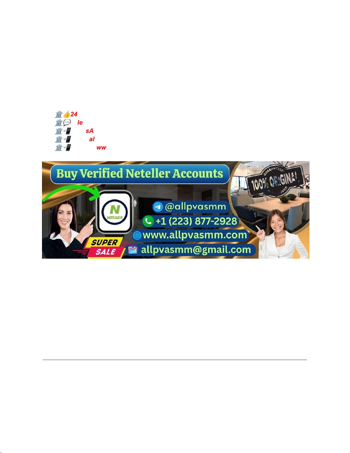 Top Legit Ways to Get a Verified Neteller Account (New & Old‑Style Stability) – Safe Guide ––➤🏛👍24/7 Hours Reply/ContacK ––➤🏛💬Telegram: @allpvasmm ––➤🏛📲WhatsApp: +1 (223) 877-2928 ––➤🏛📲Email:allpvasmm@gmail.com ––➤🏛📲Website:www.allpvasmm.com ●●●●●●●●●●●●●●●●●●●●●●●●●●●●●●●●●●● Neteller is one of the most popular digital wallets used for international payments, online businesses, freelancers, and traders. Because of strict verification requirements, many people search online for places to buy verified Neteller accounts—especially “old” or instantly usable accounts. However, buying or selling Neteller accounts violates Neteller’s Terms of Use and often leads to frozen balances, permanent bans, and loss of funds. This article explains safe, legal, and reliable alternatives to get a verified Neteller account—without buying accounts. Why People Search for “Buy Verified Neteller Accounts” Common reasons include: ● Difficulty passing verification (KYC) ● Country restrictions ● Need for instant usage ● Desire for “old” or trusted accounts ● Fear of account limits or holds While these concerns are real, buying accounts is never the solution. Is It Safe to Buy Verified Neteller Accounts? No. Buying Neteller accounts is unsafe and illegal. Risks You Should Know ● Immediate or delayed account suspension ● Frozen balances with no recovery ● Permanent ban from Neteller (and related services) ● Legal and compliance consequences ● Loss of access when the original owner reclaims the account Neteller uses advanced identity, device, and behavior checks. Purchased accounts are detected sooner or later. What a “Verified Neteller Account” Actually Means A real verified Neteller account includes: ● Identity verified via KYC (government ID) ● Address verification (where required) ● Email and phone verification ● Ongoing compliance checks Verification is continuous, not one‑time. Buying an account cannot transfer compliance to you. The Right Way: Legit Ways to Get a Verified Neteller Account Below are safe, reliable, and policy‑compliant methods that work for both new users and those seeking old‑style stability. Method 1: Create a New Neteller Account with Correct Personal Details Best for: ● Freelancers ● Online sellers ● Traders ● Remote workers What You Need ● Real full name (matches ID) ● Government‑issued ID (passport/national ID) ● Valid email & phone number ● Accurate residential address Tips for Faster Verification ● Upload clear, unedited ID photos ● Ensure name consistency everywhere ● Avoid VPNs or proxy IPs ● Complete profile honestly Many users get verified within 24–72 hours using this method. Method 2: Address Verification & Limits Upgrade (Legit “Instant Use”) Neteller allows basic usage with limited features, then unlocks higher limits after verification. Steps: 1. Complete identity verification 2. Add address details accurately 3. Verify phone and email 4. Upgrade limits after approval This gives you fast usability without breaking rules. Method 3: Use Neteller‑Supported Platforms (Safe Alternative) If direct usage is difficult, use platforms that support Neteller for payouts and payments. Examples ● Freelance marketplaces ● Trading platforms ● Gaming/entertainment platforms (where legal) ● International service providers Benefits: ● Built‑in compliance ● Lower verification friction ● No account buying risk Method 4: Build “Old Account” Trust Legitimately (No Buying) People want “old” Neteller accounts because they’re more stable. You can build this naturally. What Makes an Account “Old & Trusted” ● 6–12 months of clean activity ● Regular, consistent transactions ● Low disputes or chargebacks ● No policy violations How to Age Your Account Safely ● Start with small transactions ● Increase volume gradually ● Keep profile updated ● Avoid risky or restricted activities This approach delivers the same benefits as an old account—without risk. Common Mistakes That Get Neteller Accounts Limited Avoid these: ● Using fake or borrowed IDs ● Name/address mismatches ● Multiple accounts without reason ● Suspicious transaction spikes ● Ignoring compliance emails Most limits are preventable with proper setup. Why “Top 69 Sites to Buy Accounts” Is a Bad Idea Buying Accounts Legit Setup High risk 100% safe Funds frozen Stable access No support Official support Short‑term Long‑term usability A legitimate Neteller account is a financial asset, not a shortcut. FAQ Q: Can I buy a verified Neteller account safely? A: No. There is no safe way to buy Neteller accounts. Q: How long does verification take? A: Usually 1–3 business days, sometimes longer. Q: Can I have more than one Neteller account? A: Generally no, unless explicitly allowed by Neteller. Final Thoughts Searching for “Top 69 Sites to Buy Verified Neteller Accounts” is understandable—but dangerous. The only secure and reliable solution is legitimate verification and compliant usage. Key Takeaways ● Buying accounts is unsafe and illegal ● Legit verification is faster than most expect ● “Old” accounts are built, not bought ● Compliance ensures long‑term stability Top Legit Ways to Get a Verified Neteller Account (New & Old‑Style Stability) – Safe Guide Why People Search for “Buy Verified Neteller Accounts” Is It Safe to Buy Verified Neteller Accounts? Risks You Should Know What a “Verified Neteller Account” Actually Means The Right Way: Legit Ways to Get a Verified Neteller Account Method 1: Create a New Neteller Account with Correct Personal Details What You Need Tips for Faster Verification Method 2: Address Verification & Limits Upgrade (Legit “Instant Use”) Method 3: Use Neteller‑Supported Platforms (Safe Alternative) Examples Me