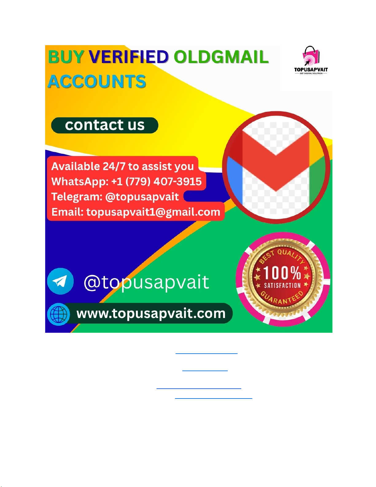 Available 24/7 to assist you WhatsApp: +1 (779) 407-3915 Telegram: @topusapvait Email: topusapvait1@gmail.com Are you looking for a trusted way to buy old Gmail accounts? At Topusapvait, we provide aged, verified Gmail accounts that are secure, ready-to-use, and delivered quickly. Our accounts are perfect for personal use, business, or marketing purposes. https://wa.me/17794073915 http://t.me/topusapvait mailto:topusapvait1@gmail.com https://topusapvait.com/product/buy-old-gmail-account/ Why Buy Old Gmail Accounts? Buying an old Gmail account has several advantages: Buy Old gmail accounts 1. Verified and Secure Accounts All our Gmail accounts are fully verified, ensuring safety and reliability. You don’t have to worry about restrictions or security issues. 2. Trusted Aged Accounts Older accounts have a strong reputation with Google. This helps in creating business emails, marketing campaigns, or social media accounts without getting flagged. 3. Time-Saving Instead of waiting to create a new Gmail account and go through verification, you can instantly access a ready-to-use account. Features of Topusapvait Gmail Accounts ● Fully Verified and Ready to Use ● US, UK, and CA Accounts Available ● Affordable Prices ● Fast Delivery and Easy Access ● 24/7 Customer Support How to Buy Old Gmail Account from Topusapvait 1. Visit Our Website: Go to Topusapvait 2. Choose Your Account: Select the type of Gmail account you need 3. Place Your Order: Complete your purchase quickly and securely 4. Instant Delivery: Receive your verified Gmail account immediately Benefits of Using Old Gmail Accounts ● Immediate access to Gmail services ● Perfect for business, marketing, or social media ● Accounts with real activity history ● Secure and trustworthy for multiple uses Why Choose Topusapvait? Topusapvait is your reliable source for old Gmail accounts. We provide genuine, verified, and aged accounts at affordable prices with fast delivery and 24/7 customer support. Call to Action Get your verified old Gmail account today from Topusapvait and start using it immediately! Visit Topusapvait now. Available 24/7 to assist you WhatsApp: +1 (779) 407-3915 Telegram: @topusapvait Email: topusapvait1@gmail.com https://mail.google.com/ https://topusapvait.com/product/buy-verified-binance-account/ https://wa.me/17794073915 http://t.me/topusapvait Why Buy Old Gmail Accounts? 1. Verified and Secure Accounts 2. Trusted Aged Accounts 3. Time-Saving Features of Topusapvait Gmail Accounts How to Buy Old Gmail Account from Topusapvait Benefits of Using Old Gmail Accounts Why Choose Topusapvait? Call to Action