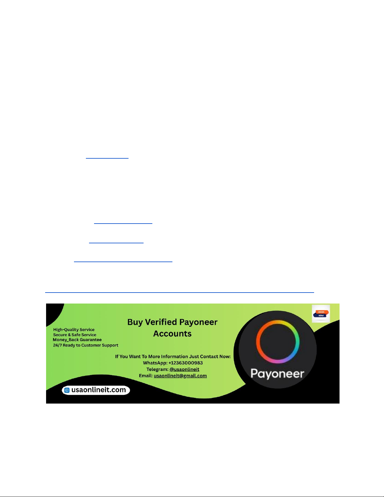 Introduction to Payoneer and Its Significance in 2026 Payoneer has established itself as one of the leading online payment platforms globally, especially favored by freelancers, entrepreneurs, and international businesses. In 2026, the demand for verified Payoneer accounts continues to grow due to the increasing need for secure, reliable, and fast financial transactions across borders. Payoneer offers a seamless way to receive payments from companies like Amazon, Upwork, and Fiverr, making it an essential tool for online professionals. Its reputation for security and ease of use makes it a preferred choice for users worldwide. As the platform evolves, so does the need for verified accounts that are fully functional and compliant with regulatory standards. For many, purchasing verified Payoneer accounts has become an option to expedite their business processes or personal transactions. USAOnlineIT specializes in providing verified Payoneer accounts that are legal, secure, and fully functional. In this article, we will explore the best options available in 2026 for buying verified Payoneer accounts at the lowest prices, along with insights into verification processes, legal considerations, and tips to ensure safe transactions. If You Want To More Information Just Contact Now: WhatsApp: +12363000983 Telegram: @usaonlineit Email: usaonlineit@gmail.com website link : https://usaonlineit.com/product/buy-verified-payoneer-accounts/ Understanding the Importance of Verified Payoneer Accounts Having a verified Payoneer account is crucial for users who want to enjoy full features without restrictions. Verification involves confirming your identity, address, and sometimes additional https://usaonlineit.com/product/buy-verified-payoneer-accounts/ https://wa.me/message/74UDWDX2TFOWF1 https://t.me/usaonlineit https://usaonlineit.com/product/buy-facebook-ads-accounts/usaonlineit@gmail.com https://usaonlineit.com/product/buy-verified-payoneer-accounts/ documentation, which ensures that the account complies with international financial regulations. Verified accounts allow users to withdraw higher amounts, receive payments from various sources, and avoid limitations that unverified accounts face. In 2026, strict compliance policies mean that unverified accounts often face restrictions or suspensions, making verification a necessity rather than an option. For businesses and freelancers, verified Payoneer accounts facilitate seamless transactions, establishing trust with clients and partners. Moreover, verified accounts are more secure against hacking or fraudulent activities, ensuring peace of mind. USAOnlineIT offers verified Payoneer accounts that have undergone thorough verification processes, ensuring legitimacy and full functionality. Investing in a verified account can save time and prevent future complications, making it a smart choice for serious users in 2026. Legal Aspects of Buying Payoneer Accounts in 2026 The legality of purchasing Payoneer accounts is a topic that requires careful consideration. Officially, Payoneer’s terms of service prohibit the transfer or sale of accounts. Engaging in such transactions may lead to account suspension or permanent bans if detected. However, in practice, many individuals and businesses buy verified accounts through third-party providers to bypass lengthy verification procedures or to access accounts quickly. It’s essential to understand the risks involved, including potential fraud, scams, or legal consequences. USAOnlineIT emphasizes transparency and adherence to legal standards, ensuring that all accounts sold are legitimate, verified, and compliant with international laws. Buyers should exercise caution, verify the credibility of sellers, and avoid accounts obtained through illegal means. While the market for purchased accounts exists, users must weigh the risks against the benefits. Our company prioritizes safety, offering verified Payoneer accounts that are compliant, secure, and ready for immediate use, providing peace of mind for clients in 2026. The Rise of Buying Verified Payoneer Accounts in 2026 In 2026, the trend of buying verified Payoneer accounts has surged due to various factors. The growing freelance economy, cross-border trade, and remote work have increased the demand for quick, reliable payment solutions. Many users seek verified accounts to bypass lengthy verification procedures, especially in regions with strict banking regulations or limited access to banking infrastructure. The market offers various options, from legitimate providers to shady intermediaries, making it vital for buyers to choose reputable sources. USAOnlineIT has positioned itself as a trusted provider, offering verified accounts with full documentation and compliance. The convenience of purchasing ready-to-use accounts appeals to entrepreneurs and freelancers eager to start transactions immediately. Additionally, technological advancements have made verification easier, but the need for verified accounts remains critical. As the market expands, so does the importance of choosing reliable sources that prioritize security, legality, and customer satisfaction. In 2026, buying verified Payoneer accounts is not just a trend but a strategic move for many professional users seeking efficiency and security. Factors to Consider When Buying Verified Payoneer Accounts When purchasing verified Payoneer accounts, several factors must be considered to ensure a safe and beneficial transaction. First, verify the credibility of the provider; reputable companies like USAOnlineIT offer verified accounts with proper documentation. Second, check whether the account has undergone full KYC (Know Your Customer) verification, including identity and address confirmation. Third, ensure the account is fully functional, with no restrictions or limitations that could hinder your transactions. Price is another key factor—while cheaper accounts might be tempting, quality and legitimacy should n