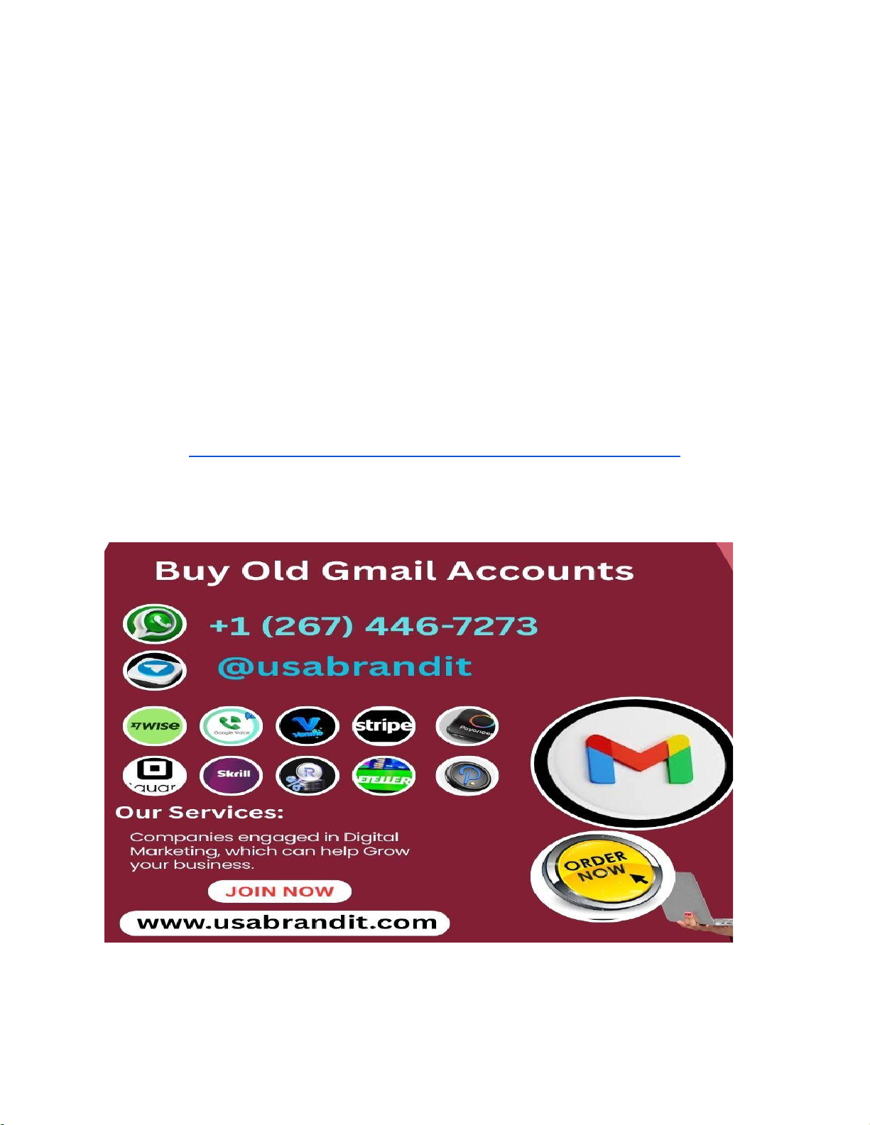 17-Best-Places-to-Buy-Old-Gmail-Acc ounts-in-the-USA 24 hours response/(Contact US) ➤ WhatsApp: +1 (267) 446-7273 ➤ Telegram: @usabrandit ➤ Email: usabrandit@gmail.com https://usabrandit.com/product/buy-old-gmail-accounts/ Are you looking to boost your online presence quickly and effortlessly? Buying old Gmail accounts can give you a head start by providing trusted, established email profiles that save you time and hassle. But where do you find reliable sources that offer genuine, secure accounts? That’s exactly what this guide, "17-Best-Places-To-Buy-Old-Gmail-Accounts-In-The-USA," is for. You’ll discover https://usabrandit.com/product/buy-old-gmail-accounts/ trusted sellers who provide high-quality Gmail accounts that fit your needs. Keep reading, and you’ll learn how to get the best deals, avoid scams, and choose accounts that work perfectly for your business or personal use. Don’t miss out on this chance to power up your email game with the right tools! Introduction To Buying Old Gmail Accounts Buying old Gmail accounts is becoming popular in the USA. These accounts offer benefits that new accounts do not. People and businesses use them for many purposes. Understanding what old Gmail accounts are and how the market works is important. This section explains the basics of buying old Gmail accounts. 24 hours response/(Contact US) ➤ WhatsApp: +1 (267) 446-7273 ➤ Telegram: @usabrandit ➤ Email: usabrandit@gmail.com https://usabrandit.com/product/buy-old-gmail-accounts/ What Are Old Gmail Accounts And Why Buy Them? Old Gmail accounts are email accounts created years ago. They have a history of activity and usually show trustworthiness to Google. These accounts often come with verified details and a good reputation. This makes them valuable for various uses. Reasons to buy old Gmail accounts: ● Better reputation and trust score ● Access to older Google services and features ● Useful for marketing and business purposes ● Helps avoid restrictions faced by new accounts ● Can be used for multiple sign-ins and verifications Overview Of The Market For Old Gmail Accounts In The Usa The market for old Gmail accounts in the USA has grown steadily. Many sellers offer accounts with different ages and features. Buyers choose accounts based on age, activity, and verification status. Prices vary depending on these factors. https://usabrandit.com/product/buy-old-gmail-accounts/ Account Age Verification Price Range (USD) Common Uses 1-2 years Email Verified $10 - $30 Basic marketing, personal use 3-5 years Email + Phone Verified $30 - $70 Business accounts, ad management 5+ years Fully Verified, Active $70 - $150 High trust projects, bulk account use Buyers prefer sellers with good reviews and secure payment methods. The demand continues to rise as more users seek reliable Gmail accounts. Key Features Of Trusted Sites Selling Old Gmail Accounts Finding reliable sites to buy old Gmail accounts requires knowing their key features. Trusted sellers focus on quality, security, and customer satisfaction. These features help buyers get accounts that work well and stay safe. 24 hours response/(Contact US) ➤ WhatsApp: +1 (267) 446-7273 ➤ Telegram: @usabrandit ➤ Email: usabrandit@gmail.com https://usabrandit.com/product/buy-old-gmail-accounts/ Account Age And Activity Levels: Why They Matter Account age shows how long the Gmail account has existed. Older accounts are more trusted by Google and third-party services. They help users avoid restrictions and improve email credibility. https://usabrandit.com/product/buy-old-gmail-accounts/ Activity levels show if the account was used regularly. Accounts with steady activity look genuine. They reduce the risk of being flagged or banned quickly. ● Older accounts (1+ years) offer better trust. ● Active accounts have sent and received emails. ● Inactive accounts may raise suspicion. Security Measures And Verification Processes Trusted sites use strong security measures to protect account buyers. This includes verifying each account before sale to ensure it is not compromised. Verification steps may include: 1. Checking login history for unusual access. 2. Confirming recovery options like phone and backup email. 3. Ensuring no suspicious linked apps or permissions. These checks help buyers avoid accounts that could be hacked or risky. 24 hours response/(Contact US) ➤ WhatsApp: +1 (267) 446-7273 ➤ Telegram: @usabrandit ➤ Email: usabrandit@gmail.com https://usabrandit.com/product/buy-old-gmail-accounts/ Variety And Customization Options Top sellers offer a wide variety of Gmail accounts. Buyers can choose based on: ● Account age ● Activity level ● Location tied to the account ● Number of recovery options Customization options let buyers request specific features. For example, accounts with a certain number of contacts or verified phone numbers. Customer Support And Service Reliability https://usabrandit.com/product/buy-old-gmail-accounts/ Reliable sellers provide responsive customer support. They assist buyers before and after purchase. Good support includes: ● Answering questions quickly ● Providing clear account details ● Offering refunds or replacements if needed Service reliability builds trust and ensures smooth transactions. Top 17 Trusted Sites To Buy Old Gmail Accounts In The Usa Finding reliable sources to buy old Gmail accounts in the USA is essential for many users. These accounts help with marketing, testing, or creating multiple profiles online. The top 17 trusted sites offer a mix of features, security, and support. Each platform has its own strengths, making it easier to choose based on specific needs. Below, the sites are grouped by their key qualities for easy comparison. 24 hours response/(Contact US) ➤ WhatsApp: +1 (267) 446-7273 ➤ Telegram: @usabrandit ➤ Email: usabrandit@gmail.com https://usabrandit.com/product/buy-old-gmail-accounts/ Site 1 To 5: Features, Benefits, And Unique Selling Points