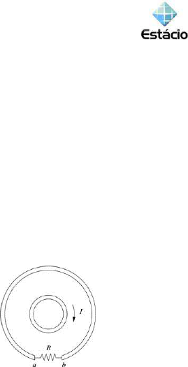 1 ATIVIDADE 1 Fonte: YOUNG, H. D. e FREEDMAN, R. A. Física III – Eletromagnetismo. 12ª ed. Pearson - Education, 2008. cap. 29. Uma bobina circular de 30 voltas e raio 7cm está colocada com seu plano orientado a 90° com relação a um campo magnético de 0,1T. O campo é aumentado a uma taxa constante, atingindo um valor de 0,7T após 5 segundos. Qual fem é induzida na bobina? ATIVIDADE 2 Fonte: YOUNG, H. D. e FREEDMAN, R. A. Física III – Eletromagnetismo. 12ª ed. Pearson - Education, 2008. cap. 29. Na figura a seguir, a espira interna transporta uma corrente I que está crescendo. O resistor R está na espira externa. Qual é o sentido da corrente induzida no resistor R? ATIVIDADE 3 Fonte: YOUNG, H. D. e FREEDMAN, R. A. Física III – Eletromagnetismo. 12ª ed. Pearson - Education, 2008. cap. 29. Uma bobina com 500 espiras circulares com raio igual a 4,0cm é colocada entre os polos de um grande eletroimã, onde o campo magnético é uniforme e forma um ângulo de 60° com o plano da bobina. O campo magnético diminui com uma taxa igual a 0,200T/s. Qual é o módulo e o sentido da fem? 2 ATIVIDADE 4 Fonte: GUALTER, NUWTON E HELOU. Física 3. 1ª ed. Editora Saraiva, 2010. Do instante 1 s até 2s, o fluxo de indução magnética através de uma espira variou de 2,0 Wb a 8,0 Wb. Determine o valor da força eletromotriz induzida na espira nesse intervalo de tempo. ATIVIDADE 5 Fonte: JEWETT, Jr, SERWAY, A.E. Física para cientistas e engenheiros – Eletricidade e magnetismo. Vol. 3. 8ª ed. Cengage Learning. Uma bobina consiste em 200 espiras (voltas) de fio. Cada espira é um quadrado de lado d = 18cm, e um campo magnético uniforme direcionado perpendicularmente ao plano a bobina é ligado. Se o campo muda de 0 para 0,50T em 0,80s, qual é o módulo da fem na bobina enquanto estiver mudando? 3 Gabarito ATIVIDADE 1 Resposta: 0,055V ATIVIDADE 2 Resposta: A corrente é de a a b. ATIVIDADE 3 Resposta: A fem será igual a 0,435V. Essa força é positiva e, portanto, possui sentido horário. ATIVIDADE 4 Resposta: -30V (o sinal negativo pode ser interpretado como um aumento do fluxo de indução). ATIVIDADE 5 Resposta: 4,0V