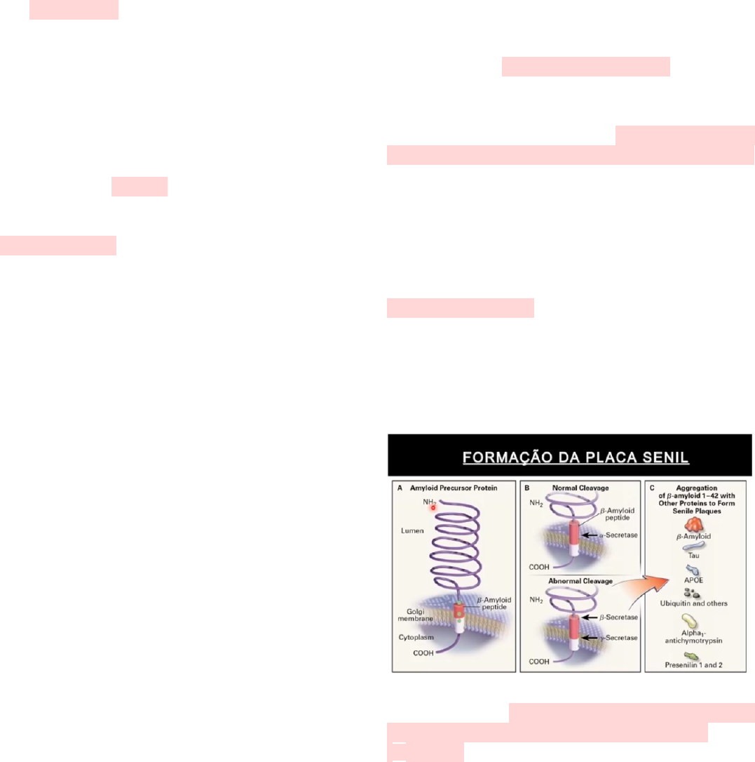 Farmacologia do SNC Farmacologia das Doenças Neurodegenerativas Uma das causas para que a gente perca neurônios é a excitotoxidade, que é proveniente, normalmente pelo excesso do cálcio no interior celular. O excesso é prejudicial pois forma protease, pois leva a lesão da membrana celular e, consequentemente, a morte neuronal. Neurônios adultos do SNC não podem ser substituídos, e seus axônios também não podem ser regenerados, então, não tem como pensar que um neurônio lesionado vai ser regenerado e voltar a sua função. Uma segunda forma em que acontece a morte neuronal é pela apoptose (morte programada), qualquer substância/situação que leve a apoptose gera morte celular. E uma terceira forma de matar neurônios é o Estresse Oxidativo, em que o excesso desse estresse forma superóxidos e isso vai lesar os fosfolipídeos de membrana, consequentemente levando a apoptose. Considerações sobre as doenças neurodegenerativas nós temos 3 principais doenças, Alzheimer, Parkinson e Lesão Cerebral Isquêmica Etiologia Quantidade de agregados insolúveis que vão lesar os neurônios. Sabemos que a arquitetura das proteínas são diferentes, cada tipo de tem a “dobradura” própria para a função a qual ela têm.. Entretanto, em alguns casos têm as proteínas que são mal formadas/dobradas, e então ela precisa ser degradada para os seus peptídeos possam novamente formar as proteínas corretas. Há algumas pessoas que formam uma grande quantidade de proteínas mal formadas ao longo da vida, e isso vai levar a patologias como o Alzheimer e o Parkinson. Nessa imagem, temos uma proteína que não foi dobrada adequadamente, a porção dela reativa fica exposta (OLHAR AS BOLINHAS VERMELHAS LA EM CIMA), e quando as proteínas são dobradas corretamente, essa porção reativa fica no interior da molécula. Então quando essa porção fica exposta, elas servem como area de atração, e vão atrair outras proteínas mal formadas ou no interior, ou no exterior neuronal. Isso vai resultar em um conjunto de proteínas mal formadas, chamadas de Oligômeros. Esses Oligômeros como são constituídos de proteínas que possuem as partes atrativas no exterior, vão atrair e formar uma interação entre vários oligômeros, que chamamos de agregados insolúveis (irreversível). Os agregados insolúveis vão lesar a membrana neuronal no interior ou exterior desses neurônios. ↪ Eles vão fazer, por exemplo, depósitos intra ou extracelulares que resultam em neurotoxidade. ↪A neurotoxidade leva a lesão, que leva a apoptose, alteram o estresse oxidativo, que também pode gerar lesão que leva a apoptose. Então vemos as três possibilidades de morte neuronal acontecendo em conjunto Alzheimer Etiologia Sabe-se que a doença de Alzheimer é uma doença sem causa antecedente (Não houve AVC, nem trauma, ou excesso de Álcool). ↪Acumulo de proteína intra ou extracelular na região cerebral, lesando esses neurônios e induzindo a morte neuronal, que ao longo do tempo começa a fazer falta em locais específicos. ↪Na formação da placa senil, temos a proteína miloide sendo formada, e a porção correta dela ser liberada da forma correta vem a partir de uma enzima chamada α-secretase Farmacologia do SNC ↪Essa α-secretase cliva a proteína na altura necessária para que ela tenha sua função correta sem atrair outras proteínas. Algumas pessoas têm uma clivagem anormal/excesso pelas secretases β ou γ . E no caso dessas clivagens, têm-se 2 outros pontos de clivagem, que induzem as formas em que as proteínas ficam com a porção que atrai exposta, formando oligômeros e os agregados insolúveis. ↪Eles podem ser de vários tipos e podem se acumular extraneuronal (Beta miloide), ou intra celular como a Tau e a Apo E4. Todos esses tipos vão gerar lesões,… Conceito A doença de Alzheimer se caracteriza por uma perda de massa cerebral ( principalmente hipocampo e prosencéfalo) ] No Alzheimer, há a morte de neurônios de determinadas áreas, e dentro dessas áreas morrem as fibras colinérgicas, resultando em uma diminuição de acetilcolinesterase, acetilcolina e de transportador de colina. Há uma perda de massa cerebral de forma seletiva, há uma perda da ação colinérgica do cérebro. Sabendo que essa ação colinérgica no lobo frontal é importante para a cognição e julgamento. ↪Há uma morte dos neurônios colinérgicos e receptores nicotínicos Receptores Vai ter também uma diminuição dos receptores nicotínicos cerebrais. Os receptores nicotínicos responsáveis pelo pensamento, pela memória, pela fala, linguagem, estará diminuído, junto com todo o sistema colinérgico. Os receptores muscarínicos não estarão diminuídos, então o paciente não vai ter sintomas parassimpáticos. Tratamentos ↪Inibidores da Colinesterase: A acetilcolinesterase é a enzima que degrada a acetilcolina, e se ela for inibida, vai “sobrar” mais acetilcolina. Sendo o Alzheimer uma doença que causa uma morte nos neurônios colinérgicos, inibir a enzima que degrada a acetilcolina será algo benéfico, pois resultara em um excesso de acetilcolina onde estaria em falta.. Permitindo reverter (dependendo do caso) a demência, reestabelecendo o neurotransmissor. Os inibidores da colinesterase são específicos para essa ação, inibir colinesterase e deixar acetilcolina na fenda sináptica. (Isso não resulta na cura, mas um tratamento para os sintomas).. Visa deixar mais acetilcolina na fenda para tentar reestabelecer a normalidade das funções cerebrais.. ↪Agonista dos receptores NMDA Diminui a ação dos receptores NMDA, que quando ativados, abem o canal que permite a entrada de cálcio dentro das células, e um excesso de cálcio pode induzir a neurotoxidade (que é um dos eventos que permitem a morte neuronal) Farmacologia do SNC Então esses fármacos servem para evitar que mais neurônios morram, visando diminuindo a neurotoxidade e preservar neurônios. Perspecti