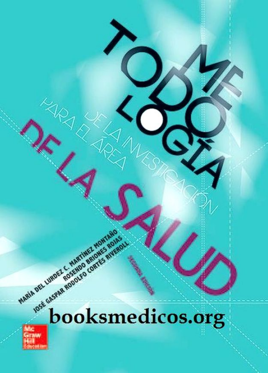 http://booksmedicos.org PARA EL ÁREA PARA EL ÁREAA PARA EL ÁREA DE LA SALUD DE LA INVESTIGACIÓN DE LA INVESTIGACIÓN NVES ACIÓNÓ EA DE LA INVESTIGACIÓN LL INVESTIG INVESTIGGACIÓN ACIÓNÓÓ C ME TODOlogía María del Lurdez Consuelo Martínez Montaño Químico Farmacobiólogo con Maestría y Doctorado en Ciencias Especialidad en Bioquímica y Biología Celular Coordinadora y profesora del Departamento de Bioquímica de la Facultad de Medicina, Benemérita Universidad Autónoma de Puebla Rosendo Briones Rojas Médico Cirujano con Maestría en Salud Pública Director de la Facultad de Medicina, Benemérita Universidad Autónoma de Puebla José Gaspar Rodolfo Cortés Riveroll Médico Cirujano con Maestría y Doctorado en Historia Secretario Administrativo de la Facultad de Medicina de la Benemérita Universidad Autónoma de Puebla Miembro del Sistema Nacional de Investigadores, nivel I Profesor de Historia y filosofía de la medicina Segunda edición MÉXICO • BOGOTÁ • BUENOS AIRES • CARACAS • GUATEMALA • MADRID • NUEVA YORK SAN JUAN • SANTIAGO • SAO PAULO • AUCKLAND • LONDRES • MILÁN • MONTREAL NUEVA DELHI • SAN FRANCISCO • SINGAPUR • ST. LOUIS • SIDNEY • TORONTO Director editorial: Javier de León Fraga Editor de desarrollo: Héctor F. Guerrero Aguilar Supervisor de producción: Juan José Manjarrez de la Vega METODOLOGÍA DE LA INVESTIGACIÓN PARA EL ÁREA DE LA SALUD Prohibida la reproducción total o parcial de esta obra, por cualquier medio, sin autorización escrita del editor. DERECHOS RESERVADOS © 2013, respecto a la segunda edición por, McGRAW-HILL INTERAMERICANA EDITORES S.A. DE C.V. Prolongación Paseo de la Reforma 1015 Torre A, piso 17 Colonia Desarrollo Santa Fe Delegación Álvaro Obregón C.P. 01376, México D.F. Miembro de la Cámara Nacional de la Industria Editorial Mexicana, Reg. Núm. 736 ISBN: 978-607-15-0947-5 1234567890 09765432108 Impreso en México Printed in Mexico NOTA La medicina es una ciencia en constante desarrollo. Conforme surjan nuevos conocimientos, se requeri- rán cambios de la terapéutica. El (los) autor(es) y los editores se han esforzado para que los cuadros de dosificación medicamentosa sean precisos y acordes con lo establecido en la fecha de publicación. Sin embargo, ante los posibles errores humanos y cambios en la medicina, ni los editores ni cualquier otra per- sona que haya participado en la preparación de la obra garantizan que la información contenida en ella sea precisa o completa; tampoco son responsables de errores u omisiones, ni de los resultados que con dicha información se obtengan. Convendría recurrir a otras fuentes de datos, por ejemplo, y de manera particu- lar, habrá que consultar la hoja informativa que se adjunta con cada medicamento, para tener certeza de que la información de esta obra es precisa y no se han introducido cambios en la dosis recomendada o en las contraindicaciones para su administración. Esto es de particular importancia con respecto a fármacos nuevos o de uso no frecuente. También deberá consultarse a los laboratorios para recabar información sobre los valores normales. Colaboradores Bernardo Briones Aguirre Médico Cirujano con Maestría y Doctorado en Ciencias Médicas. Profesor de Salud Pública y Nutrición Rosendo Briones Rojas Médico Cirujano con Maestría en Salud Pública. Director de la Facultad de Medicina de la BUAP, 2009-2012 Marco Antonio Casas Arellano Médico Cirujano. Comisionado Estatal de Arbitraje Médico en Puebla. Coordinador de Vincu- lación Académica, UDLAP José Gaspar Rodolfo Cortés Riveroll Médico Cirujano con Maestría y Doctorado en Historia. Secretario Administrativo de la Fa- cultad de Medicina de la BUAP. Miembro del Sistema Nacional de Investigadores, nivel I. Profesor de Historia y filosofía de la medicina Miguel Ángel Enríquez Guerra Médico Cirujano con Especialidad en Genética Clínica. Maestría en Ciencias Médicas e Investi- gación. Profesor investigador y coordinador de la Academia de Metodología de la Investigación de la Facultad de Medicina de la BUAP. Líder del Cuerpo Académico de Ciencias de la Salud Elizabeth Gámez Rodríguez Médico Cirujano con Especialidad en Pediatría. Coordinadora del Departamento de Planea- ción. Profesora de Pediatría y Salud Pública de la Facultad de Medicina de la BUAP José Luis Gándara Ramírez Médico Cirujano con Especialidad en Parasitología Clínica y Maestría en Educación en Cien- cias. Secretario Académico de la Facultad de Medicina de la BUAP Arturo García Villaseñor Médico Cirujano con Maestría en Educación. Coordinador de la Maestría de Administración en Servicios de Salud y docente de la Facultad de Medicina de la BUAP Beatriz Eugenia Gómez Pulido Químico Farmacobiólogo con Maestría en Ciencias Fisiológicas. Docente de la Facultad de Medicina de la BUAP Aurelio López Colombo Coordinador Delegacional de Investigación en Salud, IMSS Puebla María del Lurdez Consuelo Martínez Montaño Químico Farmacobiólogo con Maestría y Doctorado en Ciencias, con especialidad en Bioquí- mica y Biología Molecular. Coordinadora y profesora del Departamento de Bioquímica de la Facultad de Medicina de la BUAP iv Contenido Jaime Meneses Guerra Médico Cirujano con Especialidad en Medicina Interna y Maestría en Ciencias Médicas e Investigación. Profesor del Departamento de Fisiología de la Facultad de Medicina y coordi- nador de la Licenciatura de Medicina de la BUAP Arturo Mompín Ramírez Médico Cirujano con Maestría en Salud Pública. Docente de la Facultad de Medicina de la BUAP Carlos Omar Muñoz Guarneros Licenciado en Comunicación. Maestría en Administración María Margarita Muñoz Guarneros Médico Cirujano con Especialidad en Pediatría. Maestría en Ciencias Médicas e Investiga- ción. Secretaria de Investigación y Estudios de Posgrado de la Facultad de Medicina, BUAP Magda Sofía Pacio Quiterio Residente de Medicina Familiar, 