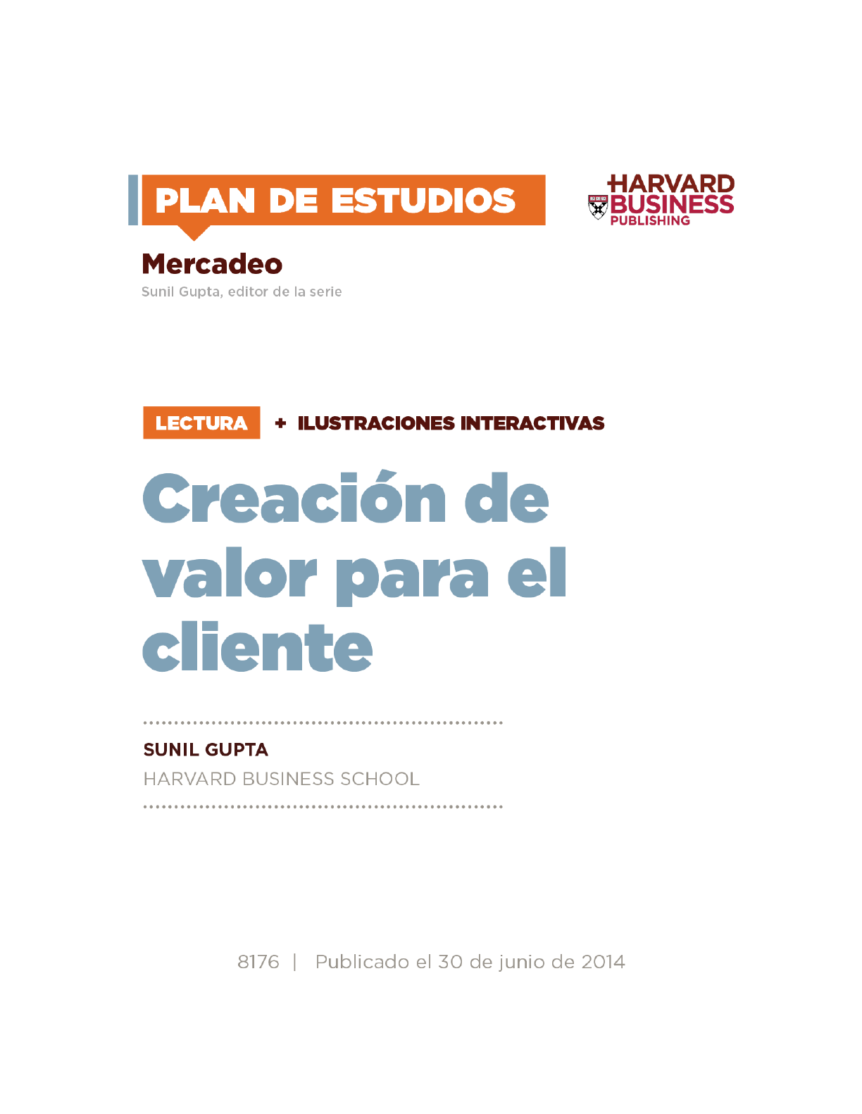 05/03/2018 https://eproduct.hbsp.harvard.edu/eproduct/product/cc_8176_SPA/content/print.html https://eproduct.hbsp.harvard.edu/eproduct/product/cc_8176_SPA/content/print.html 1/25 [Página 1] 05/03/2018 https://eproduct.hbsp.harvard.edu/eproduct/product/cc_8176_SPA/content/print.html https://eproduct.hbsp.harvard.edu/eproduct/product/cc_8176_SPA/content/print.html 2/25 U Sunil Gupta, profesor de la cátedra Edward W. Carter de Administración de Empresas de Harvard Business School, desarrolló esta Lectura fundamental con la colaboración del escritor Kamal Gupta. Copyright © 2014 Harvard Business School Publishing Corporation. Todos los derechos reservados. Si desea solicitar copias o pedir autorización para reproducir los materiales (incluyendo publicaciones en sitios web en Internet), llame al número 1-800-545-7685 o visite http://www.hbsp.harvard.edu. [Página 2] 1 INTRODUCCIÓN na de las labores principales de una empresa es comprender las necesidades de sus clientes y elaborar productos y servicios que les satisfagan, o incluso los deleiten. En ocasiones, es el propio mercado el que dirige este proceso; por ejemplo, cuando una empresa detecta las necesidades de sus clientes gracias a un estudio de mercado (es el caso de Nabisco, que lanzó un aperitivo de 100 calorías basándose en la información aportada por sus clientes). Otras veces, sin embargo, es el proceso el que dirige al mercado; por ejemplo, cuando una empresa crea nuevos productos según su propia visión de futuro (es el caso del fundador de Apple, Steve Jobs, famoso por crear productos sin llevar a cabo ningún tipo de investigación de mercado). En los dos casos, los gerentes deben comprender qué valoran los clientes cuando se deciden a pagar por los productos o servicios de determinada organización. El valor se define generalmente como la diferencia entre lo que un cliente paga por un producto o servicio y los beneficios que recibe a cambio. La Figura 1 describe cuatro formas en las que los clientes consideran el valor de un producto o servicio: valor económico, valor funcional, valor experiencial y valor social. FIGURA 1 Cuatro tipos de valor del cliente Los consumidores obtienen valor económico cuando un producto proporciona un ahorro tangible en dinero, ya sea en el momento de la compra o a lo largo del periodo de uso. Por ejemplo, una bombilla o un automóvil eficientes en energía y combustible, respectivamente, reducen el costo de poseerlos al consumidor. a http://www.hbsp.harvard.edu/ https://eproduct.hbsp.harvard.edu/eproduct/product/cc_8176_SPA/content/ch01.xhtml#fig1 https://eproduct.hbsp.harvard.edu/eproduct/product/cc_8176_SPA/content/ch06.xhtml#AA1 05/03/2018 https://eproduct.hbsp.harvard.edu/eproduct/product/cc_8176_SPA/content/print.html https://eproduct.hbsp.harvard.edu/eproduct/product/cc_8176_SPA/content/print.html 3/25 En ocasiones, cuando se comparan muchos productos (por ejemplo, teléfonos móviles o laptops), los consumidores no solo tienen en cuenta su precio, sino también sus diferentes características; en otras palabras, su valor funcional. Muchos consumidores también compran productos por su valor experiencial: ese valor emocional y psicológico intangible que se obtiene de las marcas o de un excelente servicio. Por ejemplo, Apple creó una imagen para sus marcas que le permitió cobrar un extra por sus productos. Amazon se ha posicionado como el agente líder en comercio electrónico no solo ofreciendo precios bajos, sino también brindando un excelente servicio al cliente. En muchos ámbitos, los consumidores obtienen valor social de los productos que consumen. El valor que se logra con Facebook procede del intercambio de información, imágenes y videos con los amigos. Muchos restaurantes y cafeterías ofrecen a sus clientes buena comida y bebida, así como un lugar para reunirse con los amigos. Todos los productos y servicios exitosos en los que nos centraremos en esta lectura otorgan a los clientes uno o más de estos valores. Comenzamos la Lectura imprescindible explorando el valor económico en detalle, seguido del análisis de los valores funcional, experiencial y social. La Lectura complementaria se centra específicamente en los servicios y en las formas en que las organizaciones pueden gestionar mejor la experiencia del cliente. [Página 3] 2 LECTURA IMPRESCINDIBLE 2.1 Valor económico para los clientes Cuando se trata de determinar las verdaderas ventajas económicas de un producto o servicio, debemos evaluar atentamente los costos y los ahorros involucrados. Por ejemplo, un automóvil híbrido ahorra dinero a los clientes porque reduce sus facturas de combustible, pero el automóvil en sí mismo cuesta normalmente varios miles de dólares más que su equivalente no híbrido. Una bombilla de diodo emisor de luz (led) es mucho más cara que una bombilla incandescente, pero consume menos electricidad y ahorra dinero a los consumidores todos los días. Una lavadora de carga frontal puede ser más cara que una que se carga por la parte superior, pero su instalación, mantenimiento y consumo de agua pueden suponer menores costos. Por lo tanto, la idea esencial del valor económico es tener en cuenta el costo total de propiedad o costo del ciclo de vida. Se trata del costo de poseer un producto a lo largo de toda su vida útil. Tomemos como ejemplo el caso de la bombilla, que actualmente se comercializa en tres modelos. Tradicionalmente, las bombillas estándar o incandescentes han sido las más baratas, pero su fabricación para la venta se está eliminando gradualmente en muchos países debido a la preocupación por la energía en todo el mundo. Las bombillas compactas fluorescentes son versiones en miniatura de los fluorescentes de tamaño normal con tubos en espiral. Este tipo de bombillas se pueden ajustar en casquillos de lámparas estándar y proyectan una luz cálida similar a la de las bombillas incandescentes, en lugar de la iluminación fluorescente que asociamo