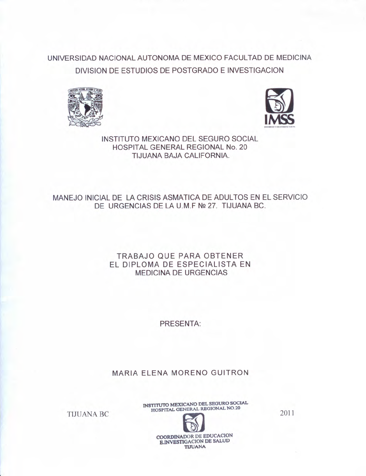 DE URGENCIAS DE LA U.M.F NQ27. TIJUANA BC.