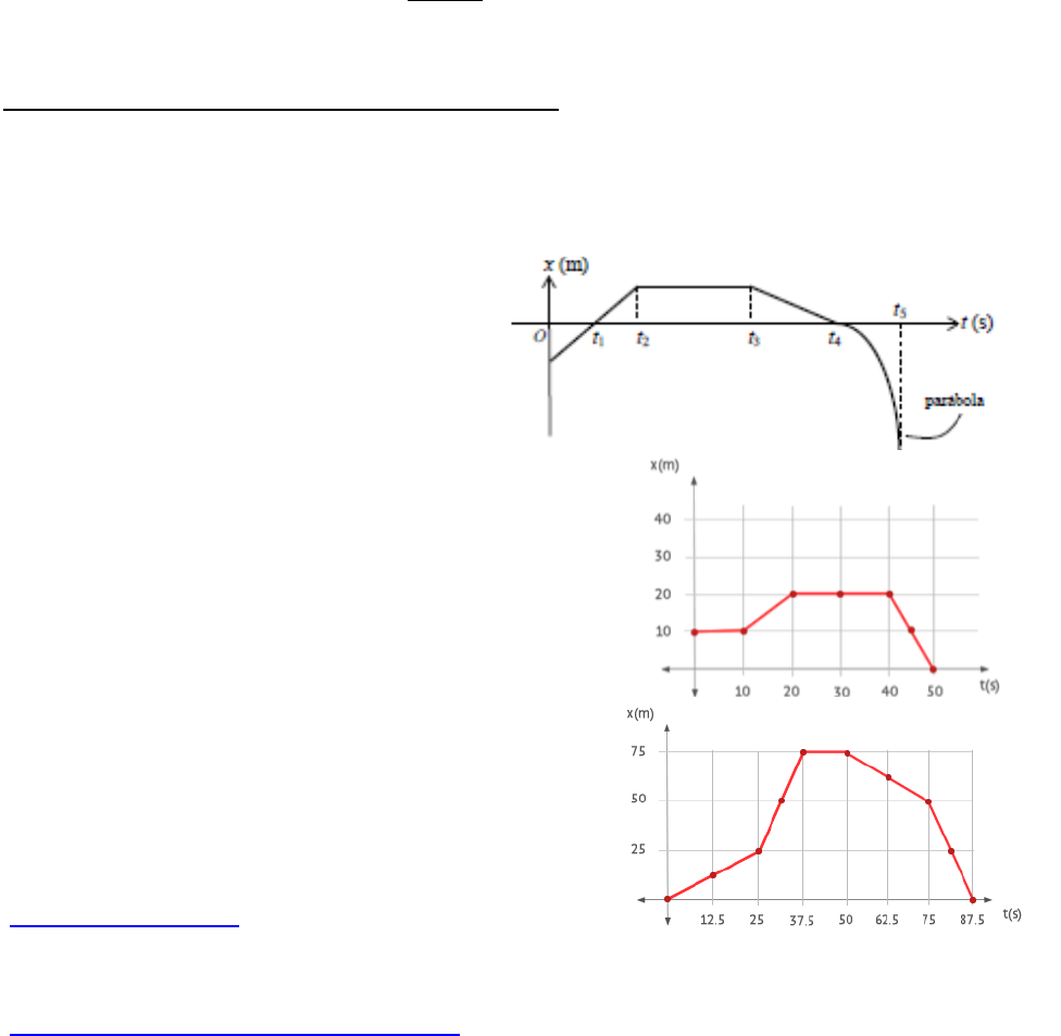 Facultad de Ingeniería FISICA I AÑO 2020 Universidad Nacional de Jujuy – U.N.Ju 1 TRABAJO PRÁCTICO Nº 2: Cinemática en una dimensión A - PROBLEMAS CON RESOLUCIÓN EN EL AULA VIRTUAL 1. Un automovilista viaja hacia el Este con velocidad de 90 km/h durante 10 minutos. Regresa luego al Oeste con velocidad de 54 km/h durante 20 minutos y finalmente vuelve hacia el Este 27 000 m viajando con velocidad de 108 km/h. Calcule la distancia total recorrida (en m), el desplazamiento y la velocidad media (m/s) del viaje completo. 2. ¿Qué tipo de movimiento tiene una partícula que se mueve en el eje x, de acuerdo con el siguiente gráfico? Describa por intervalos. a) t0 – t1 ______________________________. b) t1 – t2 ______________________________. c) t2 – t3 ______________________________. d) t3 – t4 ______________________________. e) t4 – t5 ______________________________. 3. El gráfico muestra la posición de un cuerpo en movimiento, en función del tiempo: Determina: a) La posición inicial. b) La posición final, el valor del desplazamiento y la distancia recorrida cuando t = 50 s. c) La velocidad media a lo largo de todo el recorrido. 4. La siguiente gráfica de posición – tiempo (x – t) corresponde a un cuerpo que se mueve con trayectoria recta. Determina la ecuación del movimiento en cada tramo y su gráfica de velocidad – tiempo. Para realizar el gráfico de velocidad en función del tiempo puedes utilizar la herramienta Geogebra (https://www.geogebra.org/). 5. Resolver el siguiente problema usando el simulador “El hombre móvil” (https://phet.colorado.edu/es/simulation/moving-man): El hombre se encuentra parado quieto en una posición junto al árbol, quiere llegar a su casa para lo cual empieza a correr con una aceleración de 1 m/s². Complete en función del enunciado los datos que le pide el simulador: posición inicial, velocidad inicial y aceleración. Ponga a correr el simulador ¿Qué velocidad alcanza cuando llega a la posición de su casa (x = 8,056 m)? Utilizando la pestaña de gráficas y seleccionando en características especiales el calculador de funciones, escriba la ecuación correcta del movimiento (- 8 + 0.5 * pow(t,2)) Ponga el simulador a correr. ¿En qué tiempo alcanzará una rapidez de 4,2 m/s? ¿Cuál será su posición para ese tiempo? Nota: con las lupas de acercar y alejar a la derecha de las gráficas, puede cambiar la escala de la ordenada. Verifique los resultados obtenidos en la simulación con los cálculos correspondientes. 6. Un ciclista comienza su paseo matutino y al cabo de 10 segundos su velocidad es de 7,2 km/h. En ese instante ve aproximarse un perro y comienza a frenar durante 6 segundos hasta que la bicicleta se detiene. Calcular: a) La aceleración hasta que comienza a frenar. b) La aceleración con la que frena la bicicleta. c) La distancia total recorrida. 7. Desde una altura de cuarenta metros se lanza hacia abajo un objeto de masa despreciable con una velocidad de 20 m/s. ¿Cuánto tiempo tardará en llegar al suelo? ¿Con qué velocidad impactará? 8. Una roca se deja caer verticalmente desde el reposo dentro de un pozo. Si el sonido del contacto con el agua se oye 1,50 s después, ¿Cuál es la distancia entre la parte superior y la superficie del agua? Considere la velocidad del sonido en el aire de 340 m/s. https://www.geogebra.org/ https://phet.colorado.edu/es/simulation/moving-man Facultad de Ingeniería FISICA I AÑO 2020 Universidad Nacional de Jujuy – U.N.Ju 2 9. Dos jugadores de bolillas se encuentran uno frente a otro con sus bolillas en la mano. El juego consiste en lanzarlas al mismo tiempo en línea recta y hacer que ambas se golpeen. Si ambos se encuentran situados a 36 metros uno del otro y el jugador A lanza su canica a 2 m/s y el jugador B a 4 m/s en un movimiento rectilíneo uniforme. Calcula a qué distancia del jugador B chocarán las canicas. 10. Una piedra se deja caer libremente al fondo de un precipicio de 80m de altura. Un segundo mas tarde una segunda piedra se lanza hacia abajo de tal forma que alcanza a la segundo justamente cuando esta llega al fondo. a) ¿Con qué velocidad se lanza la segunda piedra? b) ¿Qué velocidad llevaba la primera piedra cuando fue alcanzada? c) ¿Cuánto tiempo está en el aire la segunda piedra? B - PROBLEMAS ADICIONALES PARA RESOLVER EN CASA 1. En las graficas siguientes (X vs t) determinar el tipo de movimiento, utilizando el concepto de pendiente: (Δx/Δt) 2. Las tres graficas siguientes representan la posición en función del tiempo para dos móviles (1 y 2). Para cada una de las tres graficas señalar: a) ¿Qué movimiento realiza cada uno? b) Indicar cuál de los móviles tiene mayor velocidad. c) Indicar cual recorrió mayor camino. d) Escribir la ecuación de posición en función de tiempo para cada uno. A B C 3. La figura muestra la aceleración de un objeto en la dirección de x como función del tiempo. Suponga que para t=0(s), v=0 y x=0. Realice: a) una gráfica de la velocidad y posición en función del tiempo. b) Calcular el desplazamiento, la distancia recorrida y la velocidad media entre 0 y 9 segundos. 4. Si un cuerpo recorre la mitad de su distancia total de caída libre durante el último segundo de su movimiento a partir del reposo, calcular el tiempo y la altura desde la que cae. 5. Un muchacho lanza una pelota verticalmente hacia arriba con una velocidad de 9 m/s desde la parte superior de un cobertizo de 2,40 m de altura. Otro muchacho desde el suelo lanza al mismo instante otra pelota hacia arriba con una velocidad de 12 m/s. Determinar el instante y la altura desde el suelo en que las dos pelotas se encuentran. 6. Un objeto cae desde un puente que se encuentra a 45 m sobre el agua, y cae directamente en una lancha que se mueve con velocidad constante y se encontraba a 12 m del punto de impacto cuando se soltó el objeto. ¿Cuál era la rapidez de la lancha? 7. Un vehículo viaja a 90 km/h cuando el conductor ve un animal e