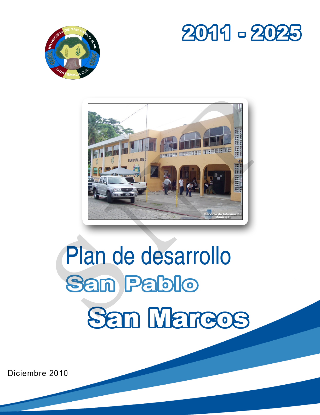 S N P 02.01.02 CM 1219 Consejo Municipal de Desarrollo del Municipio San Pablo, San Marcos. Guatemala. Secretaría de Planificación y Programación de la Presidencia. Dirección de Planificación Territorial. Plan de Desarrollo San Pablo, San Marcos. Guatemala: SEGEPLAN/DTP, 2010. 118 p. 27 cm. Anexos. (Serie PDM SEGEPLAN: CM 1219) 1. Municipio. 2. Diagnóstico municipal. 3. Desarrollo local. 4. Planificación territorial. 5. Planificación del desarrollo. 6. Objetivos del desarrollo del milenio. Consejo Municipal de Desarrollo Municipio de San Pablo, San Marcos, Guatemala, Centro América PBX: 77556070 Secretaría de Planificación y Programación de la Presidencia 9ª. calle, 10-44 zona 1, Guatemala, Centro América PBX: 23326212 www.segeplan.gob.gt Se permite la reproducción total o parcial de este documento, siempre que no se alteren los contenidos ni los créditos de autoría y edición S N P http://www.segeplan.gob.gt/� Directorio Rolando Abel Gabriel Barrios Presidente del Consejo Municipal de Desarrollo, San Pablo, San Marcos Karin Slowing Umaña Secretaria de Planificación y Programación de la Presidencia, SEGEPLAN Ana Patricia Monge Cabrera Sub Secretaria de Planificación y Ordenamiento Territorial, SEGEPLAN Juan Jacobo Dardón Sosa Asesor en Planificación y Metodología, SEGEPLAN Roy Walter Villacinda Delegado Departamental, SEGEPLAN, San Marcos Equipo facilitador del proceso Byron Huertas Director Municipal de Planificación, San Pablo, San Marcos Francis Méndez Laparra Facilitador del proceso de planificación, SEGEPLAN, San Marcos Edwin Alberto Castillo Lepe/ Julio Cesar Navarro Boj Especialista en Planificación, SEGEPLAN, San Marcos Con la conducción y asesoría metodológica de la Dirección de Planificación Territorial, SEGEPLAN S N P i Plan de desarrollo municipal INDICE GENERAL I. PRESENTACION ......................................................................................................... 1 II. INTRODUCCION ......................................................................................................... 2 III. ANTECEDENTES DE PLANIFICACION ................................................................ 5 IV. OBJETIVOS DEL PDM ............................................................................................... 6 4.1. Objetivo general ...................................................................................................................... 6 4.2 Objetivos específicos del PDM ............................................................................................ 6 V. METODOLOGIA DEL PROCESO ............................................................................ 7 VI. DIAGNOSTICO ............................................................................................................ 9 6.1 Distribución general del municipio ..................................................................................... 9 6.1.1 Ubicación geográfica ................................................................................................... 9 6.1.2 Demografía ................................................................................................................ 14 6.2 Historia, Cultura e Identidad ............................................................................................. 19 6.3 Dimensiones ...................................................................................................................... 20 6.3.1 Dimensión Social ....................................................................................................... 20 b. Seguridad Alimentaria y Nutricional ............................................................................. 26 c. Educación ...................................................................................................................... 29 d. Servicios Básicos ............................................................................................................ 35 e. Seguridad Ciudadana .................................................................................................... 37 f. Participación Ciudadana ................................................................................................ 37 g. Conclusión dimensión social ......................................................................................... 38 6.3.2 Dimensión Ambiental ................................................................................................ 41 a. Recursos Naturales ........................................................................................................ 41 b. Gestión integrada del recurso hídrico ........................................................................... 45 c. Gestión de Riesgo .......................................................................................................... 46 d. Saneamiento Ambiental ................................................................................................ 48 e. Conclusión dimensión ambiental .................................................................................. 49 6.3.3 Dimensión Económica ................................................................................................... 51 a. Empleo .......................................................................................................................... 51 b. Mercado y condiciones del entorno ............................................................................. 52 c. Desarrollo Productivo ................................................................................................... 52 d. Servicios ........................................................................................................................ 57 e. Conclusión dimensión económica ................................................................................. 58 6.3.4 Dimensión Político Institucional ................................................