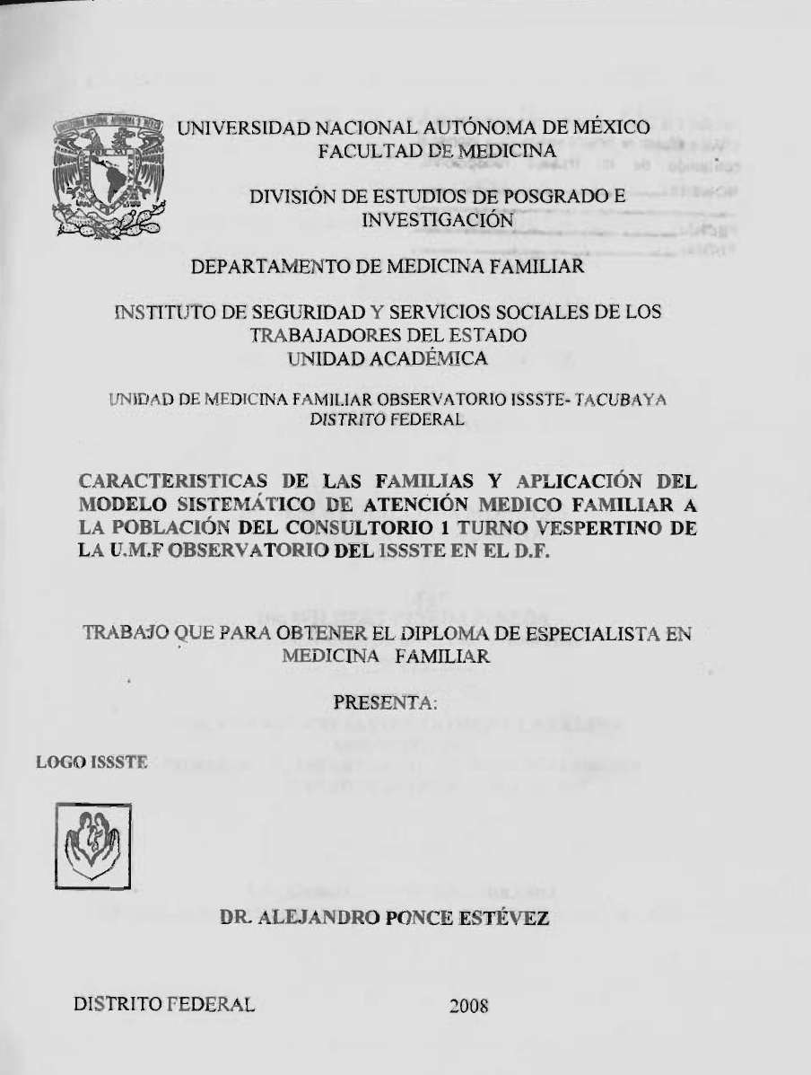 N eevia docC onverter 5.1 UNAM – Dirección General de Bibliotecas Tesis Digitales Restricciones de uso DERECHOS RESERVADOS © PROHIBIDA SU REPRODUCCIÓN TOTAL O PARCIAL Todo el material contenido en esta tesis esta protegido por la Ley Federal del Derecho de Autor (LFDA) de los Estados Unidos Mexicanos (México). El uso de imágenes, fragmentos de videos, y demás material que sea objeto de protección de los derechos de autor, será exclusivamente para fines educativos e informativos y deberá citar la fuente donde la obtuvo mencionando el autor o autores. Cualquier uso distinto como el lucro, reproducción, edición o modificación, será perseguido y sancionado por el respectivo titular de los Derechos de Autor. N eevia docC onverter 5.1 N eevia docC onverter 5.1 INDICE MARCO TEORICO…………………………………………….………………………….1 ANTECEDENTES HISTORICOS………………………………………………………..2 ATENCIÓN PRIMARA A LA SALUD (A.P.S.)…………………………………………..3 ATENCIÓN PRIMARIA ORIENTADA HACIA LA COMUNIDAD (A.P.O.C.)..…........4 MOSAMEFY LA MEDICINA FAMILIAR …………………………………………..….....6 LA FAMILIA COMO UNIDAD DE ANALISIS…………………………………….…..….7 DEFINICION DE FAMILIA……………………………………………………………......8 ELEMENTOS TEORICOS NECESARIOS PARA EL ESTUDIO DE LA FAMILIA…..8 CICLO DE VIDA FAMILIAR……………………………………………………...………...9 TIPOLOGIA DE LA FAMILIA………………………………………………….......……...11 EL MODELO SISTEMATICODE ATENCIÓN MÉDICA FAMILIAR (MOSAMEF)……13 RESPECTIVAS DEL MOSMEF………………………………………………………….…14 PERFIL PROFECIONAL DEL MEDICO DE FAMILIA…………………………..……..16 PLANTEAMIENTO DEL PROBLEMA……………………………………………………26 JUSTFICACION…………………………………………………………………………….26 OBJETIVO GENERAL……………………………………………………………………..26 MATERIAL Y METODOS…………………………………………………………….……27 TIPO DE ESTUDIO………………………………………………………………..………27 DISEÑO DE INVESTIGACION………………………………………………….………28 MUESTRA………………………………………………………………………….……..29 CRITERIOS DE INCLUSIÓN Y EXCLUSIÓN…………………………………………29 METODO PARA LA RECOLECCIÓN DE LA INFORMACIÓN……………….……...31 VARIABLES………………………………………………………………………………...33 Neevia docConverter 5.1 CONSIDERACIONES ÉTICAS……………………………………………………….37 RESULTADOS…………………………………………………………………….……39 DISCUSION……………………………………………………………………….…….48 CONCLUSIONES………………………………………………………………………49 REFERENCIAS…………………………………………………………………………51 ANEXOS………………………………………………………………………………....52 Neevia docConverter 5.1 1. MARCO TEORICO M.O.S.A.M.E.F . EL MOSAMEF es un modelote práctica médica familiar, diseñado por un grupo de investigadores del departamento de medicina familiar de la Universidad Nacional Autónoma de México. Fue dado a conocer desde 1995 en la tercer edición del libro fundamentos de Medicina Familiar. (1) La medicina de familia ha demostrado que pede dar una atención primaria excepcional a los individuos y a sus familias basándose en un compromiso con calidad, la atención personal y las relaciones interpersonales que todo paciente desea. (2) La atención primaria es el marco ideal para impulsar y desarrollar un programa de actividades preventivas y de producción de la salud, por tratarse del nivel dentro del sistema sanitario donde la población accede de manera directa. (4) Neevia docConverter 5.1 1. Antecedentes Históricos La conferencia de Alma-Ata define a la atención primaria a la salud como: asistencia sanitaria esencial, basada en métodos y tecnología práctica científicamente fundada y socialmente aceptable, puesta al alcance de todos los individuos y las familias de la comunidad mediante su plena participación y a un costo que la comunidad y el país puedan soportar en cada una de sus etapas de desarrollo con espíritu de auto responsabilidad y autodeterminación La atención primaria forma parte integrante tanto del Sistema Nacional de Salud, del que constituye la función principal, como del desarrollo social y económico global de la comunidad. Representa el primer nivel de contacto con el individuo, la familia y la comunidad con el Sistema Nacional de Salud, en el lugar donde residen y trabajan las personas, constituyendo el primer elemento de un proceso permanente de asistencia sanitaria. (1) El modelo de atención primaria a la salud consiste en anticiparse al daño y actuar sobre los factores de riesgo, a que está sujeto una población específica mediante la identificación de dichos factores a que está expuesto cada miembro de la población tratando de cancelar, modificar o atenuar esos factores. (1) Neevia docConverter 5.1 1.1 atención primaria a la salud (A.P.S.) (O.M.S. 1978) La conferencia internacional sobre A.P.S. (1978) auspiciada por la O.M.S. en Alma- Ata (Kasajistán) marcó un precedente en la historia del pensamiento sanitario mundial. 1) Se presentó un panorama de las desigualdades y deficiencias en la salud y bienestar. 2) Se consideró la salud como un derecho humano que los estados deben 