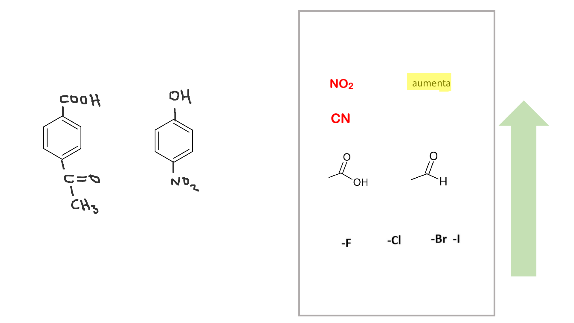 más ácidos que el fenol y el ácido benzoico el que más aumenta la acidez Menos ácidos que el fenol y el ácido benzoico el que más disminuye la acidez más básicos que la anilina el que más aumenta la basicidad menos básicos que la anilina el que más disminuye la basicidad agua alcoholes ácidos carboxílicos dador electrones atractor electrones >> > > > acidez ácidos etanoico> ácido benzoico > amina secundaria cíclica amina secundaria amina primaria y terciaria NH3 piridina anilnadador electrones atractor electrones > > > > > > aminas aromáticas basicidad de aminas basicidad de aminas aromáticas el de menor pKa es más ácido!! más básico!! la de mayor pKa es más bácica!! Número de diapositiva 1 Número de diapositiva 2 Número de diapositiva 3 Número de diapositiva 4 Número de diapositiva 5 Número de diapositiva 6 Número de diapositiva 7 Número de diapositiva 8 Número de diapositiva 9 Número de diapositiva 10