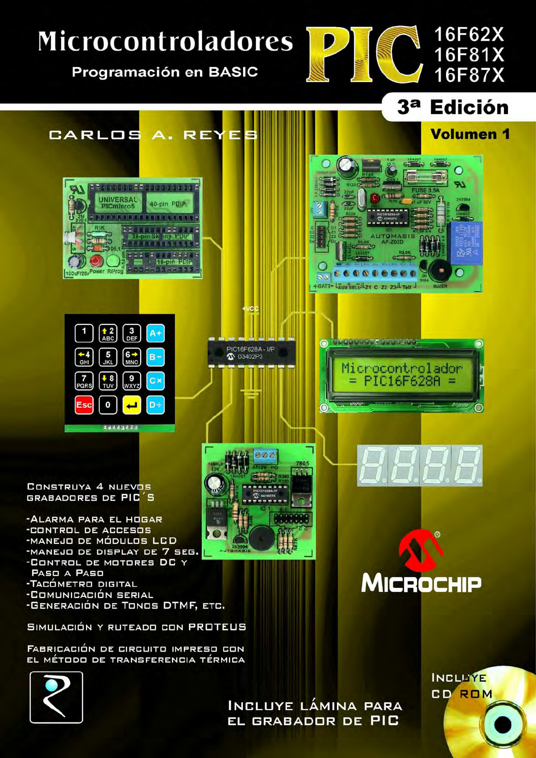 Tercera edición CARLOS A. REYES Ing. en Electrónica Digital y Telecomunicaciones Tlgo. Electrónico en Automatización y Domótica Profesor de microcontroladores PIC Director Técnico de AUTOMASIS Título original: Microcontroladores PIC Programación en Basic Tercera edición DERECHOS RESERVADOS © 2008 Diseño de portada: Carlos A. Reyes Diagramación: Carlos A. Reyes Fotografía: Carlos A. Reyes Prohibida la reproducción parcial o total de este libro por cualquier medio sea electrónico, mecánico, fotocopiado o cualquier otro método, salvo con autorización previa y por escrita del autor. WINDOWS es marca registrada y pertenece a Microsoft VISUAL BASIC es marca registrada y pertenece a Microsoft PIC® es marca registrada y pertenece a Microchip MicroCode Studio es marca registrada y pertenece a Mecanique PicBasic Pro es marca registrada y pertenece a microEngineering Labs. IC-Prog es marca registrada y pertenece a Bonny Gijzen Todas las marcas que aparecen o se mencionan en este libro son registradas y pertenecen a sus propietarios. © 2008 : Carlos A. Reyes Pedidos de ejemplares, láminas de transferencia, placas PCB, asesoría en proyectos y tesis de grado a los telfs. 022 070 290 096 136 564 E-mail: automasis@yahoo.es Http://www.automasis.es.tl Impreso por: RISPERGRAF Derechos del autor Nro. 020604 ISBN-10: 9978-45-004-1 ISBN-13: 978-9978-45-004-8 IMPRESO EN QUITO-ECUADOR v CONTENIDO Prólogo ............................................................................................................................................ix Introducción ....................................................................................................................................xi Capítulo 1 SOFTWARES PARA EL FUNCIONAMIENTO DEL PIC 1 Descargas e instalaciones de los softwares ...................................................................................1 1.1 Descarga del programa gratuito microcode ...............................................................................1 1.2 Descarga del programador Ic-Prog y el drive NT/2000/XP.....................................................5 1.3 Descarga del compilador PICBasic Pro .....................................................................................8 1.4 Instalación del software MicroCode Studio ...............................................................................9 1.5 Instalación del software programador Ic-prog 1.06A ..............................................................10 1.6 Instalación del driver para Windows NT/2000/XP ..................................................................12 1.7 Instalación de pbp247 (PicBasic Pro versión 2.47) .................................................................14 1.8 Instalación del compilador PicBasic Pro versión DEMO ........................................................14 Capítulo 2 EL MICROCONTROLADOR PIC 2 ¿Qué es un microcontrolador? ....................................................................................................17 2.1 El microcontrolador PIC16F628A ...........................................................................................17 2.2 Arquitectura del PIC6F628A ...................................................................................................18 2.3 La memoria de programa .........................................................................................................19 2.4 La memoria de datos ................................................................................................................20 2.5 Características generales ..........................................................................................................22 2.6 Diagrama de pines y funciones ................................................................................................22 2.7 Consideraciones básicas pero muy útiles a la hora de montar un proyecto .............................23 Capítulo 3 EL PROGRAMA MicroCode Studio 3.1 Configuración de MicroCode Studio (IDE) .............................................................................25 3.2 Manejo de MicroCode Studio ..................................................................................................28 3.3 Identificación de errores en la compilación .............................................................................31 vi Capítulo 4 PROGRAMANDO EN LENGUAJE BASIC 4.1 Diferencias entre el lenguaje Basic y ensamblador ..................................................................33 4.2 Aprendiendo a programar el Pic 16F628A con microcode .....................................................35 4.3 Grabando el PIC con el IC-prog 1.06A ....................................................................................36 4.4 Diferentes caminos a seguir para conseguir un mismo objetivo ..............................................39 4.5 Declaraciones disponibles en el compilador pbp 2.47 .............................................................41 Capítulo 5 PROYECTOS CON MICROCONTROLADORES PIC 5 Proyectos de aplicación ...............................................................................................................43 5.1 PROYECTOS CON LEDS 5.1.1 Programa básico para hacer parpadear un led con intervalos de 1 segundo .........................44 5.1.2 Un semáforo de 2 intersecciones ...........................................................................................45 5.1.3 Juego de luces para discoteca ................................................................................................47 5.2 PROYECTOS DE REPETICIONES 5.2.1 Ejercicio con la instrucción FOR NEXT ..............................................................................50 Las variables BIT, BYTE y WORD ................................................................................50 5.2.2 Luces del auto fantástico (desplazamientos) ................................................
