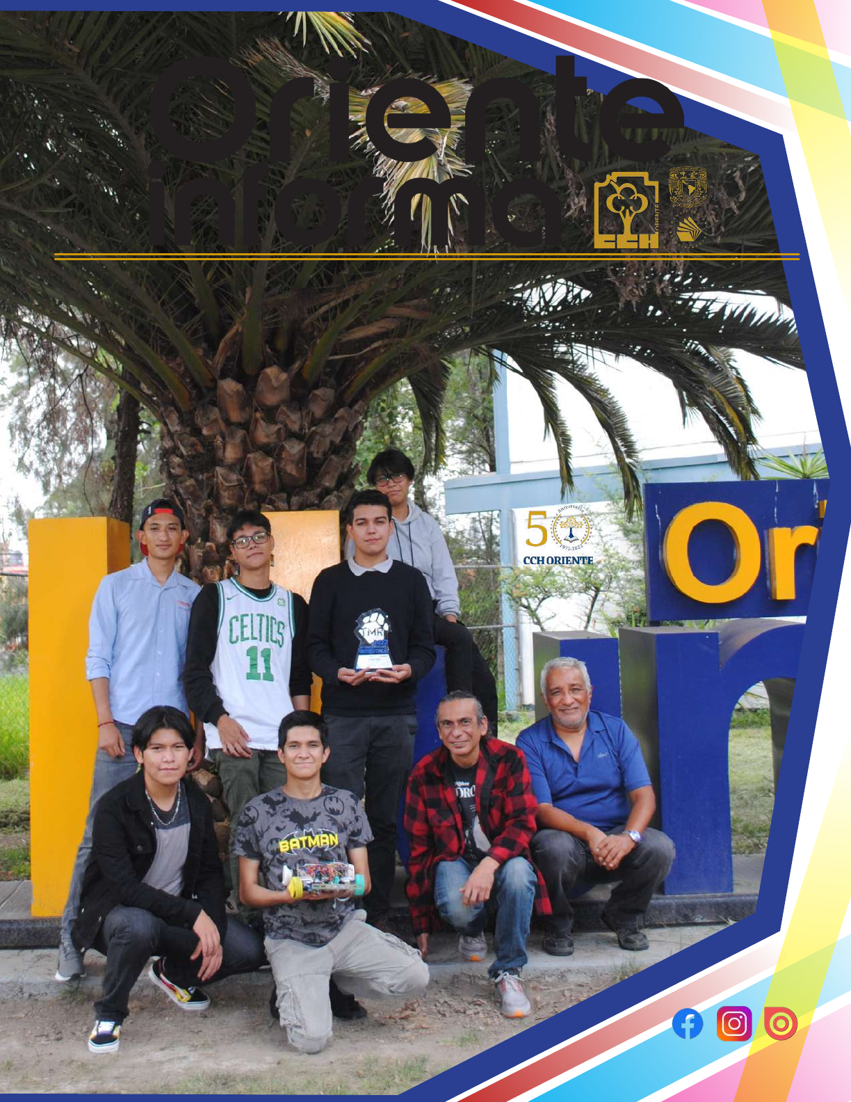 La róboticaLa róboticaCecehacheros del plantel Cecehacheros del plantel brillan en certamen brillan en certamen de robóticade robótica OrienteOriente informainforma Órgano informativo del Plantel Oriente • Octava época • núm. 1029 • 22 de agosto de 2022 • www.cch-oriente.unam.mxÓrgano informativo del Plantel Oriente • Octava época • núm. 1029 • 22 de agosto de 2022 • www.cch-oriente.unam.mx Oriente Informa UNAM Oriente Informa 1029/22 de agosto de 2022 academia 3 Oriente Informa 1029/22 de agosto de 2022 EDITORIAL 2 “Los colamochas”, un equipo conformado por seis entu-siastas, curiosos y creativos estudiantes del plantel Oriente, obtu- vo el segundo lugar en el XIII Torneo Mexicano de Robótica 2022 en la cate- goría RCJ Rescue Line (modalidad vir- tual), celebrado recientemente. En entrevista con este medio, los ahora egresados del plantel, Evelyn An- drea Luna García, Jordan Ramírez Islas, Víctor Omar Téllez Arenas, Hugo Zaid Medina Martínez y Ángel Zidane Mena Tapia, junto con el actual estudiante de quinto semestre, Juan Carlos Luna Gutiérrez, además de los profesores y coordinadores del Club de Robótica local, Pedro Ruiz Tapia y Leonardo Ga- briel Carrillo Contreras, nos comenta- ron sobre los avatares y emociones de su participación en dicho torneo. En esta ocasión, el certamen se realizó en línea y, para participar, nues- Jóvenes destacan en el XIII Torneo Mexicano de Robótica 2022 La robótica, disciplina divertida y enriquecedora tros jóvenes construyeron el robot bau- tizado como “Manchitas”, que recorrió un camino marcado con cinta de aislar en una especie de laberinto, el cual te- nía indicaciones con cuadros verdes para indicar giros, además de obstácu- los como botellas y palillos, que debía sortear. En una segunda etapa, el robot de- bía entrar en una “zona de rescate” con estorbos como popotes, posteriormen- te debía de seguir una línea que forma- ba un cuadrado y buscar a la “víctima”, es decir, una pelota, avisar de su “estado de salud” mediante unos leds que par- padeaban y dejaban un “kit de primeros auxilios”, en este caso, una pequeña caja. Para evaluar su participación, el jurado calificaba cada obstáculo sortea- do, además de que siguiera la línea sin desviarse. A decir de nuestros entrevistados, esta competencia híbrida donde par- ticiparon escuelas públicas y privadas de todo el país, fueron tres días de in- tenso trabajo a contrarreloj, pues “nos avisaban dos horas antes de las carac- terísticas de la pista para el recorrido y la construíamos según las indicaciones utilizando formaica y otros materiales improvisados”. De acuerdo con Pedro Tapia y Leo- nardo Carrillo, “Manchitas” fue cons- truido en tiempo récord, pues en vez de emplear meses como es cotidiano, los participantes lo terminaron en dos se- manas. “Es un aparato completamente autónomo, pues no debe ser manejado a control remoto. Tiene cuatro motores de corriente directa, fuente de energía con batería LiPo (litio y polímero), su “cerebro” es un microcontrolador Ar- duino MEGA y fue construido y progra- mado por los estudiantes”. Al hablar sobre esta aventura, nuestros entrevistados comentaron Con la Feria de la Salud, nuestro plantel volvió a las actividades masivas con un tema de interés para las y los estudiantes. Dicha feria fue también la señal de la recuperación de todas las tareas que dan sustento al proceso enseñanza aprendizaje. Una explanada abarrotada que da cuenta del interés juvenil y la riqueza de una amplia oferta aca- démica, cultural y experimental, en la que los protagonistas son las y los estudiantes, quienes vol- vieron a sus espacios naturales para su formación integral. Una biblioteca con una presencia numerosa, pero también para que el estudiantado conozca sus instalaciones y sus servicios y con ello tenga un complemento más en conocimientos, saberes y recursos digitales, hoy en día, necesarios para la educación. Las pláticas, los talleres y todas las tareas formativas de manera presencial, son ya la constante en la mediateca, en los laboratorios curriculares, salas de audiovisual, además de los servicios escola- res, de mantenimiento y de salud a los que tenemos derecho como universitarios y cecehacheros. Por ello, el exhorto para que planta docente y el alumnado vuelvan a apropiarse de esos espacios generosos para la enseñanza aprendizaje, que bien sabemos son indispensables para el cumpli- miento de nuestra responsabilidad institucional. Regreso a las actividades masivas Directorio Rector Dr. Enrique Luis Graue Wiechers Secretario general Dr. Leonardo Lomelí Vanegas Director General del CCH Dr. Benjamín Barajas Sánchez Secretaria General Mtra. Silvia Velasco Ruiz Directora Mtra. María Patricia García Pavón Secretario General QFB. Reyes Flores Hernández Secretaria Académica Lic. Edith Catalina Jardón Flores Secretaria Administrativa Mtra. Alejandra Barrios Rivera Secretaria Docente Mtra. Cecilia Espinosa Muñoz Secretaria de Administración Escolar Lic. Norma Cervantes Arias Secretaria de Asuntos Estudiantiles Dra. Elsa Rodríguez Saldaña Secretaria Técnica del Siladin Ing. Angélica Nohelia Guillén Méndez Secretaria Auxiliar de la Dirección Mtra. Griselda Chávez Fernández Jefe de Información Lic. Ignacio Valle Buendía Mesa de redacción y diseño editorial Lic. Miguel Ángel Landeros Bobadilla Redes sociales Lic. Marlen Vázquez del Mercado Solís Colaborador Ulises Soriano Oriente Informa aparece los lunes publicado por el Departamento de Información, de la Secretaría General del Plantel Oriente. Edificio de la Dirección. Teléfono: 57736325, ext. 142 Correos electrónicos ignacio.valle@cch.unam.mx landerosbo@hotmail.com marlen.vazquezdelmercado@cch.unam.mx Oriente Informa 1029/22 de agosto de 2022 academia Oriente Informa 1029/22 de agosto de 2022 academia 4 5 que fueron sesiones bajo presión, pero aprendieron a trabajar en equip