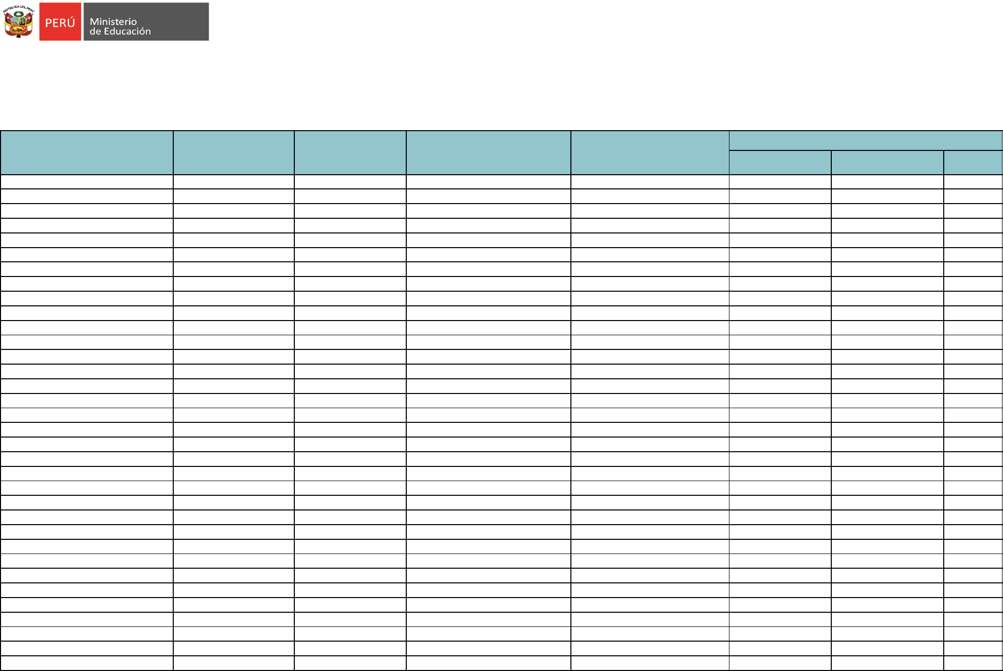 (*) Del 26/11/21 al 17/12/21, los postulantes que superaron la Prueba Única Nacional pueden seleccionar la región y la o las UGEL de su interés. COMPRENSIÓN LECTORA CONOCIMIENTOS DE GESTIÓN TOTAL ICA 01187803 FIGUEROA CORDERO LEONEL BRUCEK 42 64 106 ICA 01320049 NUÑEZ TOLEDO WILDER RENATO 46 72 118 ICA 02424239 VILLANUEVA TACCA JOSE LUIS 40 64 104 ICA 09082351 BEDON REYES MIRTHA ANGELICA 46 72 118 ICA 09641776 ENCISO GALVEZ ROCIO DEL CARMEN 48 60 108 ICA 10535299 LOZA DE LOS SANTOS MERCEDES JULISA 48 64 112 ICA 10601297 QUISPES GARAY JULY MONICA 42 60 102 ICA 21402930 GUTIERREZ VALLE JULIO ANDRES 46 72 118 ICA 21405427 HERNANDEZ BARRETO JOSE ROBERTO 48 68 116 ICA 21412608 OCHOA CHOCHOJA JULIAN 48 64 112 ICA 21419386 ANTAYHUA RONDINEL ROGER FREDDY 36 64 100 ICA 21421107 CALDERON FERREYROS LEYLA ENRIQUETA SALOME 48 64 112 ICA 21433410 RIOS COLINA MOISES ARTURO 40 60 100 ICA 21442797 HERRERA PALOMINO LUZ EDIT 46 72 118 ICA 21454424 GARAYAR FLORES CELINDA YOLANDA 44 68 112 ICA 21454425 NAVARRETE HUAMAN WILLMER 48 68 116 ICA 21456500 PISCONTI FLORES VILMA LUISA 46 72 118 ICA 21458392 HUAMAN DE LA CRUZ MIKE HENRY 50 68 118 ICA 21460672 SALAZAR GARCIA FELIX DANTE DARIO 38 68 106 ICA 21461041 BRICEÑO TORRES DIANA DEL PILAR 48 64 112 ICA 21462117 FLORES GUILLEN ADOLFO ALBERTO 50 80 130 ICA 21471588 PACHECO HUAROTTO LUIS ROLANDO 40 60 100 ICA 21485485 BENDEZU LOZA FROEBEL MARTIN 48 60 108 ICA 21519762 ASCENCIO LEGUA CARLOS JESUS 42 60 102 ICA 21520468 BONIFAZ HERNANDEZ ALEJANDRO FREDY 48 60 108 ICA 21520649 URIBE MUÑANTE MAGDA ELENA 40 68 108 ICA 21522009 TIPISMANA PASACHE ALEJANDRINA PATRICIA 46 72 118 ICA 21524475 BACAS QUISPE MARITZA GLADYS 44 60 104 ICA 21525354 ANTONIO ANYOSA GIANNINA LEISSER 40 80 120 ICA 21527473 DORREGARAY GARCIA CHRISTIAN JORGE 50 68 118 ICA 21527837 ANYARIN TIPIANI LUCY SANTOS 44 64 108 ICA 21528529 HUARANGA MEDINA MARIA ELIZABETH 46 60 106 ICA 21528582 FIGUEROA CORDERO FABIOLA MAGALY 42 72 114 ICA 21529374 MERE HERNANDEZ PERCY RICARDO 44 68 112 RELACIÓN DE POSTULANTES QUE SUPERARON LOS PUNTAJES MÍNIMOS REQUERIDOS EN LAS SUBPRUEBAS DE LA PRUEBA ÚNICA NACIONAL CONCURSO PÚBLICO DE ACCESO AL CARGO DE DIRECTOR DE UNIDADES DE GESTIÓN EDUCATIVA LOCAL 2020 RVM N° 136-2020-MINEDU / RVM N° 050-2021-MINEDU / OFICIO N° 00641-2020-MINEDU-VMGP-DIGEDD / OFICIO N° 00979-2020-MINEDU-VMGP-DIGEDD / OFICIO N° 00171-2021-MINEDU-VMGP-DIGEDD / OFICIO N° 00375-2021- MINEDU-VMGP-DIGEDD / OFICIO N° 00636-2021-MINEDU-VMGP-DIGEDD PUNTAJE DE LA PRUEBA ÚNICA NACIONAL Actualizado: 10/12/2021 DOCUMENTO DE IDENTIDAD APELLIDO PATERNO APELLIDO MATERNO NOMBRESSEDE DONDE FUE EVALUADO (*) Publicado: 07/12/2021 1/3 (*) Del 26/11/21 al 17/12/21, los postulantes que superaron la Prueba Única Nacional pueden seleccionar la región y la o las UGEL de su interés. COMPRENSIÓN LECTORA CONOCIMIENTOS DE GESTIÓN TOTAL RELACIÓN DE POSTULANTES QUE SUPERARON LOS PUNTAJES MÍNIMOS REQUERIDOS EN LAS SUBPRUEBAS DE LA PRUEBA ÚNICA NACIONAL CONCURSO PÚBLICO DE ACCESO AL CARGO DE DIRECTOR DE UNIDADES DE GESTIÓN EDUCATIVA LOCAL 2020 RVM N° 136-2020-MINEDU / RVM N° 050-2021-MINEDU / OFICIO N° 00641-2020-MINEDU-VMGP-DIGEDD / OFICIO N° 00979-2020-MINEDU-VMGP-DIGEDD / OFICIO N° 00171-2021-MINEDU-VMGP-DIGEDD / OFICIO N° 00375-2021- MINEDU-VMGP-DIGEDD / OFICIO N° 00636-2021-MINEDU-VMGP-DIGEDD PUNTAJE DE LA PRUEBA ÚNICA NACIONAL Actualizado: 10/12/2021 DOCUMENTO DE IDENTIDAD APELLIDO PATERNO APELLIDO MATERNO NOMBRESSEDE DONDE FUE EVALUADO (*) Publicado: 07/12/2021 ICA 21538868 ESPINO ESPINO JUANA ELENA 44 64 108 ICA 21538951 GASTELU ESCALANTE DE HUAYTA MABEL LUSANA 46 72 118 ICA 21539346 CANCHOS CUBA EDWIN ZOCIMO 48 60 108 ICA 21540676 ZARATE RIOS JANETH JACINTA 44 76 120 ICA 21540690 MORALES MEDINA EDGAR MARIO 42 80 122 ICA 21544197 CUARITE HUARCAYA CARLOS ALBERTO 46 76 122 ICA 21545177 MOQUILLAZA HERNANDEZ JOSE FELIX 42 72 114 ICA 21545551 CARPIO DE LA CRUZ MARIELA NOEMI 48 76 124 ICA 21545715 GRIMALDO MAYAUTE LIZZY GUADALUPE 44 76 120 ICA 21548333 CENTENO ROJAS MARISOL ANGELICA 46 64 110 ICA 21548351 MENDIVEL AVALOS MARILENE 42 68 110 ICA 21549234 FUENTES ROMERO ELVA MARIELA 46 72 118 ICA 21555185 SALVADOR GARAYAR MOISES HENRY 50 64 114 ICA 21556091 FLORES TIPACTI JOSE FRANCISCO 44 72 116 ICA 21558071 JUNES PAREDES LUIS MANUEL 38 76 114 ICA 21560922 MUÑOZ HERNÁNDEZ JOE CRISTIAN 46 60 106 ICA 21567016 CARMONA LENGUA JUSTO MIGUEL 50 68 118 ICA 21568769 RAMOS CARHUAYO EDITH MARIANELLA 42 64 106 ICA 21575028 HERNANDEZ YAYA CARLOS CRISTHIAM 46 72 118 ICA 21812049 MATEO PACHAS CESAR ORLANDO 38 64 102 ICA 21828398 LEVANO REBATTA JESUS NEDA 46 64 110 ICA 21835599 YATACO SARAVIA MIGUEL ARTURO 46 68 114 ICA 21845027 CANCHARI QUISPE JHONY ANGEL 44 72 116 ICA 21845903 ROJAS LOZA ORLANDO JAVIER 46 72 118 ICA 21846358 PRIETO MENDOZA MARIA YOLANDA 36 60 96 ICA 21851767 VILLA ARTEAGA BERNARDO 48 64 112 ICA 21854314 ORMEÑO PACHAS NILDA 40 68 108 ICA 21857022 ASTORAYME LEANDRO CESAR WILLIAM 44 60 104 ICA 21857598 TRILLO ESCOBAR ODON CHARLES 46 76 122 ICA 21859276 PEREZ ORELLANA MARIA DEL CARMEN 42 72 114 ICA 21868852 FELIX PACHAS EFRAIN ASCENCION 44 64 108 ICA 21877438 TORRES MATIAS WILBERT 48 88 136 ICA 21882663 GENTILLE DE LA CRUZ ROBERTO CESAR 50 80 130 ICA 21884046 SANCHEZ HUASASQUICHE JUAN 44 60 104 2/3 (*) Del 26/11/21 al 17/12/21, los postulantes que superaron la Prueba Única Nacional pueden seleccionar la región y la o las UGEL de su interés. COMPRENSIÓN LECTORA CONOCIMIENTOS DE GESTIÓN TOTAL RELACIÓN DE POSTULANTES QUE SUPERARON LOS PUNTAJES MÍNIMOS REQUERIDOS EN LAS SUBPRUEBAS DE LA PRUEBA ÚNICA NACIONAL CONCURSO PÚBLICO DE ACCESO AL CARGO DE DIRECTOR DE UNIDADES DE GESTIÓN EDUCATIVA LOCAL 2020 RVM N° 136-2020-MINEDU / RVM N° 050-2021-MINEDU / OFICIO N° 00641-2020-MINEDU-VMGP-DIGEDD / OFICIO N° 00979-2020-MINEDU-VMGP-DIGEDD / OFICIO N° 00171-2021-MINEDU-VMGP-DIGEDD / OFICIO N° 00375-2021- MINEDU-VMGP-DIGEDD / OFICIO N° 00636-2021-MINEDU-VMGP-DIGEDD PUNTAJE DE LA PRUEBA ÚNICA NACIONA