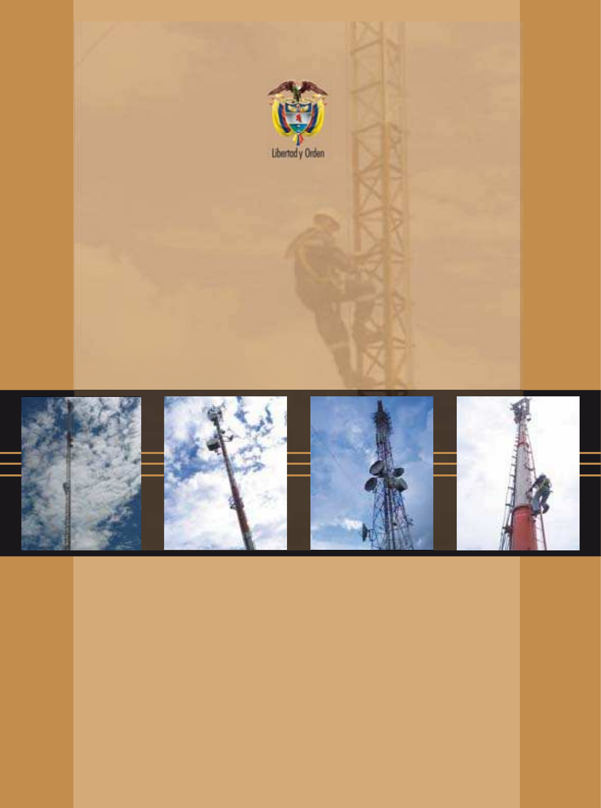 Ministerio de la Protección Social República de Colombia GUÍA DE TRABAJO SEGURO EN TORRES DE TELECOMUNICACIONES Guía de trabajo seguro en TORRES DE TELECOMUNICACIONES Ministerio de la Protección Social República de Colombia Guía de trabajo seguro en TORRES DE TELECOMUNICACIONES j gj g Ministerio de la Protección SocialMinisterio de la Protección Social República de ColombiaRepública de Colombia ISBN Guía de Trabajo Seguro en Torres de Telecomunicaciones Autor institucional Ministerio de la Protección Social Comisión Nacional de Salud Ocupacional Sector Telecomunicaciones Asesoría técnica Ingeniero Mario Fernando Ospina González Organización Integral Protección y Seguridad (OIPS) Médica Ana María Gutiérrez Strauss Asesora ARP Liberty Fotos Ingeniero Mario Fernando Ospina González Organización Integral Protección y Seguridad (OIPS) DIEGO PALACIO BETANCOURT Ministro de la Protección Social CARLOS JORGE RODRÍGUEZ RESTREPO Viceministro Técnico BLANCA ELVIRA CAJIGAS DE ACOSTA Viceministra de Salud y Bienestar ANDRÉS FERNANDO PALACIO CHAVERRA Viceministro de Relaciones Laborales ROSA MARÍA LABORDE CALDERÓN Secretaria General ANA MARÍA CABRERA VIDELA Directora General de Riesgos Profesionales Ministerio de la Protección Social República de Colombia PROFESIONALES QUE PARTICIPARON EN LA VALIDACIÓN DE LA GUÍA DE TRABAJO SEGURO EN TORRES DE TELECOMUNICACIONES Fernando Forero Navarrete Coordinador Salud Ocupacional Empresa de Telecomunicaciones de Bogotá Sandra Rocío Criollo Hernández Analista de Prevención ARP Liberty Juan Ricardo Mancera Ruiz Ingeniero Asesor José Benito González Beltrán Ingeniero Asesor Pedro Leonardo Guerra Rivera Ingeniero Asesor Edilson Ferney Méndez Giraldo Ingeniero Asesor Julio Ricardo Patarroyo Montejo Ingeniero Asesor Hevert Sáenz Parra Ingeniero Atelca Carlos Mario Montoya Galvis Coordinador Salud Ocupacional UNE Telecomunicaciones Iván Alberto Rueda Baquero Técnico Telecomunicaciones Universidad Distrital Gloria María Maldonado Ramírez Coordinadora Grupo de Medicina Laboral Dirección General Riesgos Profesionales 9 AGRADECIMIENTOS La Dirección General de Riesgos Profesionales y la Comisión Nacional de Salud Ocupacional del Sector Telecomunicaciones agradecen especialmente al ingeniero Mario Fernando Ospina González, persona competente y califi cada por OSHA, que brindó todo su aporte profesional y técnico para la elaboración de la presente guía. 11 CONTENIDO PRESENTACIÓN ........................................................................................................................... 13 PRÓLOGO .................................................................................................................................... 15 INTRODUCCIÓN ........................................................................................................................... 17 CAPÍTULO PRIMERO TRABAJOS Y TIPOS DE TORRES DE TELECOMUNICACIONES .................................................. 21 1. FASES DEL TRABAJO EN TORRES ........................................................................................ 21 1.1. Montaje de las torres .......................................................................................................... 21 1.2. Instalación de equipos ........................................................................................................ 23 1.3. Mantenimiento de los equipos y la torre ............................................................................. 24 2. TIPOS DE TORRES .................................................................................................................. 25 2.1. Torres autosoportadas ......................................................................................................... 25 2.2. Torres riendadas .................................................................................................................. 26 2.3. Torres móviles ..................................................................................................................... 27 CAPÍTULO SEGUNDO SISTEMAS DE SEGURIDAD EN TORRES DE TELECOMUNICACIONES ...................................... 31 1. LÍNEAS DE VIDA VERTICALES EN TORRES .......................................................................... 31 Limitaciones de la línea de vida vertical ..................................................................................... 32 Compatibilidad ............................................................................................................................ 32 Características adicionales ........................................................................................................ 33 Recomendaciones ...................................................................................................................... 34 2. SISTEMAS DE RIEL .................................................................................................................. 34 Recomendaciones ...................................................................................................................... 35 3. PLATAFORMAS ........................................................................................................................ 35 4. SEGURIDAD EN EL TRÁNSITO HORIZONTAL ....................................................................... 36 CAPÍTULO TERCERO ANÁLISIS DE PELIGROS EN TORRES DE TELECOMUNICACIONES .................................... 39 1. CONDICIONES DE LA ESTRUCTURA ..................................................................................... 39 2. CONDICIONES AMBIENTALES ADVERSAS ........................................................................... 41 Ubicación geográfi ca de la torre ................................................................................................. 41 Presencia de animales en la torre ....................................................................