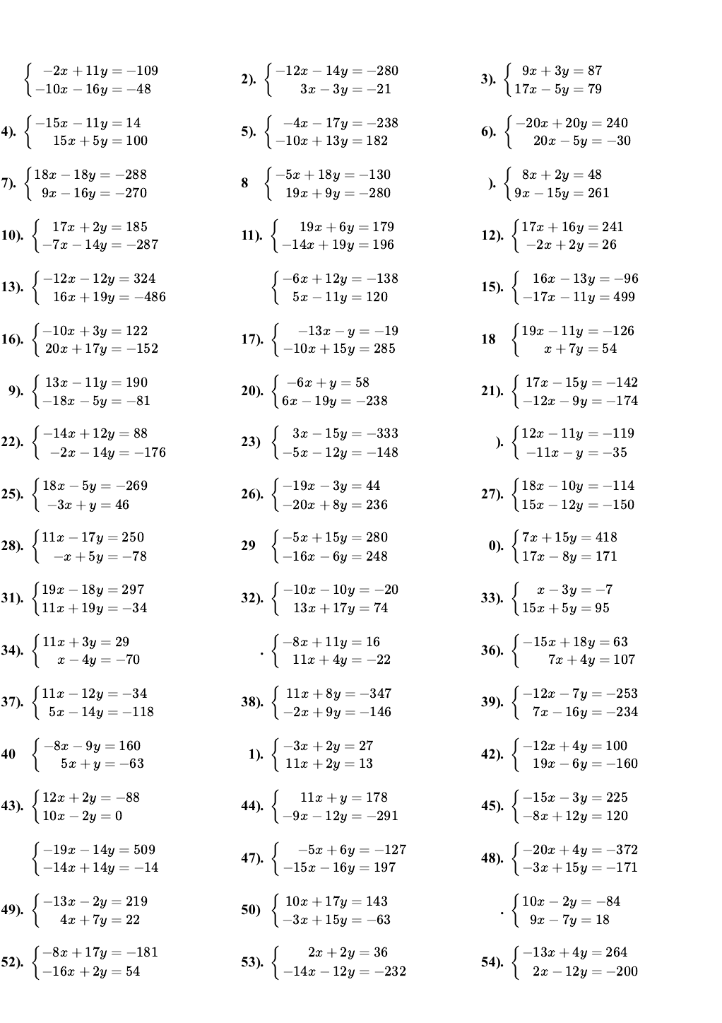 Hallar el valor de las incógnitas en cada una de los siguientes sistemas de ecuaciones: