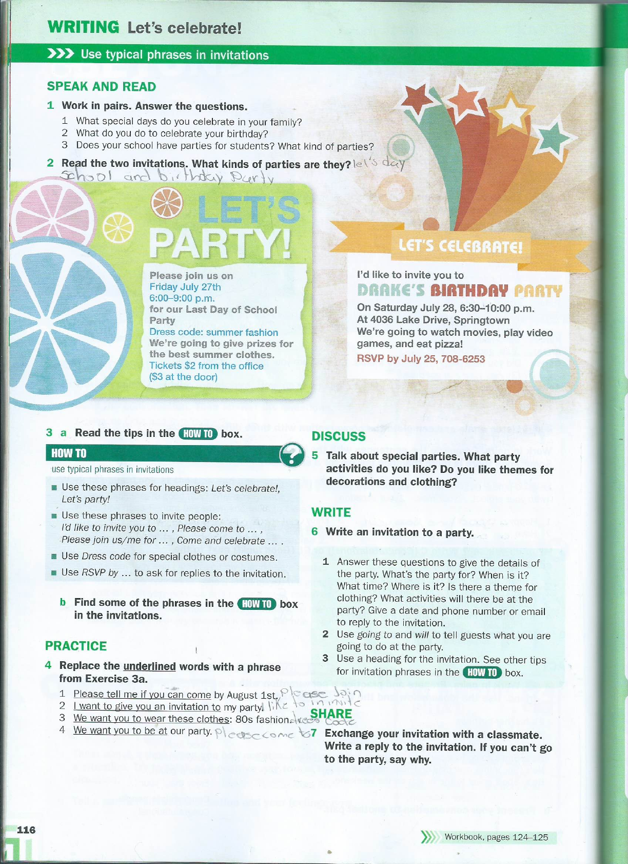 ACTIVITY 20 WRITING LET'S CELEBRATE