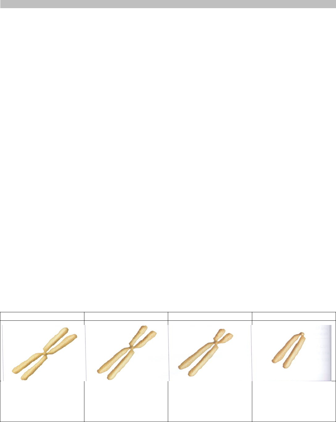 Cromosomas y cariotipo Los cromosomas constituyen el mayor grado de: · Compactación del ADN. Los cromosomas son estructuras celulares que se componen de: · ADN y proteínas. Los cromosomas se encargan de: · Transmitir el material genético de una célula a otra. En organismos eucariontes los cromosomas presentan las siguientes estructuras: · Cromátida · Telómeros · Centrómeros Cromátida · Moléculas de ADN que conforman una estructura longitudinal. Antes de la división celular, el material genético se duplica y los cromosomas quedan constituidos por: · Dos cromátidas hermanas cuya información es idéntica. Telómeros · Extremos de los cromosomas. Función telómeros: · Cumplen funciones relacionadas con la estabilidad estructural de los cromosomas y la división celular. Centrómeros · Constricción del cromosoma. En el centrómero se encuentra el: · Cinetocoro, estructura proteica que posibilita la separación de las cromátidas hermanas durante la división celular. El centrómero divide cada cromátida en: · Un brazo corto y en un brazo largo. Clasificación cromosomas de acuerdo a la ubicación de su centrómero y a la longitud de sus brazos: Metacéntrico Submetacéntrico Acrocéntrico Telocéntrico En centrómero se localiza en la mitad del cromosoma y los brazos presentan igual longitud En centrómero se ubica levemente hacia uno de los extremos. La longitud de un brazo del cromosoma es algo mayor que la del otro. El centrómero se sitúa muy cercano a un extremo, por lo que un brazo es muy corto y el otro largo En centrómero se encuentra en el extremo. Por lo tanto, se visualiza solo un brazo del cromosoma Cariotipo humano En las células somáticas de los seres humanos, hay dos copias de cada cromosoma, pues uno proviene de: · La madre y el otro del padre. A este tipo de células se les denomina: · Diploides Célula diploide: · Células que presentan dos juegos de cromosomas, dispuestos en pares homólogos Ejemplo de célula diploide: · Todas las células del cuerpo excepto los gametos El símbolo utilizado para identificar las células diploides es: · 2n cromosomas (n significa número de cromosomas haploide de la especie) En el caso de los humanos las células diploides se simbolizan como: · 2n = 46 Por otro lado, las células sexuales o gametos poseen la mitad de los cromosomas de la especie, es decir, un solo cromosoma de cada tipo, por lo que se denomina: · Haploides y se simbolizan como n. Ejemplo de Célula haploide: · Los gametos (espermatozoides y óvulo) En el caso de los humanos las células haploides se simbolizan como: · n= 23 Los avances en el campo de la biología celular han permitido describir los cromosomas y organizarlos en pares de acuerdo a características comunes, como su forma, su tamaño y la presencia de genes. A estos cromosomas se les denomina: · Homólogos. El cariotipo es una técnica que permite: · Ordenar a los cromosomas según morfología y tamaño, de una especie determinada. Se ordenan de pares (homólogos), primero los autosomales y al final los sexuales En un cariotipo se pueden distinguir dos tipos de cromosomas: · Cromosomas sexuales o heterocromosomas · Cromosomas autosómicos o autosomas Cromosomas sexuales o heterocromosomas son aquellos que contienen: · La información para determinar el sexo del individuo. Hay dos tipos de cromosomas sexuales: · El cromosoma X y el cromosoma Y. Cromosomas autosómicos o autosomas son: · Todos los cromosomas no sexuales. · Estos presentan información para las mismas características en ambos sexos. El cariotipo de las células somáticas del ser humano está conformado por un total de: · 46 cromosomas organizados en 23 pares homólogos. De estos, 22 pares son autosomas y 1 par corresponde a: · heterocromosomas. Las mujeres son homogaméticas, es decir: · Portan dos cromosomas X (XX) Mientras que los hombres son heterogaméticos, pues poseen: · Un cromosoma X y un cromosoma Y (XY) El cromosoma N° 23 es el que determinará: · El sexo del feto: Etapas del ciclo celular El ciclo celular es el período que: Va desde el principio de una división hasta el inicio de la siguiente Etapas del ciclo celular: · Interface · División celular. En la Interfase la célula se prepara para su posterior división, por lo que: · Aumenta su volumen, sintetiza proteínas y nuevos organelos, y también duplica su material genético. La división celular o fase M se compone de dos etapas: · Mitosis · Citocinesis La duración del ciclo celular depende principalmente del tipo de célula, pero también de factores ambientales, como: · La temperatura y la disponibilidad de nutrientes. LA INTERFASE se subdivide en 3 etapas: Característica G1 Periodo de crecimiento y diferenciación de las células La célula debe aumentar su tamaño y prepararse para la división o replicación de su ADN si es necesario. Dependiendo de la célula, estas se pueden diferenciar y entran a la fase G0; o continúan con las etapas siguientes del ciclo S Síntesis de ADN. Los cromosomas se duplican Las células duplican su material genético (ADN) y disminuyen su actividad celular. G2 Fase de crecimiento y corrección de errores Los cromosomas duplicados comienzan a condensarse, se duplican los centriolos y se sintetizan proteínas que participarán en la formación del huso mitótico. Hacia el final de la G1, la célula tiene que estar lo suficientemente saludable como para: · Copiar su ADN. Si la célula está libre de daños y existen suficientes recursos para que la célula siga creciendo y dividiéndose, las señales de crecimiento la estimularán a que continúe con: · La fase S. De lo contrario, la célula tiene dos posibilidades: · Muere (apoptosis) o entra en etapa de reposo, también llamada fase G0 (cero) Apoptosis: · “Suicidio” o muerte celular (programada), es cuando la célula detecta un error en ella y decide “morir” Hacia el final de la fase G1, una célula puede “abandon