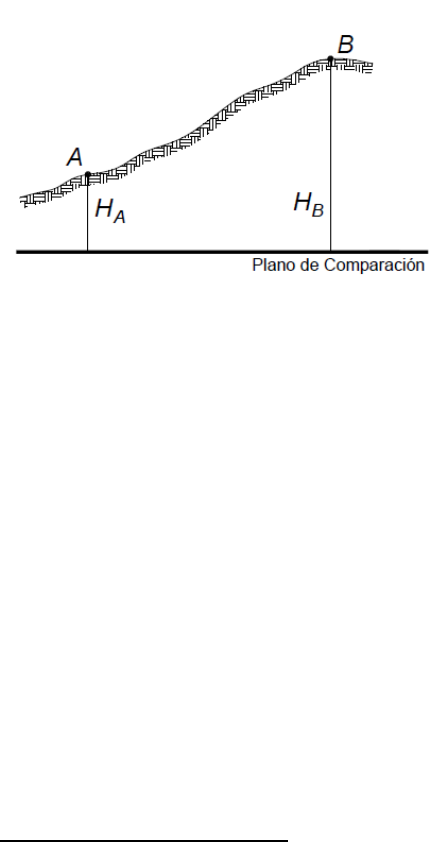 ALTIMETRIA Definiciones y Conceptos Básicos La Altimetría es la parte de la Topografía que estudia los métodos e instrumentos para determinar la altura de los puntos de la superficie terrestre sobre un plano horizontal de comparación. Se define como altura de un punto a la distancia vertical medida desde el punto hasta el plano horizontal de referencia o plano de comparación. En la figura, si se consideran los puntos A y B del terreno, sus alturas, referidas al plano de comparación serán entonces las distancias HA y HB indicadas. El plano de comparación puede tratarse de un plano que se ha considerado, de una altura fija y determinada, la cual puede ser arbitraria, en cuyo caso se hablará simplemente de altura. Si ese plano de comparación es el nivel del mar1, es decir el nivel medio de las aguas del mar en reposo, se hablará de altura absoluta2. Se define como desnivel entre dos puntos del terreno, a la diferencia de las alturas entre esos dos puntos. La expresión matemática de esta definición es: Donde HA y HB son las alturas de los puntos y h es el desnivel, como se ve en la figura 1 La determinación del nivel medio de las aguas del mar en reposo es una tarea de gran complejidad que trasciende los alcances de esta materia. 2 La altura absoluta se utiliza en grandes obras de infraestructura, tales como caminos, autopistas, aeropuertos, diques, canales, gasoductos, etc. Los métodos y las operaciones de la Altimetría destinados a determinar alturas y desniveles reciben el nombre genérico de nivelación. La clasificación de los métodos de nivelación en la topografía clásica se establece de acuerdo al instrumental utilizado a tal fin. Asi se tienen: Nivelación Geométrica: Se realiza mediante el Nivel de Anteojo. Es la de mayor precisión y de mayor uso, casi de carácter exclusivo en la construcción de arquitectura. Su estudio se hará seguidamente con el detalle que se requiere para su aplicación práctica. Nivelación Trigonométrica: Consiste básicamente en la medición de ángulos verticales con Teodolito, y otras magnitudes lineales que permiten obtener el desnivel por cálculos trigonométricos, de allí el nombre. Nivelación Barométrica: Consiste en obtener las diferencias de altura midiendo la presión atmosférica en los puntos cuya altura se quiere determinar con un Barómetro y luego aplicando la correlación entre dicha presión y altura de los puntos, que en definitiva permite conocer el valor de la altura. 3 Hay además otros tipos de niveles que se han ido incorporando a lo largo del tiempo. Tal es el caso de los niveles laser, con distintos tipos de prestaciones para generar los horizontes instrumentales que se requiera, tanto en pequeños trabajos interiores, como en obras importantes y en exteriores. Estos niveles son utilizados principalmente en la fase de la ejecución de obras. Más recientemente aparecieron los niveles digitales, donde los registros son hechos a través de una mira graduada con “códigos de barra” que automatizan la lectura y guardan los datos para poder hacer luego un post proceso de la información obtenida, con enormes ventajas sobre los niveles convencionales. Actualmente hay que agregar también la posibilidad de medir alturas mediante GPS, pero sabiendo que existe una gran variedad de equipos y precisiones, que pueden dar la altura de un punto al milímetro, en casos de GPS de alta precisión, como ± 20 m como en los equipos GPS de mano o de teléfonos móviles. Como mínimo, quien pretenda hacer estas determinaciones debe 3 Los barómetros se utilizan tanto en aviación como en deportes como el treking y el montañismo. Suelen estar presentes en algunos equipos GPS de mano utilizado para los mismos fines. Las precisiones suelen estar en el orden de ± 1 ó 2 metros. tener muy claro este aspecto, y por supuesto, informarse antes de las prestaciones del equipo que esté por utilizar. LA NIVELACIÓN GEOMÉTRICA Como ya se dijo, el objeto de la nivelación es medir el desnivel entre dos puntos. La nivelación geométrica se basa en el “principio fundamental de la nivelación geométrica” que se explica a continuación. Para poder obtener el desnivel h se establece primero un plano horizontal por encima del terreno, que se llamará horizonte instrumental, por tratarse de un plano horizontal que ha sido generado artificialmente. También se llamará plano visual cuando se genere por medio de un instrumento topográfico. Establecido ese plano horizontal, si se miden las distancias r y a lo cual es perfectamente posible y sencillo, resulta evidente que el desnivel es justamente la diferencia entre esas medidas, y plantear una ecuación muy sencilla que relaciona las alturas de los puntos, el desnivel, y las medidas tomadas para determinarlo: que es la expresión matemática del principio fundamental de la nivelación geométrica. En las obras pequeñas, los albañiles utilizan exactamente este principio. Lo que hacen es utilizar lo que ellos llaman “una manguera de nivel” que consiste simplemente en una manguera de plástico transparente llena de agua. Por el principio de vasos comunicantes, en la cercanía de los extremos de la manguera se observarán sendos meniscos que se situarán a la misma altura y generarán el plano de comparación. Esto tan simple, y bien conocido por la gente de la construcción les permite medir y replantear desniveles y alturas para construir la obra. Este método adolece de varios problemas: las distancias entre los puntos es muy limitada, la precisión no suele ser suficiente en muchísimas aplicaciones y la posibilidad de cometer errores es muy grande. Lo que se hace tanto en obras pequeñas como de gran magnitud, es utilizar el Nivel de Anteojo para producir el horizonte instrumental o plano visual y una regla graduada especial para este trabajo que se denomina mira de nivelación. En definitiva, para medir el desnivel entre dos puntos del terreno se colocará convenientemente
