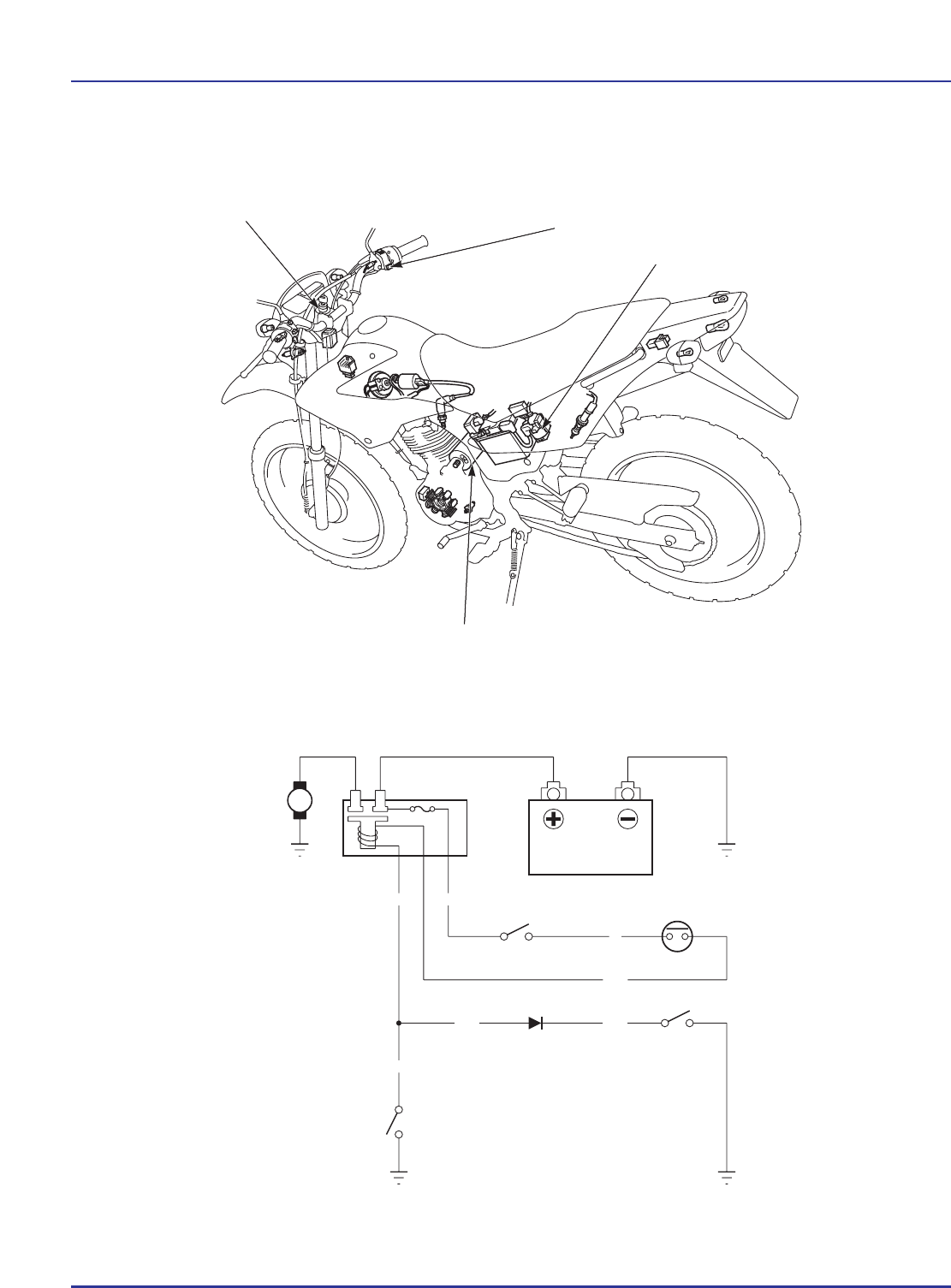 16-0 Y/R R Bl G/R Bl Lg/RG/R 15A M ARRANQUE ELECTRICO (Tipo ES) NXR125 BROS KS•ES INTERRUPTOR DE ENCENDIDO INTERRUPTOR DE ENCENDIDO INTERRUPTOR DE ARRANQUE INTERRUPTOR DE ARRANQUE INTERRUPTOR DEL PONTO MUERTO INTERRUPTOR DEL EMBRAGUE MOTOR DE ARRANQUE MOTOR DE ARRANQUE RELE DE ARRANQUE INTERRUPTOR DEL RELE DE ARRANQUE BATERIA 12V-4AH DIAGRAMA DEL SISTEMA Bl: Negro Y: Amarillo G: Verde R: Rojo W: Blanco Lg: Verde Claro 16. ARRANQUE ELECTRICO (TIPO ES) DIAGRAMA DEL SISTEMA 16-0 INFORMACIONES DE SERVICIO 16-1 INVESTIGACION DE AVERIAS 16-2 MOTOR DE ARRANQUE 16-4 INTERRUPTOR DEL RELE DE ARRANQUE 16-11 DIODO DA EMBREAGEM 16-12 INFORMACIONES DE SERVICIO GENERAL • El motor de arranque se puede quitar con el motor de la motocicleta instalado en el chasis. • Para el desmontaje/instalación de los engranajes mandado y de mando del motor de arranque, remítase al capítulo 10. • Remítase al capítulo 17 con respecto a la inspección de los interruptores de arranque y de encendido. • Una batería descargada puede ser incapaz de accionar el motor de arranque con rapidez suficiente, o de suministrar la cantidad de corriente necesaria al sistema de encendido. • El motor de arranque se puede dañar en caso de que el flujo de corriente se mantenga a través de éste mientras el motor no esté siendo accionado. ESPECIFICACIONES Unidade: mm 16-1 NXR125 BROS KS•ES 16 Ítem Especificaciones Límite de Servicio Largo de las escobillas del motor de arranque 7,0 3,5 ARRANQUE ELECTRICO (Tipo ES) 16-2 INVESTIGACION DE AVERIAS No se acciona el motor de arranque • Antes de comenzar los servicios, verifique si los fusibles no están quemados. • Asegúrese de que la batería esté totalmente cargada y en buen estado. NXR125 BROS KS•ES Inspeccione el funcionamiento del interruptor del relé de arranque. Cuando se presiona el interruptor, debe escucharse un sonido característico (de “clic”). Sin tensión Normal Normal Anormal • Interruptor de encendido con defecto • Interruptor del arranque con defecto • Fusible quemado • Contacto del conector suelto o inadecuado • Circuito interrumpido en el cableado eléctrico Anormal • Contacto del conector suelto o inadecuado • Circuito interrumpido en el cableado eléctrico • Interruptor del punto muerto con defecto • Interruptor del embrague con defecto Sin ruido Desenchufe el conector del interruptor del relé de arranque y verifique las líneas de tierra de la bobina del relé, de acuerdo con lo descrito abajo, con respecto a continuidad. • Terminal Verde/Rojo – diodo del interruptor del embrague – línea del interruptor del punto muerto (con la transmisión en punto muerto y la palanca del embrague suelta) Enchufe el conector del interruptor del relé de arranque. Con el interruptor de encendido accionado y el interruptor de arranque presionado, mida la tensión del relé de arranque en el conector del interruptor de arranque (entre el cable Amarillo/ Rojo (+) y el tierra (–). Normal Se indica la tensión de la batería • Contacto del conector del interruptor del relé de arranque suelto o inadecuado Anormal • Interruptor del relé de arranque con defecto Verifique el funcionamiento del interruptor del relé de arranque. Ruido Aplique la tensión de la batería directamente al motor de arranque y verifique su funcionamiento. • Motor de arranque con defecto • Cable del motor de arranque conectado incorrectamente • Interruptor del relé de arranque con defecto (pág. 16-11) ARRANQUE ELECTRICO (Tipo ES) 16-3 El motor de arranque gira muy despacio • Batería con baja tensión • Contacto inadecuado del cable del terminal de la batería • Contacto inadecuado del cable del motor de arranque • Motor de arranque con defecto • Contacto inadecuado del cable tierra de la batería El motor de arranque gira, pero el motor de la motocicleta no • El motor de arranque está funcionando invertido – Carcasa montada incorrectamente – Terminales conectados de forma incorrecta • Engranaje de arranque con defecto • Engranaje de mando del arranque con defecto o dañado El interruptor del relé de arranque emite un ruido característico (de "clic"), pero el motor no gira • El cigüeñal no gira debido a problemas en el motor. NXR125 BROS KS•ES ARRANQUE ELECTRICO (Tipo ES) 16-4 MOTOR DE ARRANQUE DESMONTAJE d Quite la capa de goma. Con el interruptor de encendido desactivado, quite el cable negativo de la batería antes de comenzar los servicios en el motor de arranque. CAPA DE GOMA DESMONTAJE NOTA Quite los pernos, las placas de fijación y los anillos tóricos. Quite la tapa frontal. Anote la posición y el número de calces y arandelas. TAPA FRONTAL PERNOS/PLACAS/ANILLOS TORICOS Quite la arandela de traba y las arandelas de apoyo. ARANDELA DE TRABA ARANDELAS DE APOYO Quite la tuerca del cable del motor de arranque. Quite los pernos y el cable tierra. PERNOS TUERCA CABLE TIERRA NXR125 BROS KS•ES ARRANQUE ELECTRICO (Tipo ES) 16-5 Quite la tapa trasera. Quite las arandelas de apoyo. Quite los anillos tóricos. ARANDELAS DE APOYO ANILLO TORICO TAPA TRASERA Quite la tuerca del terminal. Quite la arandela, los aisladores y el anillo tórico. Quite el conjunto del portaescobillas. CONJUNTO DEL PORTAESCOBILLAS TUERCA/ARANDELA/AISLADORES/ANILLO TORICO DESARMADO DEL PORTAESCOBILLAS Quite las escobillas y sus resortes. RESORTES ESCOBILLAS Quite el inducido. INDUCIDO NXR125 BROS KS•ES ARRANQUE ELECTRICO (Tipo ES) 16-6 INSPECCION Mida el largo de cada escobilla. Límite de Servicio 3,5 mm Verifique si hay continuidad entre el terminal del motor de arranque y su carcasa. No debe haber continuidad. TAPA TRASERA TERMINAL Inspeccione el colector con respecto a daños o a desgaste anormal. Si es necesario, reemplace el inducido por otro nuevo. Inspeccione con respecto a presencia de partículas metálicas entre las barras del colector. Limpie las partículas metálicas existentes entre las barras del colector. NOTA No utilice lija