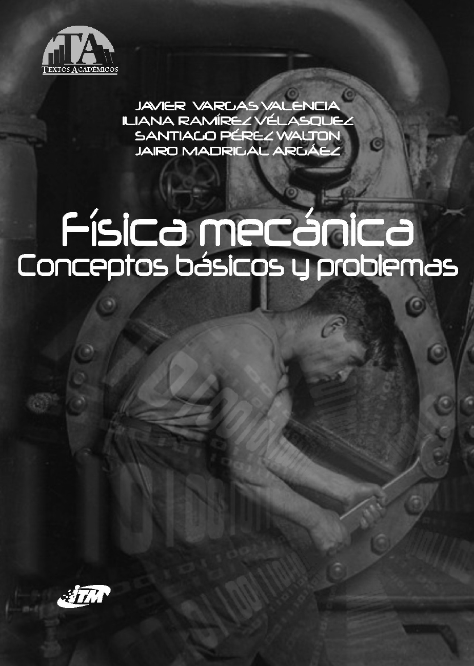 FÍSICA MECÁNICA CONCEPTOS BÁSICOS Y PROBLEMAS JAVIER VARGAS VALENCIA ILIANA RAMÍREZ VELÁSQUEZ SANTIAGO PÉREZ WALTON JAIRO MADRIGAL ARGÁEZ InstItuto tecnológIco MetropolItano Institución universitaria FísIca MecánIca. conceptos básIcos y probleMas © Javier Vargas Valencia © Iliana ramírez Velásquez © santiago pérez Walton © Jairo Madrigal argáez © Instituto tecnológico Metropolitano 1a. edición: diciembre de 2008 Isbn: 978-958-8351-47-6 Dirección editorial Fondo editorial ItM corrección de textos lucía Inés Valencia Diagramación y montaje l. Vieco e Hijas ltda. Impreso y hecho en Medellín, colombia Las opiniones, originalidad y citaciones del texto son responsabilidad del autor. El Instituto salva cualquier obligación derivada del libro que se publica. Por lo tanto, ella recaerá única y exclusivamente en el autor. Instituto tecnológico Metropolitano calle 73 no. 76a 354 tel.: (574) 440 51 00 Fax: 440 51 01 www.itm.edu.co Medellín - colombia CONTENIDO capítulo 1: MeDIcIones ............................................................................. 11 Introducción .................................................................................................. 11 conceptos de medida y magnitud ................................................................. 12 teoría de errores............................................................................................ 13 propagación de errores .................................................................................. 15 unidades básicas: longitud, masa y tiempo .................................................. 17 sistema internacional de unidades ................................................................ 18 unidades derivadas o compuestas ................................................................ 19 equivalencia de unidades .............................................................................. 20 otras unidades de longitud .......................................................................... 21 análisis dimensional ..................................................................................... 21 prefijos del sistema de unidades y notación científica .................................. 23 notación científica ........................................................................................ 25 reglas para el redondeo de números y cifras significativas ......................... 30 cifras significativas ..................................................................................... 32 operaciones con cifras significativas ............................................................ 34 Instrumentos de medida ................................................................................ 35 capítulo 2: escalares y Vectores .......................................................... 41 Introducción .................................................................................................. 41 nociones básicas ........................................................................................... 41 Vectores unitarios .......................................................................................... 46 operaciones ................................................................................................... 46 suma de vectores .......................................................................................... 49 suma gráfica ................................................................................................. 49 componentes vectoriales .............................................................................. 51 suma analítica ............................................................................................... 54 producto punto o producto escalar entre vectores. ....................................... 59 producto vectorial o producto cruz .............................................................. 60 � capítulo 3: cIneMátIca ............................................................................. 65 Introducción .................................................................................................. 65 Movimiento en una dimensión ...................................................................... 66 Velocidad ....................................................................................................... 67 aceleración ................................................................................................... 75 Movimiento unidimensional con aceleración constante ............................... 80 Movimiento rectilíneo uniforme ................................................................... 81 caída libre ..................................................................................................... 84 Movimiento en dos dimensiones .................................................................. 87 Movimiento bidimensional con aceleración constante ................................. 91 Movimiento parabólico ................................................................................. 92 Movimiento circular ...................................................................................... 97 Velocidad angular ........................................................................................ 100 aceleración angular constante .................................................................... 101 capítulo 4: DInáMIca .............................................................................. 109 Introducción ................................................................................................ 109 primera ley de newton .............................................................................. 110 sistemas de referencia inerciales ............................................................... 112 concepto de masa .....................................................................................