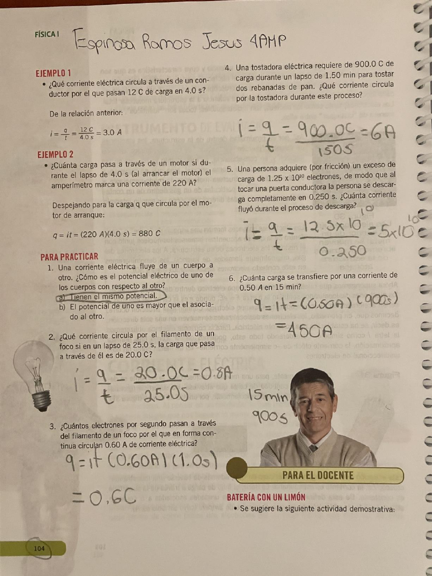 = CBTIS 103 = (Francisco Javier Mina) PROGRAMACIÓN “FÍSICA 1” EQUIPO: Espinosa Ramos Jesús Leon Gallardo Jorge Adrian Castillo Gomez Jaziely Anali Reveles Reyes Hugo Alberto Granados Ramirez Arturo JUAN CARLOS ARIAS LÓPEZPROFESOR: GRADO Y GRUPO: 4°AMP PRACTICAS DE PETH SEMANA NO.7 MATERIAL Y EQUIPO PARA LA REALIZACION DE LAS PRÁCTICAS SIMULADOR PhET Por sus siglas en ingles PhET (PhET Interactive Simulations) es un conjunto de simulaciones interactivas sobre física. Fue un proyecto de la Universidad de Colorado de Boulder, el cual es una asociación sin fines de lucro, el cual fue desarrollado en inglés, pero gran parte de las simulaciones están disponibles en varios idiomas, entre ellos el español. Este es un proyecto abierto para recursos educativos (REA) que tuvo su fundación en el año 2002 por el premio Nobel Carl Wieman PhET. La idea principal de Wieman era el crear una manera de hacer ciencia, enseñar y aprender al mismo tiempo. Declaraba que su misión era la de “Avanzar en la ciencia y alfabetización matemática, así como también impactar en la educación del mundo, mediante simulaciones interactivas. ¿Para qué sirve? Este proyecto se encarga ahora de diseñar, desarrollar y liberar más de 125 simulaciones gratuitas de código abierto, que además son interactivas para el usuario. Este paquete de simulaciones se compone de las ramas de física, química, biología, matemáticas, ciencias de la tierra, entre otras. Si de idiomas hablamos entonces podrás educarte con los 65 idiomas que posee hasta el momento incluyendo español, alemán, inglés, árabe, chino entre otros. Se estima que el proyecto Phet ha sido usado por 25 millones de personas, según las estadísticas de descarga de su sitio web. CONTENIDOS “PRACTICAS PETH SEMANA 7” DESCRIPCIÓN PRACTICA PETH CIRCUITOS RESISTIVOS PRACTICA PETH DE RESISTENCIA PRACTICA PETH LEY DE OHM CONCLUSIONES DE LAS PRÁCTICAS CONTENIDO DE CADA PRÁCTICA: INTRODUCCIÓN AL TEMA CARACTERISTICAS (DEL TEMA) INFORMACIÓN TEORICA EVIDENCIAS DE REALIZACIÓN DE PRACTICAS PRACTICA CIRCUITOS RESISTIVOS INTRODUCCIÓN AL TEMA Definición de corriente Son cargas en movimiento. Los conductores eléctricos tienen electrones móviles capaces de moverse en respuesta a las fuerzas eléctricas. Carga: Es una propiedad de la materia. Puede ser positiva o negativa. La magnitud de la carga de un electrón es la menor carga posible. Esto es igual a: e=-1,602x 10 -19 Coulomb (C) Análisis de circuitos eléctricos Pasaremos a conocer distintos métodos de análisis de circuitos eléctricos, antes deberemos de reconocer distintos elementos y recorridos dentro de los circuitos. Elementos básicos de los circuitos eléctricos: Nodo: Se llama nodo a todo punto de un circuito donde confluyen más de dos conductores. Rama: Se llama así a cada parte de un circuito que une dos nodos consecutivos. Malla: Es todo recorrido cerrado que pueda seguirse en un circuito sin pasar 2 veces por un mismo nodo. Comportamiento de las resistencias en circuitos en serie Todo circuito en serie que contenga varias resistencias, puede convertirse en un circuito que contenga solo una resistencia. Esto es conocido como resistencia equivalente. Su valor será igual a la suma de todas las resistencias. CARACTERISTICAS DE LOS CIRCUITOS Clasificación: Los circuitos eléctricos se clasifican así: Elementos de un circuito: Componente: un dispositivo con dos o más terminales en el que puede fluir interiormente una carga. En la figura 1 se ven 9 componentes entre resistores y fuentes. Nodo: punto de un circuito donde concurren más de dos conductores. A, B, C, D, E son nodos. C no se considera un nuevo nodo, porque se puede considerar el mismo nodo que A, ya que entre ellos no existe diferencia de potencial o tener tensión 0 (VA - VC = 0). Rama: porción del circuito comprendida entre dos nodos consecutivos. En la figura 1 hay siete ramales: AB por la fuente, BC por R1, AD, AE, BD, BE y DE. Obviamente, por un ramal solo puede circular una corriente. Malla: cualquier camino cerrado en un circuito eléctrico. Fuente: componente que se encarga de proporcionar energía eléctrica al circuito entero. En el circuito de la figura 1 hay tres fuentes: una de intensidad, I, y dos de tensión, E1 y E2. Conductor: es un objeto de material que permite el libre flujo de corriente,-sin resistencia-, haciendo contacto entre dos o más componentes electrónicos. INFORMACIÓN TEORICA Ley de Ohm En un circuito eléctrico, el voltaje, la corriente y las resistencias están siempre en perfecto balance. Por ejemplo, en un circuito con resistencias fijas, aumentar el voltaje resultará en un incremento de corriente eléctrica. Asimismo, incrementar la resistencia en un circuito con tensión fija resultará en un decrecimiento de la corriente eléctrica. Esta relación es conocida como la ley de Ohm, nombrada así en el siglo 19 en honor al físico George Simon Ohm. La Ley de Ohm es la ley fundamental en los circuitos eléctricos. Determina cómo se comporta la electricidad en un circuito eléctrico. La ley de Ohm se representa con las siguientes fórmulas matemáticas. Leyes de Kirchoff Existen dos leyes de Kirchoff, una aplicada a la corriente y la otra a la tensión. La ley de corrientes de Kirchoff la podremos denominar con las siglas LKC (ley de Kirchoff para la corriente) y la ley correspondiente a la tensión LVK (ley de voltaje de voltaje de Kirchoff) LKC: “En todo nodo, la suma algebraica de las corrientes, es igual a cero”. LVK: “En toda malla la suma algebraica de las tensiones y las caídas de tensión es igual a cero”. Continuamos con un ejemplo de la implementación de la ley para las corrientes en un nodo. EVIDENCIA DE REALIZACION DE PRÁCTICA PRACTICA “RESISTENCIA” Introducción Todos los conductores eléctricos se oponen al paso de la corriente eléctrica en mayor o menor medida. Esto es debido a que los portadores de carga (electrones o iones) se encuentran con ci