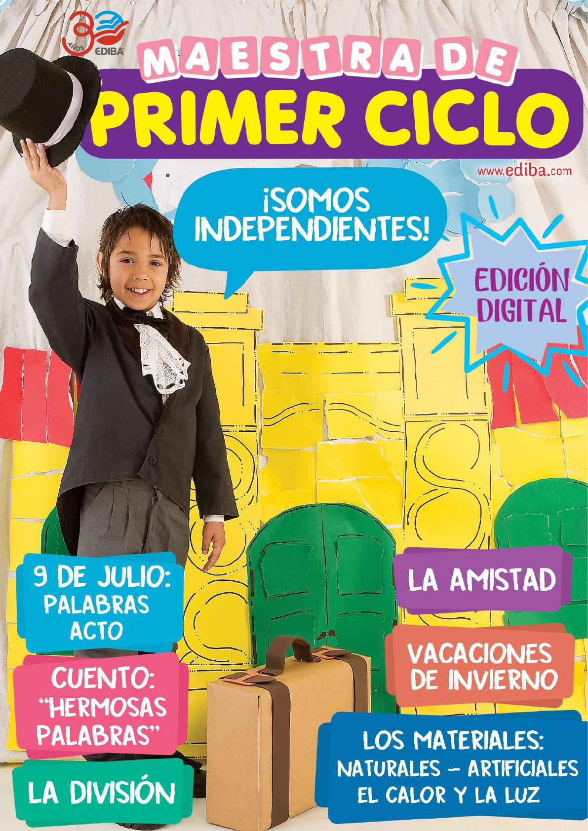 Julio Nº 289 19 (Entran todos l os congresales y se sientan, uno se pone de pie) -Mire, señor Pr esidente, este es un asun to serio. No podemos pe rmitir goberna r a un rey extran jero. (Otro congresa l se para) -Estamos todo s de acuerdo con el señor dip utado. También lo está nuestro pueblo que aquí repre sentamos. (El Presidente se para ) -En el Cabildo l ograron la libertad cons agrar, por eso al mund o diremos: nos podemos g obernar. (Los congresal es con una man o en el pecho) -¡Sí, juramos! (Aparece nuev amente la nena vestida de blan co) -Un "sí" con air e tucumano, un "sí" de aquel los diputados, un "sí" de todo un pueblo que hoy debem os practicarlo. Un "sí" que desd e hace tiempo gritamos al mu ndo entero y hoy lo seguim os gritando, con fuerza, a lo s cuatro viento s. 289_argMPC_9dej ulio.indd 19 22/06/2023 19:43: 43 18 Personajes: - Niña que repre sentará la memo ria de un pueblo. - Personajes de la época colonial . - Señora Bazán d e Laguna. - Congresales. (Aparece en es cena la memori a) -No se sorpren dan al verme, yo me quiero pr esentar: soy la memoria del Pueblo que un poco olv idada está. (La niña recorr e el escenario d e lado a lado) -Hoy yo vengo a visitarlos para que pued an volver a un Congreso importante de mil ocho diec iséis. (Entran en esc ena dos person ajes) -Nuevamente e l rey de España nos quería gob ernar, pero el Pueblo argentino no se dejaría ga nar. (Entran en esc ena personajes , cada uno colo ca una silla en forma de U, así queda arma da la escenogr afía del Congreso. Apa rece en escena la señora Bazá n) -Por eso yo ofr ecí mi casita de Tu cumán, para que allí se reúnan y el problema t ratar. (Aparece en es cena un congre sal, puede tene r un caballito d e juguete o realiz ar uno con una caja) -Estamos todo s marchando camino a Tucum án; de norte, sur, este , oeste congresales lle garán. (Aparece en es cena otro cong resal) -Se hace largo el camino, difícil de transi tar pero la indepen dencia del pueb lo ya no puede es perar más. ACTO: Un pUeb lO qUe reCUerdA 289_argMPC_9dej ulio.indd 18 22/06/2023 21:25: 42 Págs. 4 a 12 Págs. 13 a 16 Págs. 17 a 23 Págs. 24 a 33 Págs. 34 a 46 Págs. 47 y 48 Págs. 54 a 73 Págs. 74 a 85 Págs. 86 y 87 Págs. 49 a 53 Cuento: Hermosas palabras. Actividades fotocopiables ¡Viva la amistad! Cuento: El zorro y el zorrino. Actividades fotocopiables Vacaciones División Los materiales: naturales y artificiales - sólidos - líquidos - gaseosos Los materiales y el calor Los materiales y la luz Actividades fotocopiables de Matemáticas y Prácticas del Lenguaje para primer, segundo y tercer grado Pines Efemérides de julio Calendario mensual. Conocemos las reglas que tenemos que respetar como ciclistas 9 de Julio de 1816: Día de la Independencia Palabras, acto. Actividades fotocopiables JULIO SUMARIO 17 9 de julio de 1816Día de la Independencial 9 de Julio es una fecha que evocamos con alegría y entusiasmo patriótico al traer al presente aquel lejano día en que, en Tucumán, un grupo de representantes de las Provincias Unidas proclamó su firme intención de poner fin a siglos de dominio colonial español. La Declaración de la Independencia fue un hecho colectivo nacido de la inmensa necesidad de ser soberanos. Hombres y mujeres se atrevieron a la idea de hacerse cargo de su destino y proyectar una nueva Nación. Este acontecimiento es parte de un proceso histórico que se forjó desde la defensa de los criollos ante las invasiones inglesas de 1806 y 1807, la Revolución de Mayo con la conformación del Primer Gobierno Patrio y la Asamblea del año XIII que, si bien no declaró la Independencia, dictó numerosas disposiciones trascendentales. Llegado 1816, la situación de los patriotas era muy difícil dentro y fuera del territorio; no faltaban las luchas internas y externas que ponían en peligro nuestra emancipación. La decisión de convocar un congreso fue la unión de voluntades para conseguir propósitos comunes: la Independencia, decidir la forma de gobierno y redactar una Constitución, aunque este último objetivo se demoró . Pasados doscientos siete años del hito que marcó un antes y un después en nuestra historia, ¿valoramos la entrega, el sacrificio y el coraje de quienes forjaron nuestros cimientos como Nación? ¿Nos comprometemos a crecer en independencia y caminar juntos hacia una sociedad más justa y armónica? Seguimos transitando caminos con la idea de que la independencia se construye día a día, trabajando por el bien común, cuidando los recursos, cumpliendo nuestras obligaciones para alentar generaciones futuras que disfruten de sus derechos plenamente.La Patria somos todos y la creamos en cada momento, fortaleciéndola con los valores democráticos que vivenciamos desde hace cuarenta años ininterrumpidos. En un año electoral como el que estamos atravesando, apostemos a la construcción de consensos que nos garanticen unión, transparencia e independencia en todos los ámbitos.Seamos la Nación que, sabemos, podemos ser, honrando la decisión soberana de aquellos hombres y mujeres de 1816 y proyectando un país libre, autónomo e independiente, tal como cada argentino merece. 289_argMPC_9dejulio.indd 17 22/06/2023 19:43:40 PRÓXIMO NÚMERO AGOSTO - EDICIÓN DIGITAL 17 de Agosto: Recordamos al Gral. José de San Martín Las postas Festejamos el Día de la Niñez La receta ¡A cocinar! El dinero Instituciones de la vida social Los comercios en el barrio El soldadito de plomo adaptación de Hans Cristian Andersen 23 ¡YA ESTAMOS BIEN PREPARADOS, PARA NUESTRA GRAN FUNCIÓN!LA ESCUELA ESTRENA SU OBRA “LA INDEPENDENCIA NACIÓ”. LOS ESPERAMOS EL ........ DE JULIO A LAS ........ HORAS, PARA CELEBRAR JUNTOS. ¡NO FALTEN! ¡LOS CHICOS DE PRIMER CICLODE NUESTRO HERMOSO PAÍS CUIDAMOS LA INDEPENDENCIAPOR UN MEJOR PORVENIR! HACE MUCHO TIEMPO ATRÁS, EN UNA CASA GRANDIOSA, INDEPENDIENTE LA PATRIA NACÍA. LOS INVITAMOS A RECORDAR JUNTOS AQUEL 9 DE JULIO DE 