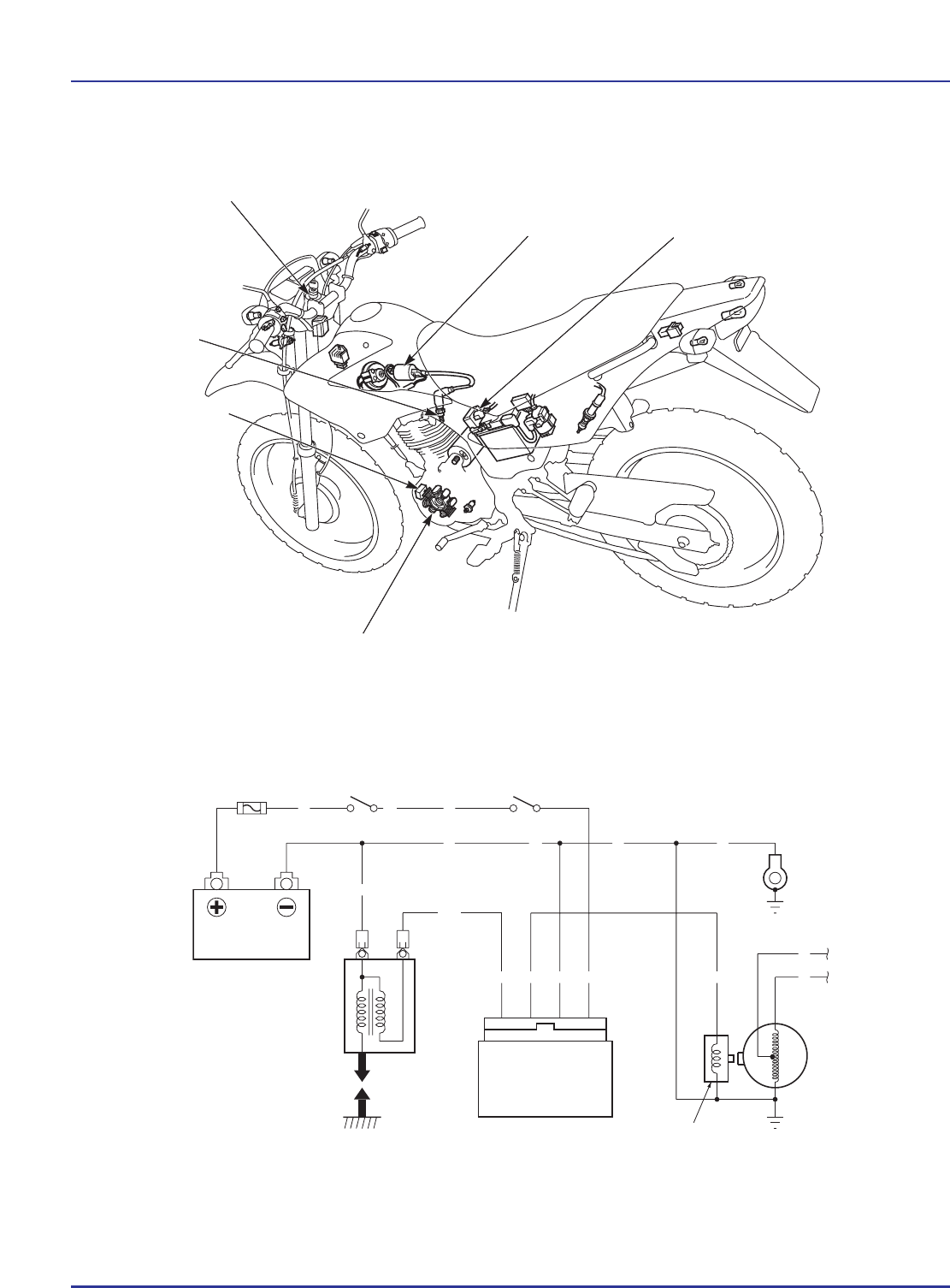 15-0 Bl/Y Bu/Y G Bl/W Bl/Y G Bu/Y W Y G G G R B l DIAGRAMA DEL SISTEMA INTERRUPTOR DE ENCENDIDO MÓDULO DE CONTROL DEL ENCENDIDO (ICM) ALTERNADOR FUSIBLE 15A INTERRUPTOR DE ENCENDIDO INTERRUPTOR DEL MOTOR ALTERNADOR REGULADOR/ RECTIFICADOR BATERÍA 12V-4AH BOBINA DE ENCENDIDO BOBINA DE ENCENDIDO BUJÍA DE ENCENDIDO BUJÍA DE ENCENDIDO GENERADOR DE IMPULSOS DEL ENCENDIDO GENERADOR DE IMPULSOS DEL ENCENDIDO ICM Bl : Negro Bu : Azul R : Rojo Y :Amarillo G : Verde W : Blanco SISTEMA DE ENCENDIDO NXR125 BROS KS•ES 15. SISTEMA DE ENCENDIDO DIAGRAMA DEL SISTEMA 15-0 INFORMACIONES DE SERVICIO 15-1 INVESTIGACION DE AVERIAS 15-3 INSPECCION DEL SISTEMA DE ENCENDIDO 15-4 BOBINA DE ENCENDIDO 15-6 MODULO DE CONTROL DEL ENCENDIDO (ICM) 15-6 PUNTO DE ENCENDIDO 15-6 INFORMACIONES DE SERVICIO GENERAL d i • Al efectuar los servicios en el sistema de encendido, siga siempre los procedimientos descritos en la Investigación de Averías (pág. 15-3) en la secuencia en que se presentan. • Normalmente, no es necesario ajustar el punto de encendido, pues el Módulo de Control del Encendido (ICM) es previamente ajustado en la fábrica. • El Módulo de Control del Encendido (ICM) se puede dañar si se le deja caer. Además de eso, si se desenchufa el conector cuando hay flujo de corriente, el exceso de tensión puede dañar el módulo. Antes de efectuar los servicios, desactive siempre el interruptor de encendido. • Defectos en el sistema de encendido frecuentemente están relacionados con conexiones inadecuadas. Inspeccione las conexiones antes de iniciar los servicios. Asegúrese de que la batería esté totalmente cargada. • Utilice bujías de encendido con el grado térmico correcto. La utilización de bujías de encendido con especificaciones incorrectas puede dañar el motor. ESPECIFICACIONES Algunos componentes eléctricos se pueden dañar en caso de que los terminales o conectores se enchufen o desenchufen cuando el interruptor de encendido esté accionado y cuando hay circulación de corriente eléctrica. En caso de que sea necesario mantener el motor en funcionamiento para efectuar algún servicio, asegúrese de que el local esté bien ventilado. Nunca mantenga el motor funcionando en local cerrado. Los gases del escape contienen monóxido de carbono venenoso que puede causar la pérdida de conocimiento e incluso la muerte. 15-1 NXR125 BROS KS•ES 15 Ítem Especificaciones Bujía de encendido Padrón: NGK DPR8EA-9 Apertura de la bujía de encendido 0,8 – 0,9 mm Tensión de pico de la bobina de encendido 100 V mínimo Tensión de pico del generador de impulsos del encendido 0,7 V mínimo Marca "F" del punto de encendido 15° APMS a 1.500 rpm SISTEMA DE ENCENDIDO 15-2 HERRAMIENTAS: NXR125 BROS KS•ES Probador Imrie (modelo 625) o 07HGJ-0020100 con Probador equivalente disponible Adaptador de la tensión de pico con un multímetro comercialmente disponible (impedancia mínima de 10M Ω / VCC). SISTEMA DE ENCENDIDO 15-3 INVESTIGACION DE AVERIAS • Antes de efectuar el diagnóstico de averías del sistema, inspeccione los siguientes ítems: – Defecto en la bujía de encendido – Capa supresora de ruidos o conexión del cable de la bujía de encendido suelta. – Presencia de agua dentro de la capa supresora de ruidos de la bujía de encendido (fuga de corriente del enrollamiento secundario de la bobina de encendido) • Si no hay chispa en el cilindro, reemplace la bobina de encendido provisoriamente por otra que esté en buen estado y efectúe la prueba de chispa. Si hay chispa, la bobina de encendido original estará con defecto. La bujía de encendido no produce chispas NXR125 BROS KS•ES Condicion anormal Causas Probables (Verifique en el siguiente orden numérico) Tensión del enrollamiento primario de la bobina de encendido Generador de impulsos del encendido Tensión de pico baja Sin la tensión de pico Tensión de pico normal, pero no hay chispa en la bujía Tensión de pico baja Sin la tensión de pico 1. Impedancia del multímetro demasiado baja. 2. La rotación de accionamiento del motor está demasiado baja. • Batería descargada 3. El tiempo de amostraje del probador y el pulso medido no están sincronizados (el sistema estará normal en caso de que por lo menos una de las tensiones medidas sea superior a las especificaciones). 4. Conexiones incorrectas o circuito interrumpido en el sistema de encendido. 5. Bobina de encendido con defecto (mida la tensión de pico). 6. ICM con defecto (cuando los ítems nº 1 a 5 están normales). 1. Conexiones del adaptador de la tensión de pico incorrectas. 2. Interruptor de encendido con defecto. 3. Conectores del ICM sueltos o conectados incorrectamente. 4. Circuito interrumpido o conexión suelta en el cable Verde. 5. Circuito interrumpido o conexión suelta en el cable tierra del ICM. 6. Adaptador de la tensión de pico o probador Imrie con defecto. 7. Generador de impulsos del encendido con defecto (mida la tensión de pico). 8. ICM con defecto (cuando los ítems nº 1 a 8 están normales). 1. Bujía de encendido con defecto o fuga de corriente en el enrollamiento secundario de la bobina de encendido. 2. Bobina de encendido con defecto. 1. Impedancia del multímetro demasiado baja; inferior a 10 MΩ/VCC. 2. La rotación de accionamiento del motor está demasiado baja Solamente para los modelos equipados con motor de arranque: batería descargada 3. El tiempo de amostraje del probador y el pulso medido no están sincronizados (el sistema estará normal en caso de que por lo menos una de las tensiones medidas sea superior a las especificaciones). 4. Generador de impulsos del encendido con defecto (cuando los ítems nº 1 a 3 están normales). 1. Adaptador de la tensión de pico o probador Imrie con defecto. 2. Generador de impulsos del encendido con defecto. SISTEMA DE ENCENDIDO 15-4 INSPECCION DEL SISTEMA DE ENCENDIDO NOTA Conecte el adaptador de la tensión de pico en el multímetro o utilice el probador de diagnóstico Imrie. Herra