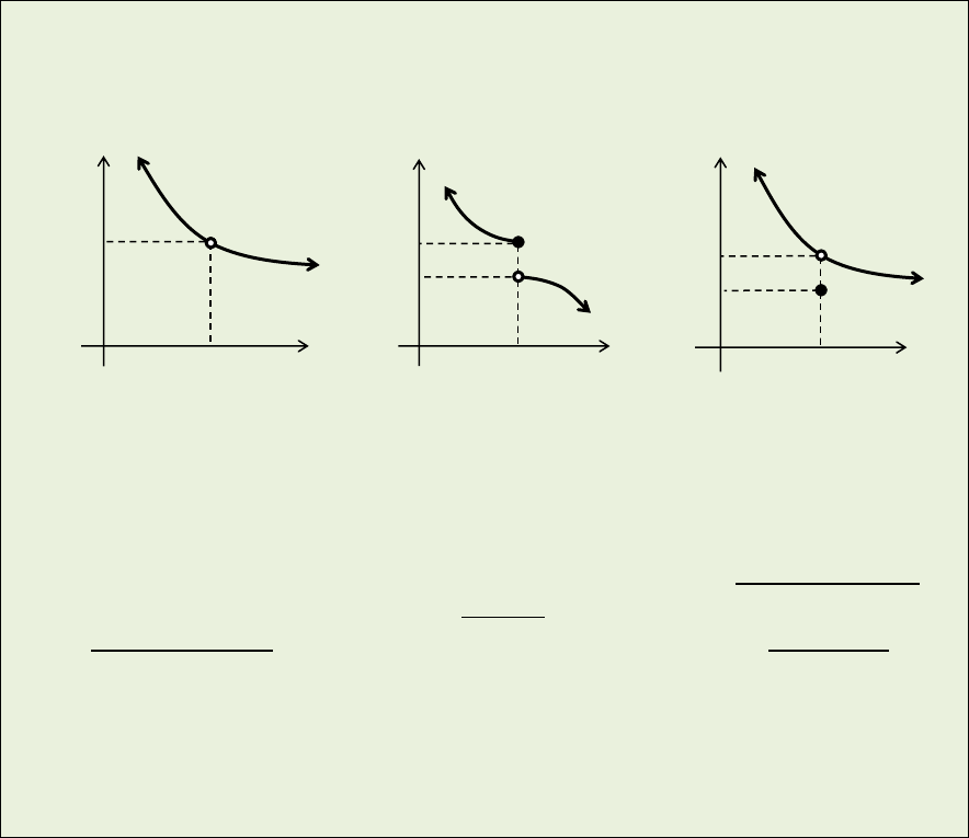 Escuela Preparatoria Uno UNIVERSIDAD AUTÓNOMA DE YUCATÁN Página 34 de 81 Si una de estas tres condiciones no se cumple, entonces se dice que la función 𝑓 es discontinua en 𝑥 = 𝑎. Las siguientes gráficas de funciones presentan discontinuidad en el número 𝑥 = 𝑎. La discontinuidad en un número 𝒙 = 𝒂 de una función 𝑓 puede ser: eliminable, si 𝑙𝑖𝑚 𝑥→𝑎 𝑓(𝑥) existe o no eliminable (esencial), si 𝑙𝑖𝑚 𝑥→𝑎 𝑓(𝑥) no existe. La discontinuidad no eliminable poder ser: de salto finito, si los límites laterales de la función 𝑓 cuando 𝑥 se aproxima a 𝑎 existen o de salto infinito, si al menos uno de los límites laterales de la función 𝑓 cuando 𝑥 se aproxima a 𝑎 no existen. Se dice que la función 𝑓 es continua en su dominio si es continua en cada número de su dominio. Si 𝑓 no es continua en determinado número 𝑎 de su dominio, se dice que 𝑓 es discontinua en 𝑎, o que tiene discontinuidad en 𝑎. 𝒍𝒊𝒎 𝒙→𝒂 𝒇(𝒙) no existe 𝒍𝒊𝒎 𝒙→𝒂 𝒇(𝒙) ≠ 𝒇(𝒂) x 𝑦 𝑎 𝐿 𝒇(𝒂) no existe 𝒇 x 𝑦 𝑎 𝑐 𝑏 1 𝒇 x 𝑦 𝑎 𝐿 𝑏 𝒇