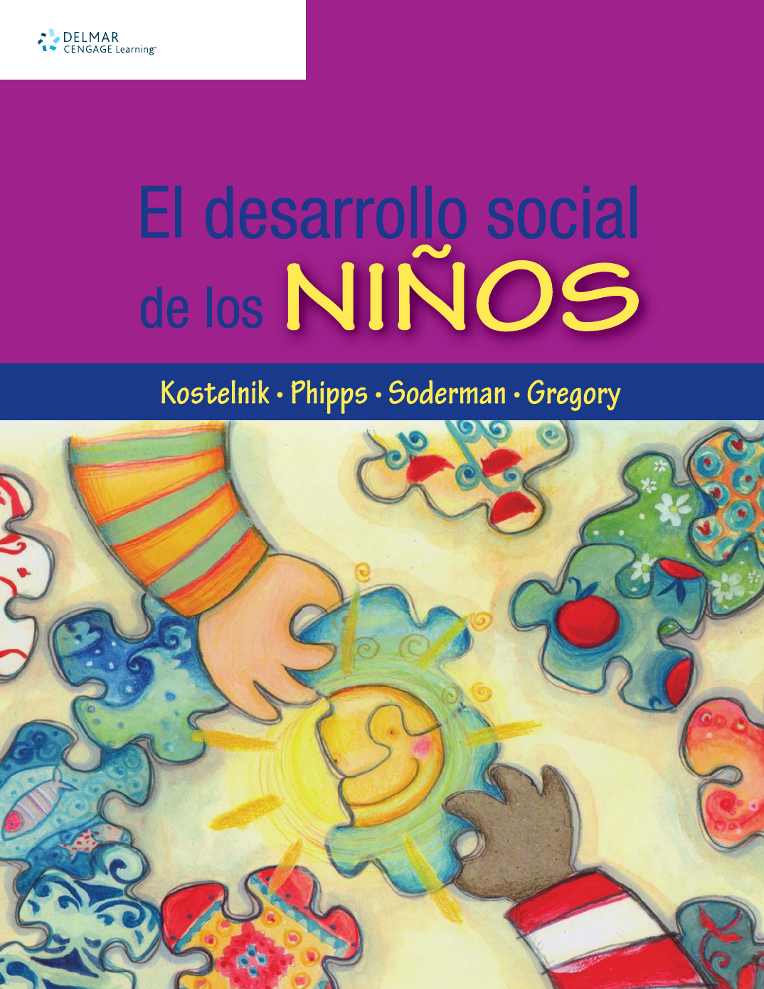 El desarrollo social de los niños Marjorie J. Kostelnik, Ph.D. Universidad de Nebraska-Lincoln Alice Phipps Whiren, Ph.D. Anne K. Soderman, Ph.D. Kara M. Gregory, Ph.D. Universidad del Estado de Michigan Traductor José Carmen Pecina Hernández El desarrollo social de los niños Marjorie J. Kostelnik Ph.D., Alice Phipps Whiren, Ph.D., Anne K. Soderman, Ph.D. y Kara M. Gregory, Ph.D. Presidente de Cengage Learning Latinoamérica: Javier Arellano Gutiérrez Director general México y Centroamérica: Pedro Turbay Garrido Director editorial Latinoamérica: José Tomás Pérez Bonilla Director de producción: Raúl D. Zendejas Espejel Coordinadora editorial: María Rosas López Editora de desarrollo: Claudia Islas Licona Editora de producción: Abril Vega Orozco Diseño de portada: Grupo Insigne O.T.A., S.A. de C.V. Imagen de portada: Viola Di Pietro Dreamstime Composición tipográfica: Mariana Sierra Fotografías de interiores: Dreamstime © D.R. 2009 por Cengage Learning Editores, S.A. de C.V., una Compañía de Cengage Learning, Inc. Corporativo Santa Fe Av. Santa Fe núm. 505, piso 12 Col. Cruz Manca, Santa Fe C.P. 05349, México, D.F. Cengage Learning™ es una marca registrada usada bajo permiso. DERECHOS RESERVADOS. Ninguna parte de este trabajo amparado por la Ley Federal del Derecho de Autor, podrá ser reproducida, transmitida, almacenada o utilizada en cualquier forma o por cualquier medio, ya sea gráfico, electrónico o mecánico, incluyendo, pero sin limitarse a lo siguiente: fotocopiado, reproducción, escaneo, digitalización, grabación en audio, distribución en Internet, distribución en redes de información o almacenamiento y recopilación en sistemas de información a excepción de lo permitido en el Capítulo III, Artículo 27 de la Ley Federal del Derecho de Autor, sin el consentimiento por escrito de la Editorial. Traducido del libro Guiding Children’s Social Development & Learning, 6th ed. Kostelnik, Marjorie J., Ph.D., Alice Phipps Whiren, Ph.D., Anne K. Soderman and Ph.D., Kara M. Gregory, Ph.D. Publicado en inglés por Delmar, Cengage Learning ©2009 ISBN-13: 978-1-4283-3694-0 ISBN-10: 1-4283-3694-X Datos para catalogación bibliográfica: Kostelnik, Marjorie J., Alice Phipps Whiren, Anne K. Soderman y Kara M. Gregory El desarrollo social de los niños ISBN-13: 978-607-481-356-2 ISBN-10: 607-481-356-6 Visite nuestro sitio en: http://latinoamerica.cengage.com Prefacio xvii Capítulo 1 Cómo influir en la vida de los niños 1 Los niños en el mundo social 2 Conocimiento y habilidades sociales del niño 2 Competencia social 3 Beneficios de la competencia social 6 Desarrollo y competencia social 7 El desarrollo está interrelacionado 7 El desarrollo social es una secuencia ordenada 8 El ritmo del desarrollo varía entre los niños 9 El desarrollo social tiene periodos óptimos 10 El desarrollo social tiene efectos acumulativos y retroactivos 10 El aprendizaje y la competencia social 11 Los niños participan activamente en el aprendizaje social 11 Los niños disponen de muchas maneras de conocer el mundo social 12 La competencia social plantea un reto continuo y exige dominio 13 El aprendizaje social requiere tiempo 13 Contextos donde se adquiere la competencia social 14 Microsistemas 15 Mesosistemas 17 Exosistemas 17 Macrosistemas 18 Pensando en los niños dentro del contexto 19 Función del profesional de la niñez temprana en la promoción de la competencia social 21 Trabajo profesional con los niños 22 Prácticas adecuadas al nivel del desarrollo y competencia social 25 Prácticas adecuadas a la edad 25 Prácticas adecuadas al individuo 26 Prácticas adecuadas al nivel sociocultural 26 Bases de la competencia social 27 Contenido iv Contenido Resumen 31 Puntos para comentar 31 Actividades de campo 32 Capítulo 2 Las relaciones sociales en la infancia 33 Características del infante como factor de las relaciones sociales 34 Estados de conducta 34 Capacidad sensorial e interacción social 38 Apego 39 Control motor e interacción social 40 Temperamento 41 Individualización y socialización 44 Cómo enfrentar la separación entre niño y adulto 47 Diferencias individuales de los resultados 48 Amistad 49 Surgimiento de la competencia comunicativa 50 Niños que empiezan a caminar: transición de la infancia 53 Infantes y niños de 1 a 2 años con necesidades especiales 56 Errores a evitar 59 Resumen 60 Puntos para comentar 61 Actividades de campo 61 Capítulo 3 Cómo establecer relaciones positivas mediante la comunicación no verbal 63 Funciones de la comunicación no verbal 64 Canales de la comunicación no verbal 66 Posición en el espacio 67 Movimiento corporal 69 Orientación del cuerpo 70 Gestos 71 Contacto físico 72 Expresión facial 74 Paralingüística 75 Contenido v Abusos de la conducta no verbal por parte de los adultos 79 Habla infantil 79 Gritos 80 Contacto físico nocivo 80 Comunicación referente a las relaciones 80 Tiempo 81 Afabilidad 81 Poder 82 El impacto de los mensajes mixtos 83 Adquisición de las habilidades de la comunicación no verbal en la infancia 84 Cómo guiar a los niños mediante la conducta no verbal del adulto 86 Errores a evitar 87 Resumen 88 Puntos para comentar 89 Actividades de campo 89 Capítulo 4 Cómo fomentar la adquisición del sentido del yo en los niños mediante la comunicación verbal 91 Evolución del conocimiento social y del yo en la infancia 93 Autoconocimiento y conocimiento social 93 Autoconcepto 94 Autoestima 96 Evolución de la autoestima 97 Relación entre las prácticas de adultos y la autoestima 100 Crianza 102 Orientación 102 Cómo relacionar el ambiente con el habla adulta 102 El ambiente verbal 103 El ambiente verbal negativo 103 El ambiente verbal positivo 106 Cómo crear un ambiente verbal positivo 106 Reflexiones (comentarios) sobre la conducta 108 Cómo usar la conversación para apoyar la adquisición de la identidad personal y del conocimiento social, así como para establecer una relación 111 vi