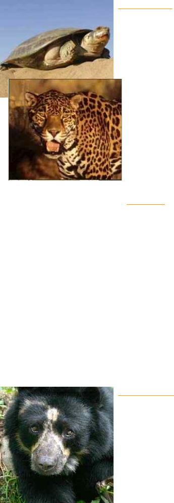 Los seres humanos nos hemos encargado de hacer el suficiente daño como para poner en peligro inminente muchas especies de animales en todas partes del mundo, por no mencionar aquellas que ya se han extinguido producto de la destrucción de sus hábitat y el desequilibrio de las cadenas alimenticias ocasionado por la interacción equivocada del hombre quién mediante la caza, la tala o la contaminación han alterado significativamente la posibilidad de vida para muchas especies animales que intentan sobrevivir en medio de este drama del que todos nosotros somos culpables. Por tal motivo también somos responsables de hacer algo por su protección. Algunas especies en peligro de Extinción que habitan en Venezuela: Tortuga Arrau: La tortuga arrau es una especie muy abundante desde hace 200 o 300 años, que empezó a disminuir rápidamente durante la segunda mitad del siglo XIX, siendo actualmente un animal muy escaso a lo largo de toda su área de distribución (Groombridge 1982). Es objeto de una presión humana muy intensa, que no ha variado desde épocas coloniales. En Venezuela la tendencia hacia la disminución del tamaño poblacional se mantiene, a pesar de los esfuerzos que se realizan para su protección (Ojasti 1988, Licata 1992). La creación de áreas protegidas no garantiza su conservación, ya que son animales migratorios cuyos hábitats de alimentación y reproducción difieren. Las tortugas arrau se desplazan a grandes distancias a medida que el nivel de los ríos varía, como consecuencia de las fluctuaciones anuales cíclicas en la precipitación (Pritchard & Trebbau 1984, Ojasti 1988, Licata 1992). Su extinción a corto plazo es probable, a menos que se tomen medidas enérgicas para evitarlo (Ojasti 1988). A nivel internacional la tortuga arrau es considerada una especie En Peligro de extinción (Groombridge 1982, IUCN 1994). Su hábitat natural es el Parque Nacional Santos Luzardo. Sin embargo, desde hace unos años se han estado implementando programas a fin de preservar esta especie, por lo que hoy en día pueden encontrarse en diversos lugares como la Estación Experimental Amazonas, el Hato San Francisco y la Agropecuaria Puerto Miranda, zonas donde se desarrollan planes para conservar la especie. El Jaguar: Su hábitat es la región selvática de la Zona Tropical, prefiere las selvas con ríos y caños. Hoy existen cerca de 2.500 ejemplares, muchos de ellos con cicatrices de disparos por intentos de caza.El yaguar ha sufrido una reducción significativa en su distribución original (Emmons 1990). Su límite al norte ha retrocedido unos 1.000 km y sólo permanece en 33 y 62% de su área de distribución en Centro y Suramérica, respectivamente (Swank & Teer 1989, Hoogesteijn & Mondolfi 1990). En Venezuela, hasta los años cincuenta, el yaguar presentaba una amplia distribución (Hoogesteijn & Mondolfi 1991a). Hoy en día sólo las poblaciones localizadas en los estados Amazonas y Bolívar permanecen relativamente estables; las localizadas en Sierra de Perijá, llanos occidentales, piedemonte andino y delta del Orinoco se encuentran en constante disminución y en la Cordillera de La Costa prácticamente están extintas (Hoogesteijn & Mondolfi 1990, Medina et al. 1992). La mayor presión sobre el yaguar está localizada en la población ubicada en la cuenca del Lago de Maracaibo (Hoogesteijn com. pers.). La especie ha sido declarada Vulnerable de extinción por la Unión Mundial para la Naturaleza (IUCN 1990). En Argentina (Bertonatti & González 1993) y Ecuador (Suárez & García 1986) es considerada En Peligro de extinción, mientras que en Perú su situación es Vulnerable (Pulido 1991). Principales amenazas: El comercio peletero internacional, la cacería deportiva, el control de depredadores y la sobreexplotación de sus presas, han sido las razones principales de que las poblaciones de yaguar se encuentren tan disminuidas en Venezuela (Mondolfi 1976, Hoogesteijn & Mondolfi 1990, 1991a, 1991b). Sin embargo, actualmente el factor más importante, en cuanto a la disminución que aún experimentan sus poblaciones, es la pérdida de hábitat por deforestación de zonas boscosas con fines forestales y mineros o para su transformación en áreas agrícolas y ganaderas. El Oso Frontino: es el único oso de Suramérica, su hábitat son los Bosques altos de los Andes de Táchira, Mérida y Trujillo, parte meridional de Lara y norte de Portuguesa. Este oso es un mamífero que no ataca, sólo lo hace cuando se siente en peligro él o sus crías. Amenazas: Se estima que hay menos de 2.000 de estos osos en estado salvaje. La destrucción y la fragmentación de su hábitat, debido al crecimiento agrícola, es la causas principal de su declinación. La cacería deportiva y las leyendas que existen en torno a la especie están contribuyendo también a su extinción. Se ha descubierto que las poblaciones que sobreviven son fragmentarias y restrictas a reductos boscosos que han quedado aislados Está en nosotros colaborar para impedir que estos animales estén condenados a la extinción. Todos podemos aportar nuestro granito de arena siguiendo estas sencillas recomendaciones: · No consumas carne de fauna silvestre. · No compres animales silvestres. · Denuncia ante la Guardia Nacional aquellos que comercialicen con especies en extinción. Haz comprender a tus familiares y amigos sobre la importancia de la fauna, la flora y la naturaleza en general. El Cóndor: Se encuentra a lo largo de los Andes, y en Venezuela se puede encontrar específicamente en la Cordillera Andina y en la Sierra de Perijá. El más imponente ave de los Andes americanos es el Cóndor (Vultur gryphus) que pertenece al orden de los Falconiformes y a la familia Cathartidae cuyos miembros son caracterizados por alimentarse casi exclusivamente con carroña. El Cóndor es un ave grande monógama y sedentaria con ciertos hábitos nocturnos. Su cabeza es desnuda de plumas y el macho se diferencia fácilmente de la