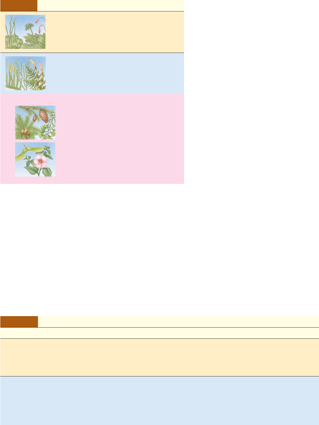 566 Capítulo 27 musgos producen anteridios y arquegonios en la misma planta. La fecundación ocurre cuando una de las células es- permáticas se fusiona con el óvulo dentro del arquegonio. Las células espermáticas, que tienen fl agelos, se transpor- tan desde el anteridio hasta el arquegonio mediante agua que fl uye, como las gotas de agua que salpican. Una gota de lluvia cae sobre la parte superior de una gametofi ta macho y los espermatozoides se liberan en ella desde los anteridios. Otra gota de lluvia que caiga sobre la planta macho puede salpicar al aire la gota que lleva el esperma- tozoide, y puede conducirla hacia la parte superior de una planta hembra cercana. Alternativamente, artrópodos como insectos y ácaros pueden tocar el fl uido que con- tiene al espermatozoide e inadvertidamente transportarlo a través de distancias considerables. Una vez que se encuen- tre el espermatozoide en una película de agua sobre el musgo femenino, éste nada hacia el arquegonio, que se- grega químicos que atraen y guían el espermatozoide, y se fusiona con el óvulo. El cigoto diploide, formado por fecundación, crece mediante mitosis en un embrión multicelular que se de- sarrolla en un musgo esporofi to maduro. Esta esporofi ta crece desde la parte superior de la gametofi ta hembra y permanece unida y depende nutricionalmente de la gametofi ta durante su existencia (FIGURA 27-6b). Ini- cialmente verde y fotosintética, la esporofi ta se vuelve pardusca dorada hacia la madurez. Consiste en tres partes principales: un pie, que ancla la esporofi ta a la gametofi ta y absorbe mi- nerales y nutrientes de ella; una seta, o tallo; y una cápsula, que contiene esporogonios (células madre de esporas). La cápsula de algunas especies está cubierta con una estructura parecida a cofi a, la caliptra, que se deriva del arquegonio. Las células de esporogonios experimentan meiosis para formar esporas haploides (vea la fi gura 27-7). Cuando las esporas maduran, la cápsula se abre y las libera, para entonces transportarse por el viento o en la lluvia. Si una espora de musgo aterriza en un lugar adecuado, germina y crece en un fi lamento de células llamado protonema. El protonema, que superfi cialmente parece un alga verde fi lamentosa, forma yemas, cada una de las cuales crece en una gametofi ta verde, y el ciclo de vida continúa. Los biólogos consideran la generación gametofi ta haploide como la generación dominante en musgos, porque vive independientemente planta individual tiene estructuras absorbentes parecidas a cabellos lla- madas rizoides y una estructura con forma de tallo erguido que sostiene láminas con forma de hojas, y cada una usualmente consiste en una sola capa de células indiferenciadas excepto en la vena central. Puesto que los musgos carecen de tejidos vasculares, no tienen raíces, tallos u hojas verdaderos; las estructuras musgosas no son homólogas a raíces, tallos u hojas en las plantas vasculares. Algunas especies de musgos tienen célu- las conductoras de agua y células conductoras de azúcar, aunque dichas células no están lignifi cadas o son tan especializadas o efectivas como las células conductoras de las plantas vasculares. La alternancia de generaciones está claramente defi nida en el ciclo de vida de los musgos (FIGURA 27-7). La gametofi ta musgo verde con frecuencia tiene sus gametangios en la parte superior de la planta. Mu- chas especies de musgos tienen sexos separados: las plantas machos que portan anteridios y las plantas hembras que portan arquegonios. Otros Diez fi los de plantas existentes Plantas no vasculares con una generación gametofi ta domi- nante (briofi ta) Filo Hepatophyta (hepáticas) Filo Bryophyta (musgos) Filo Anthocerophyta (antoceros) Plantas vasculares con una generación esporofi ta dominante Plantas sin semillas Filo Lycopodiophyta (licopodios) Filo Pteridophyta (helechos y afi nes, Psilotum y colas de caballo) Plantas con semillas Plantas con semillas desnudas (gimnospermas) Filo Coniferophyta (coníferas) Filo Cycadophyta (cícadas) Filo Ginkgophyta (ginkgos) Filo Gnetophyta (gnetofi tas) Semillas encerradas dentro de un fruto (angiospermas) Filo Anthophyta (angiospermas o plantas con fl ores) Clase Eudicotyledones (eudicotas) Clase Monocotyledones (monocotiledóneas) TABLA 27-1 Comparación de los principales grupos de plantas sin semillas Grupo de planta Etapa dominante del ciclo de vida Géneros representativos No vasculares; se reproducen por esporas (briofi tas) Hepáticas (fi lo Hepatophyta) Gametofi ta: planta taloide o foliosa Marchantia Musgos (fi lo Bryophyta) Gametofi ta: planta foliosa Polytrichum, Sphagnum, Physcomitrella Antoceros (fi lo Anthocerophyta) Gametofi ta: planta taloide Anthoceros Vasculares; se reproducen por esporas Licopodios (fi lo Lycopodiophyta) Esporofi ta: raíces, rizomas, tallo erguido y hojas (microfi los) Lycopodium, Selaginella Helechos (fi lo Pteridophyta) Esporofi ta: raíces, rizomas y hojas (megafi los) Pteridium, Polystichum, Azolla, Platycerium Psilotum (fi lo Pteridophyta) Esporofi ta: rizomas y tallos erguidos; sin raíces u hojas verdaderos Psilotum Colas de caballo (fi lo Pteridophyta) Esporofi ta: raíces, rizomas, tallos erguidos y hojas (megafi los reducidos) Equisetum TABLA 27-2 27_Cap_27_SOLOMON.indd 56627_Cap_27_SOLOMON.indd 566 17/12/12 10:2117/12/12 10:21 Parte 5 La diversidad de la vida 27 Plantas sin semillas 27.2 Briofitas Tabla 27-1 Diez filos de plantas existentes Tabla 27-2 Comparación de los principales grupos de plantas sin semillas