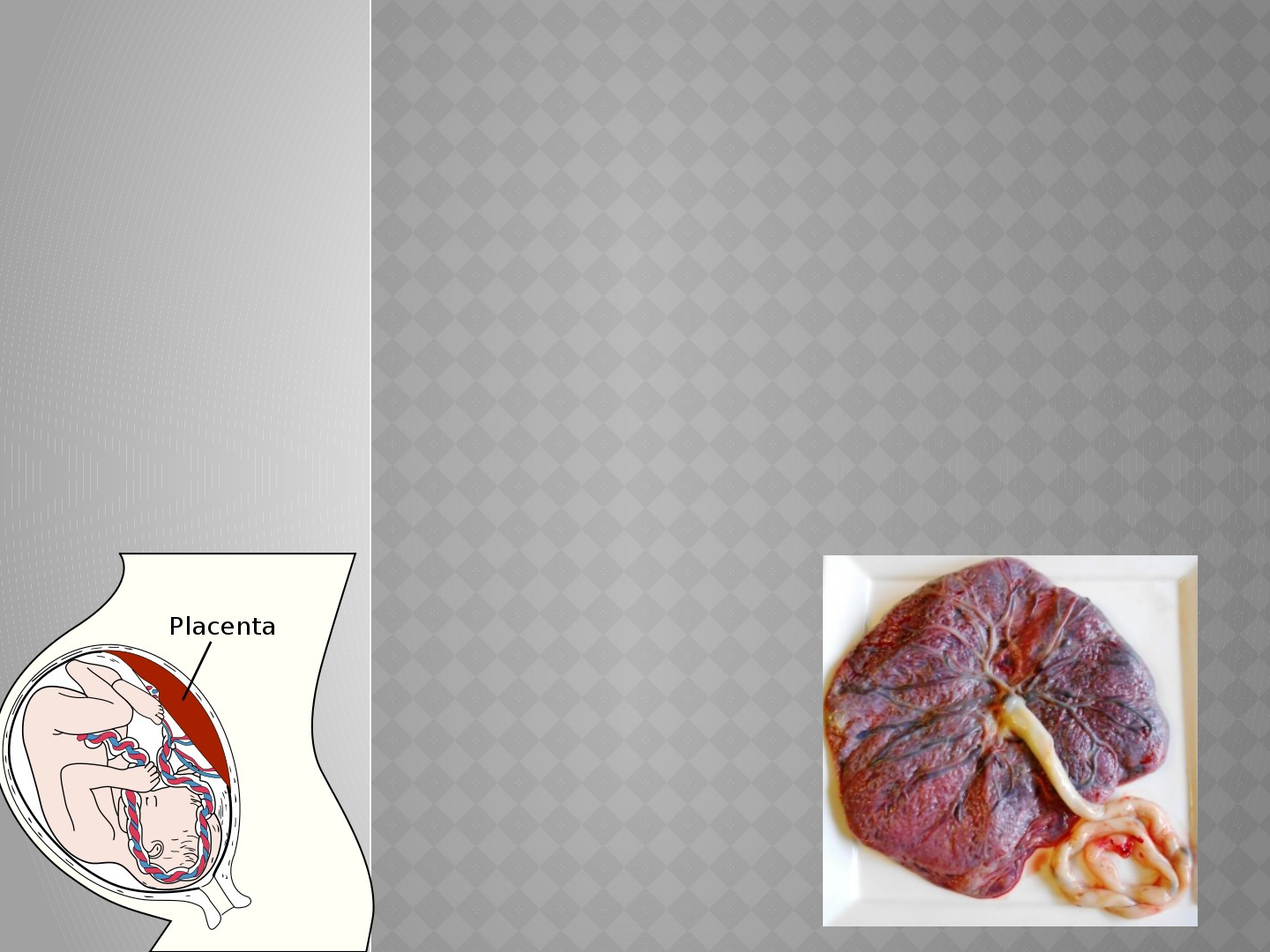 PLACENTA y membranas fetales Es el órgano principal en el que tiene lugar el intercambio de nutrientes y gases entre la madre y el feto. LA PLACENTA PLACENTA y membranas fetales Los vasos del cordón umbilical comunican la circulación placentaria con la circulación fetal. Las membranas fetales son el corion, el amnios, la vesícula umbilical (saco vitelino) y la alantoides. Funciones de la placenta La placenta lleva a cabo tres funciones principales: • Metabolismo (síntesis de glucógeno, colesterol y ácidos grasos). • Transporte de gases y nutrientes. • Secreción endocrina (Gonadotropina Coriónica Humana). Estas actividades son esenciales para el mantenimiento del embarazo y para la potenciación del desarrollo fetal normal. CARACTERISTICAS La placenta después del parto Tiene forma discoide Diámetro de 15-20 cm Grosor de 2-3 cm Peso de 500 a 600 g es decir, aproximadamente la sexta parte del peso corporal promedio del feto. Los bordes de la placenta se continúan con los sacos amniótico y coriónico rotos Desempeña una función en la transferencia de nutrientes al embrión (2da y 3era semana) Desarrolla las células sanguíneas, que se producen inicialmente en el mesodermo extraembrionario (3era semana) El endodermo queda incorporado en forma de intestino primitivo Las células germinales primordiales aparecen en el revestimiento endodérmico de la pared de la vesícula A los 32 días la vesícula umbilical es grande A las 10 semanas ha disminuido de volumen con un diámetro aproximado de 5cm A conectado al intestino primitivo medio a través de un conducto onfaloenterico En la semana 20, generalmente ya no es visible EMBARAZOS MULTIPLES
