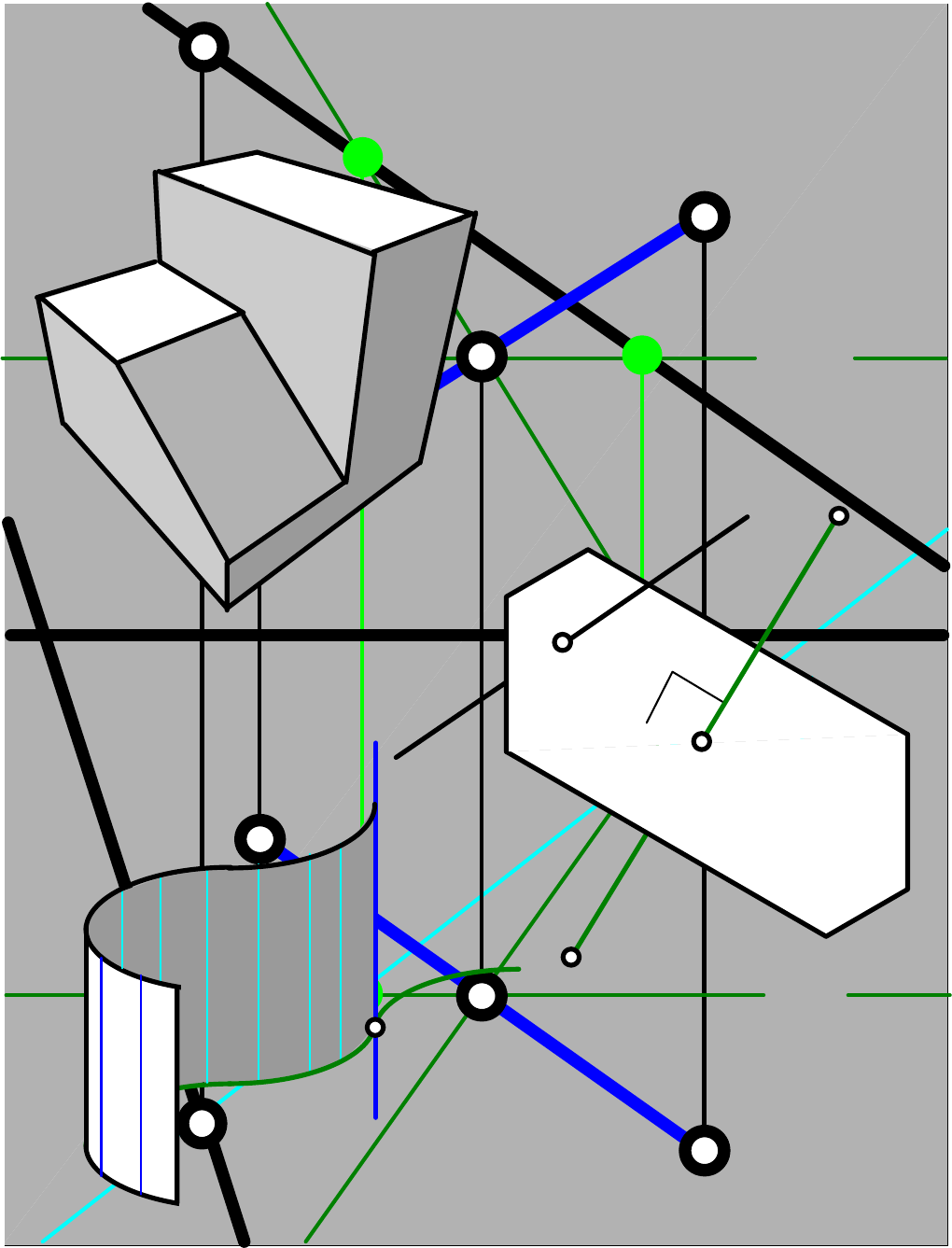 . Ah Av Bh Bv fh hh hv th fv Ph Pv Mh rv=tv rh r B M A α P d g GEOMETRÍA DESCRIPTIVA GEOMETRÍA DESCRIPTIVA Ing. Alberto M. Pérez G.Ing. Alberto M. Pérez G. Universidad de los Andes Núcleo Universitario “Rafael Rangel” Departamento de Ingeniería Trujillo-Venezuela Trabajo presentado con fines de ascenso a la categoría de Asistente en el escalafón de la Universidad de los Andes Trujillo; 1.997 GEOMETRÍA DESCRIPTIVA GEOMETRÍA DESCRIPTIVA Ing. Alberto M. Pérez G.Ing. Alberto M. Pérez G. Geometría Descriptiva TABLA DE CONTENIDO Ing. Alberto M. Pérez G. iii TABLA DE CONTENIDO. INTRODUCCIÓN...............................................................................................................................................................................................xi JUSTIFICACIÓN ...............................................................................................................................................................................................xii OBJETIVOS.......................................................................................................................................................................................................xiii METODOLOGÍA .............................................................................................................................................................................................. xiv capítulo 1. marco teórico. .........................................................................................................................................................................1 conceptos básicos. ......................................................................................................................................................................2 PUNTO..........................................................................................................................................................................................2 LÍNEA............................................................................................................................................................................................2 RECTA ..........................................................................................................................................................................................2 ÁNGULO.......................................................................................................................................................................................2 POLIGONAL .................................................................................................................................................................................3 POLÍGONO ...................................................................................................................................................................................3 CURVA..........................................................................................................................................................................................4 CÍRCULO ......................................................................................................................................................................................5 SUPERFICIE.................................................................................................................................................................................5 SÓLIDO ........................................................................................................................................................................................7 TRAZADO.......................................................................................................................................................................................8 EL JUEGO DE ESCUADRAS ......................................................................................................................................................9 TRAZADO DE RECTAS CON LAS ESCUADRAS.......................................................................................................................9 TRAZADO DE UNA RECTA TANGENTE A UNA CIRCUNFERENCIA.......................................................................................9 DIVISIÓN DE UN SEGMENTO EN PARTES IGUALES ............................................................................................................10 TRAZADO DE POLÍGONOS REGULARES...............................................................................................................................10 MÉTODOS GENERALES DE TRAZADO DE POLÍGONOS REGULARES ..............................................................................12 ESCALA.........................................................................................................................................................................................13 ESCALÍMETRO ..........................................................................................................................................................................13 capítulo 2. sistemas de proyección. ................................................................................................................................................14 sistemas de proyección. ..........................................................................................................................................................15 a) PROYECCIÓN CILÍNDRICA ..................................................................................................................................................15 1) PROYECCIÓN ORTOGONAL .........................................................................................................................................15 i) Proyección en vistas múltiples ..................
