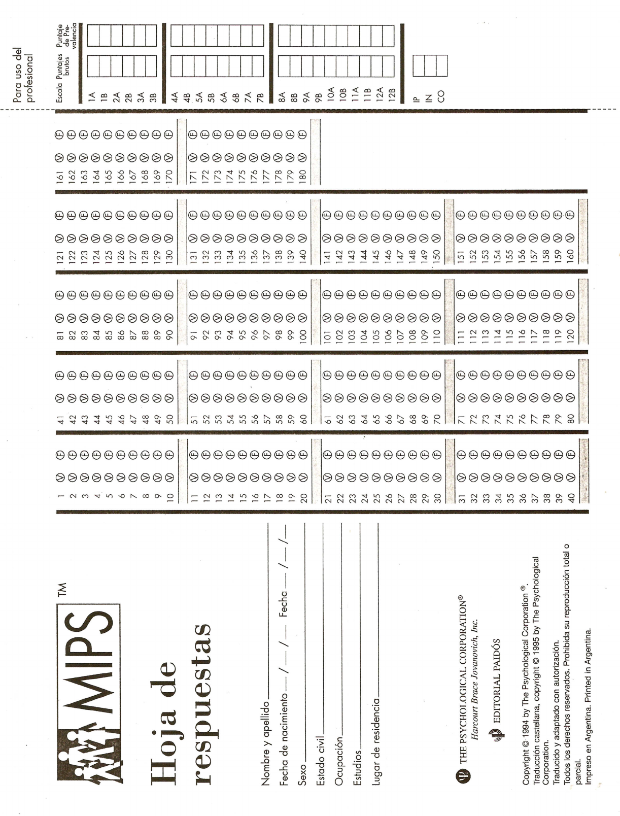 Castro Solano, Casullo y Pérez APLICACIONES DEL MIPS EN LOS ÁMBITOS LABORAL, EDUCATIVO Y MÉDICO CAPS 2, 4, 7 Y ANEXO