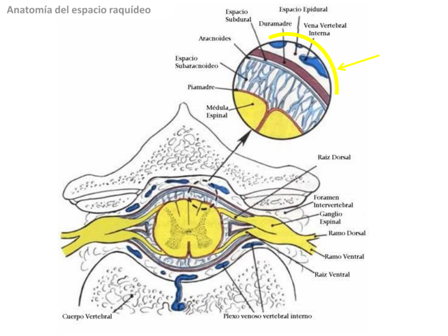 Ligamento amarillo Anatomía del espacio raquídeo http://www.google.es/url?sa=i&source=images&cd=&cad=rja&docid=FBw1EV5et3PJIM&tbnid=VMrPrpF7YQdqGM:&ved=&url=http://www.med.ufro.cl/Recursos/neuroanatomia/archivos/4_medula_espinal_archivos/Page414.htm&ei=_6rSUZaSKIHG7AbC7ICABw&psig=AFQjCNFyIUwHIwDURWF9D6c8BBoy_l-DXg&ust=1372847231708315