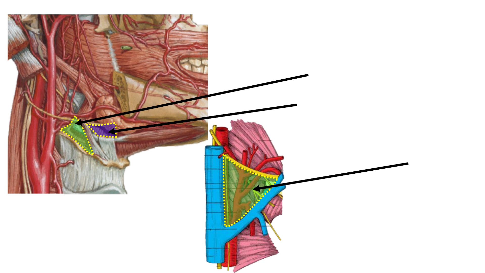 TRIÁNGULOS Dr. Juan José Sánchez Médico Cirujano - UDO Beclard, Pirogoff, Farabeuf de -Louis Hubert Farabeuf Límites: *Posterior: Vena Yugular Interna *Inferior: Tronco Linguofacial *Superior: Nervio Hipogloso (XII) Contenido: *Bifurcación de la A. Carótida Primitiva *Corpúsculo y Seno Carotídeo *Algunas ramas de la A. Carótida Externa *Raíz Superior del Asa Cervical Triángulo de Farabeuf Dr. Juan José Sánchez -Pierre Agustín Beclard Límites: *Posterior: Músculo Hiogloso *Inferior: Asta Mayor del Hueso Hioides *Superior: M. Estilohioideo y Vientre Posterior del Digástrico Contenido: *Nervio Hipogloso (XII) *Arteria Lingual Triángulo de Beclard Dr. Juan José Sánchez -Nicolái Ivánovich Pirogov Límites: *Superior: Nervio Hipogloso (XII) *Anterior: Músculo Milohioideo *Inferior: Tendón Intermedio del M. Digástrico Contenido: *Arteria Lingual *Venas Linguales Superficiales Triángulo de Pirogoff Dr. Juan José Sánchez No Olvides Suscribirte, Darle Like y Compartir!!! @ juan_sanchez1315 Sígueme en: