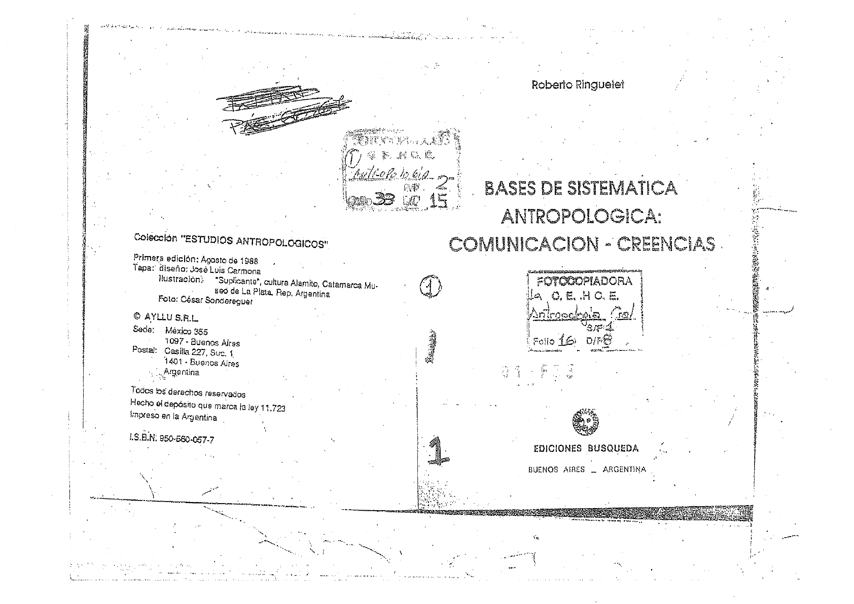 16 RINGUELET (2015) Bases de sistemática antropológica Comunicación, creencias Cap 1 La comunicación en las relaciones sociales