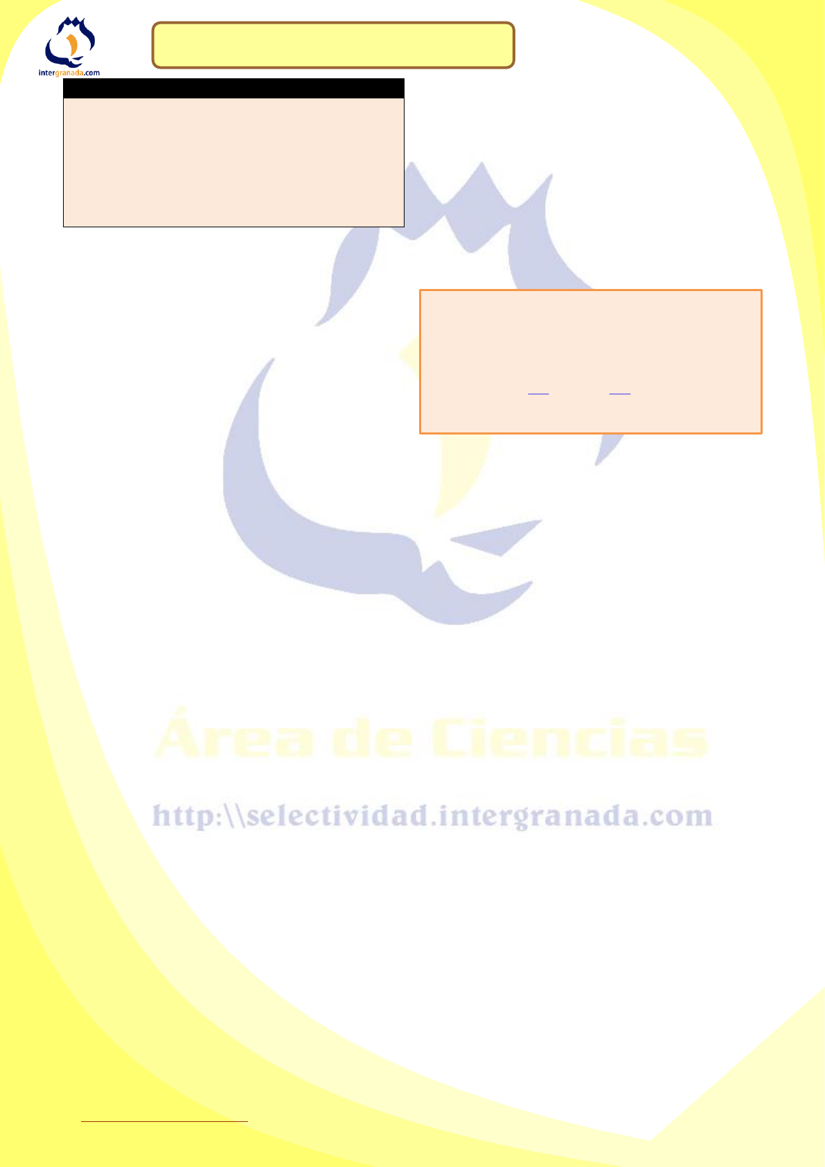 © http://selectividad.intergranada.com 1 © http://selectividad.intergranada.com Marzo de 2023 Problemas de Inecuaciones Problemas de inecuaciones 4º de ESO Departamento de Matemáticas www.intergranada.com © Raúl González Medina Algoritmo de resolución de Problemas de inecuaciones Para resolver problemas de inecuaciones seguiremos este esquema: a) Lectura y comprensión del enunciado. b) Traducción del problema al lenguaje algebraico. c) Planteamiento de la inecuación o inecuaciones. d) Resolución de la inecuación usando el método necesario según sea de primer o de segundo grado. e) Evaluación e interpretación de los resultados obtenidos según los datos del enunciado. 01.- Traduce al lenguaje algebraico: a) El doble de un número más 3 unidades no pasa de 10. b) El cuadrado de un número es mayor que el triple de dicho número menos 2. c) Si tuviera 10 euros más, superaría el dinero que se necesita para comprar un libro de 30 euros. d) La mitad de un número menos 10 unidades es menor que siete. e) Si restamos dos unidades a los tres cuartos de un número, el resultado es mayor que si le sumamos cinco unidades a su mitad. f) El producto de dos números consecutivos no es mayor de ocho. g) El perímetro de un rectángulo cuya base es 3 cm mayor que su altura no llega a 50 cm. Sol: a) 2x+3<10; b) x2>3x-2; c) x+10>30 ; d) x/2-10<7; e) 3/4x-2>x/2+5; f) x·(x+1)≤8; g) 4x+6<50. 02.- Tenemos dos figuras: un triángulo equilátero de lado x, y un rectángulo de largo x y de alto igual a 4. Determina para qué valores de x el perímetro del rectángulo es superior al del triángulo. Sol: Para los valores de x menores a 8 el perímetro del rectángulo es superior al perímetro del triángulo. 03.- Un taxista se desplaza hacia Paris a una velocidad comprendida entre 60 km/h y 90 km/h. ¿Entre que valores oscila la distancia del taxi al punto de partida al cabo de 3 horas? Sol: entre 180 km y 270 km. 04.- La fábrica A paga a sus comerciales 10 € por artículo vendido más una cantidad fija de 500 €. La fábrica B que es la competencia paga 15 € por artículo y 300 € fijos. ¿Cuántos artículos debe vender el comercial de B para ganar más dinero que el de A? Sol: Como mínimo 41 artículos. 05.- El perímetro de un triángulo equilátero es menor o igual que 18 m. ¿Cuánto puede medir el lado? Sol: x<6 m. 06.- A una empresa de cámaras web, el costo en mano de obra y material es de 21 € por unidad producida además de una cantidad fija de 70.000 €. Si el precio de venta de cada webcam es de 35 €, ¿cuántas cámaras webs debe vender como mínimo para generar beneficios? Sol: Como mínimo 5.001. 07.- Indica el único número positivo que al sumarle 5 sea menor que 7. Sol: El 1. 08.- Expresa mediante una inecuación el área de un cuadrado sabiendo que su perímetro es mayor que el de un rectángulo de lados 3 y 7 cm. Sol: Si el lado del cuadrado es x, su área será x2>25 09.- Si el perímetro de un rombo no supera los 60 metros, ¿qué podemos decir de la longitud de sus lados? Sol: Que es inferior a 15 metros. 10.- El área de un cuadrado es menor o igual que 36 m2. Calcula cuánto puede medir el lado. Sol: 0<x≤6. 11.- La suma de la mitad y de la cuarta parte de un número es más pequeña o igual que el triple del resultado de este número menos seis unidades. Encuentra la solución de esta inecuación. Sol: x≥8 12.- ¿Cuáles son los números naturales cuyo triple es mayor o igual que su doble más 30? Sol: Los mayores de 29 unidades. 13.- Averigua cual es el menor número entero múltiplo de 3 que verifica la inecuación: x + 2 > 3 x + 10 Sol: El -6. 14.- Un coche se desplaza por una carretera a una velocidad comprendida entre 70 y 110 Km/h. ¿Entre qué valores oscila la distancia del coche al punto de partida al cabo de 4 horas? Sol: Entre 280 y 440 km. 15.- Una fábrica paga a sus comerciales 20 € por artículo vendido más una cantidad fija de 600 €. Otra fábrica de la competencia paga 40 € por artículo y 400 € fijos. ¿Cuántos artículos debe vender un comercial de la competencia para ganar más dinero que el primero? Sol: Más de 10 artículos. 16.- La tarifa de telefonía de la empresa A es 25 euros fijos mensuales más 10 céntimos por minuto de conversación, la de la empresa B, es 20 euros fijos más 20 céntimos por minuto de conversación. ¿A partir de cuantos minutos empieza a ser más rentable la tarifa de la empresa A? Sol: A partir de 50 minutos. 17.- En infojobs se ofertan dos trabajos de vendedor de coches, en la primera ofrecen 1.000 euros de sueldo fijo más 200 euros por coche vendido, y en la otra ofrecen 800 euros de fijo más 250 € por coche. ¿qué oferta es mejor? Sol: Depende del nº de coches vendidos, a partir de 40 coches es mejor la segunda, si no, es más interesante la primera oferta. 18.- El área de un cuadrado es menor o igual que 64 cm2. Determina entre qué valores se halla la medida del lado. Sol: (0,8]. 19.- El perímetro de un cuadrado es menor que 60 metros. Determina entre qué valores se halla la medida del lado. Sol: (0,15). 20.- Una inecuación cuya solución sea el intervalo (-∞, 5) es: a) 5x – 3x + 2 < 9x + 2 c) 5x – 3x + 2 < 7x + 27 b) 8x – 3x + 7 < 9x + 2 d) 5x – 3x – 2 > 7x – 27 Sol: d) 21.- Para comprar un regalo, Emilia ha ido reuniendo monedas de 1 euro y de 2 euros, juntando en total 20 monedas. Si el precio del regalo es menor que 36 euros, ¿cuántas monedas de 2 € puede tener como máximo? Sol: 15 monedas. 22.- En un examen de 40 preguntas te dan dos puntos por cada acierto y te restan 0,5 puntos por cada fallo. ¿Cuántas preguntas hay que contestar bien para obtener como mínimo 40 puntos, si es obligatorio responder a todas? Sol: Hay que responder bien, como mínimo, a 24 preguntas. 23.- El producto de un número entero por otro, dos unidades mayor, es menor que 8. ¿Cuál puede ser ese número? Sol: El número puede ser: –3, –2, –1, 0 ó 1. 24.- El doble de 