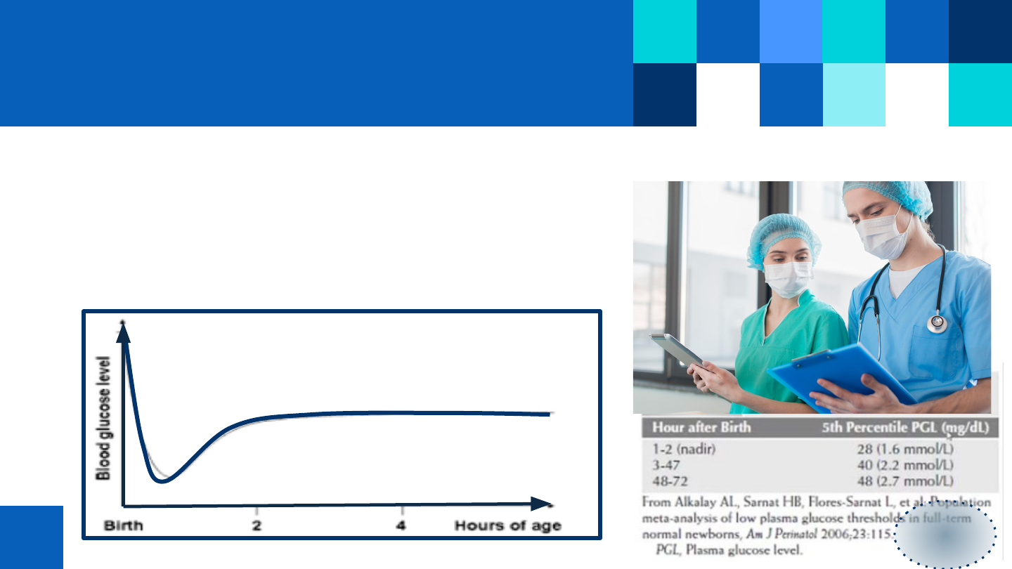 HMMS METABOLISMO Y ADAPTACIÓN DE LA GLUCOSA La hipoglucemia transitoria en el período neonatal temprano es un fenómeno adaptativo fisiológico. La Academia Americana de Pediatría (AAP) y la Organización Mundial de la Salud (OMS) recomiendan que el examen neonatal de la glucosa en la sangre se reserve a los RN que están en riesgo o sintomáticos. 24H