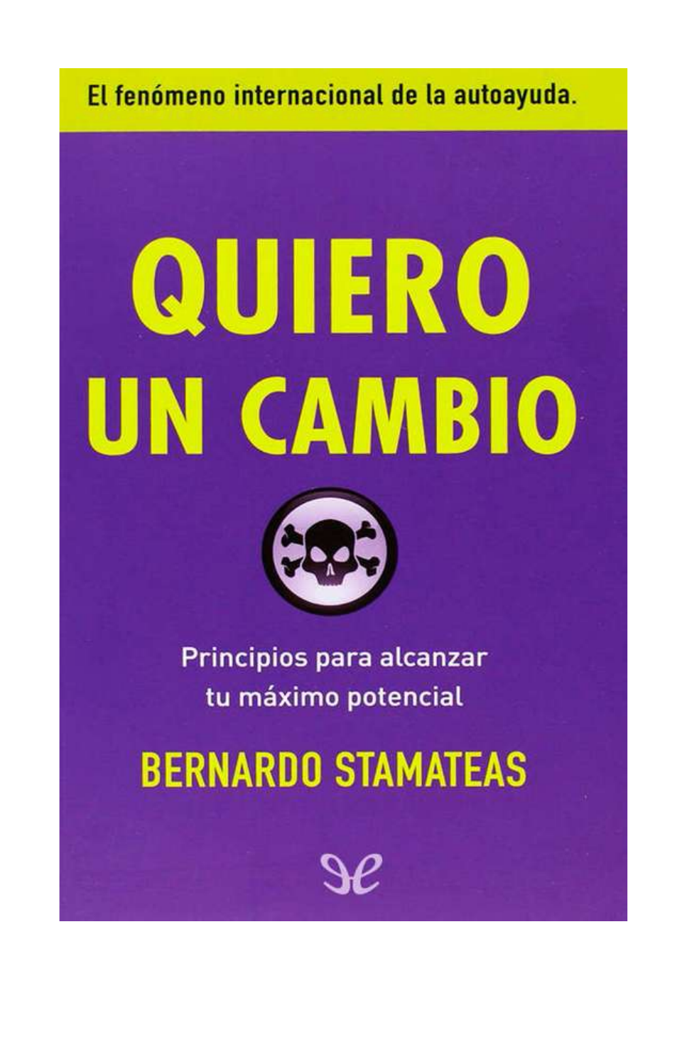 1/155 Son muchas las personas que necesitan un cambio. Porque sienten que no progresan. Porque atraviesan una crisis de pareja. Porque no saben cuál es la mejor forma de educar a sus hijos. Porque tienen problemas para relacionarse con los otros. Porque tienen capacidades pero no saben cómo expresarlas. Si eres una de esas personas, en este libro encontrarás pautas y estrategias sencillas que te permitirán: Alimentar tu motivación para generar nuevas ideas; Encontrar mentores y aprender de ellos; Planificar y liderar tus proyectos; Ejercitar hábitos y pasos eficaces para seguir creciendo, salir del conformismo y hacer realidad todo lo que estás esperando. 2/155 Bernardo Stamateas Quiero un cambio Principios para alcanzar tu máximo potencial ePub r1.1 Titivillus 25.10.16 3/155 Título original: Quiero un cambio Bernardo Stamateas, año de 2010 Editor digital: Titivillus ePub base r1.2 4/155 A todos los que sueñan un futuro mejor 5/155 AGRADECIMIENTOS A toda mi familia, porque me enseñó el arte de soñar. A Samuel, por su gestión. A Laura y Karina, que ordenaron el material. A Silvana, que sabe lo que quiero transmitir y me enseña cómo hacerlo. A Mario Rolando, director de Ediciones B (Argentina), a su editora Diana Paris, y a Luisa Borovsky y Soledad di Luca por el cuidado en la edición de este libro. A mi amigo Beto Casella, por escribir el genial prólogo. A todos mis lectores, por su amor. 6/155 PRÓLOGO Estaba seguro de que, tarde o temprano, Bernardo se iba a meter con este tema. La actitud del cambio, la transformación personal, la acción de reinventarnos a nosotros mismos, están presentes siempre en sus charlas. Stamateas sabe —porque me lo dijo, en una entrevista— que la mayoría de sus seguidores buscan algún tipo de cambio en sus vidas. Me parece atinadísimo, pues, que ahora dedique varias páginas seguidas al asunto. A mi programa de radio llegan todos los días cientos de mensajes de texto y mails , muchísimos de los cuales contienen las preocupaciones cotidianas de la gente común. Si hubiera que hacer una especie de ranking con los conflictos más comunes que recibo, éstos serían, entre otros: No estoy conforme con mi empleo. Ni con lo que me pagan, ni con la tarea que desempeño. Siento que no progreso, ni profesional ni económicamente. Creo que mi pareja no da para más… No sé cuál es la mejor forma de educar a mis hijos. Tengo problemas para relacionarme. Y eso me trae, a su vez, muchos otros problemas. Tengo que aprender a decir «no» con más frecuencia. Sé que tengo capacidad, pero no sé cómo comunicarlo. Ésos suelen ser, a simple vista, los conflictos más comunes de las personas adultas, incluso a partir de la adolescencia. Conflictos que, cuando se convierten en crónicos, desembocan invariablemente en una crisis, que suele llegar para quedarse mucho tiempo, y, a veces, para siempre. Sea cual sea el conflicto que se arrastre de ese ranking (algunos pueden arrastrar más de uno, claro), todas esas personas tienen una característica en común: necesitan cambiar. Sienten que lo que hicieron hasta el momento sirvió de poco o no sirvió para nada. Creen que tomaron el camino equivocado y necesitan girar hacia otro lado, tomar algún atajo o circular en la dirección contraria. Los publicistas —que son expertos en eso de influir en los demás— lo saben perfectamente y, en sus mensajes, lo suelen incorporar. «Si quiere 7/155 un cambio, vote a Fulanito», nos prometen en unas elecciones políticas. «Cambie por la frescura», nos venden en una propaganda de gaseosa. «Tenía el pelo reseco, hasta que me cambié a este champú», nos asegura una señorita que parece haber encontrado la felicidad en su nueva cabellera. Las compañías de créditos suelen ofrecernos dinero para cambiar el coche, la casa o el próximo lugar de vacaciones. Ya lo sabemos: cambiar un diputado, la gaseosa preferida o el champú se puede hacer de la noche a la mañana, con absoluta facilidad. El gran cambio que tantos necesitan desesperadamente —esto es, cambiarse a uno mismo— suele ser mucho más complicado. Hay que entablar una durísima pelea contra nuestra propia educación, nuestro sistema de creencias, nuestros mandatos paternos, nuestro contexto social y cultural. Y si, haciendo un gran esfuerzo, podemos contra todo eso, nos esperan la culpa, el miedo, la posible reprobación de los otros, el vértigo de ese precipicio que siempre es lo desconocido. Porque, en efecto, cuando se cambia, generalmente no se sabe qué viene. Es incierto. Y eso da miedo. Estoy convencidísimo de que el que no cambia, no evoluciona. Y ya sabemos que el que no evoluciona, empieza perdiendo oportunidades, después pierde trabajos, amigos, parejas, hasta que terminan invitándolo cada vez menos a los cumpleaños. El que no cambia para evolucionar pierde, sobre todo, este tiempo de oro que nos regalaron, que es nuestro ciclo vital. No hablamos, por supuesto, de aquel que cambia continuamente para que no cambie nada y entonces no dura en ningún empleo, tiene una novia por semana y hasta cambia de opinión con diferencia de horas. En este sentido, suele ser inevitable mencionar el ejemplo de Los Beatles, quienes con cada nuevo álbum parecían haber inventado un nuevo género musical, desechando lo que habían hecho en el disco anterior. Esa actitud, además de una muestra de colosal inspiración, conllevaba el riesgo de que el público no aceptara lo nuevo ¡Y los muchachos lo asumían! Y por supuesto que me permito parafrasear a aquel que dijo algo así como: «Es una locura hacer siempre la misma cosa y esperar resultados diferentes». Hace varios años, en un libro de programación neurolingüística de pocas páginas, escrito por el brasileño Lair Ribeiro, leí una idea que me quedó grabada. Este experto en PNL decía que la mayoría de las personas solemos movernos en un contexto que nos brinda cierta seguridad económica, laboral, afectiva y/o social. A ese contex