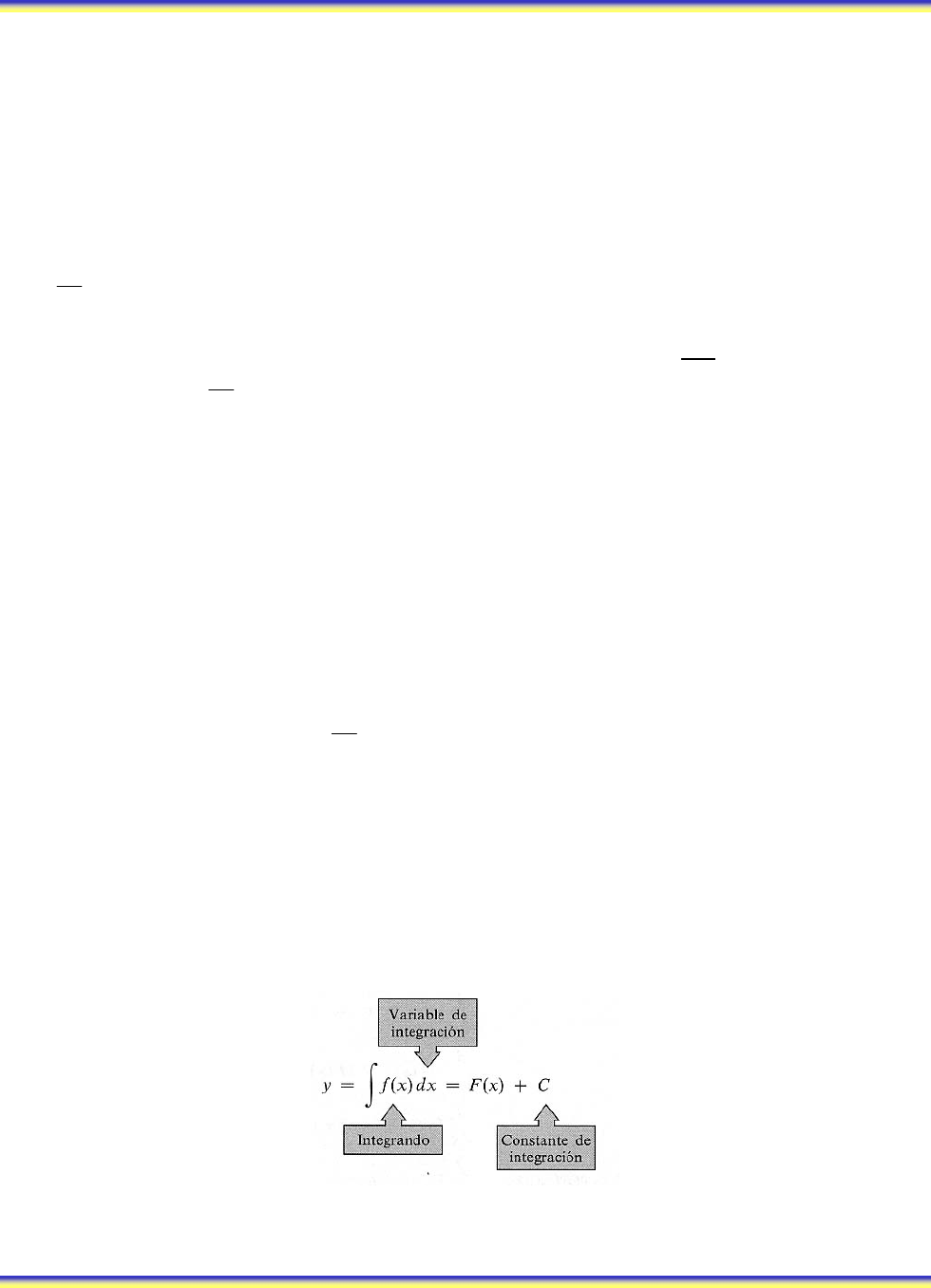 UNIVERSIDAD DE CONCEPCIÓN Prof. Dr. Raúl F Jiménez 36 CAPITULO 4: CÁLCULO INTEGRAL 4.1. Primitivas e integración indefinida Hasta este instante hemos resuelto el problema: dada una función, hallar sui derivada. En muchas aplicaciones importantes aparece el problema inverso: dada la derivada de una función, hallar la función original. Por ejemplo: Hallar una función F cuya derivada es F’(x)=3x2. Como 3d x 3x dx ⎡ ⎤ =⎣ ⎦ 2 , entonces la respuesta es F(x) = x3 La función F se llama antiderivada de F’. Conviene usar la frase: F(x) es una antiderivada de f(x). En efecto, como también 3d x 4 3x dx ⎡ ⎤+ =⎣ ⎦ 2 , entonces también es respuesta F(x) = x3 + 4. Más aun, la derivada de x3 + C, siendo C una constante cualquiera, implica que la respuesta será: F(x) = x3 + C. Definición: Una función F se llama antiderivada (o primitiva) de una función f, si F ‘(x) = f(x). Luego, un primer resultado sería: Si F es una antiderivada de f, entonces G es una antiderivada de f si y sólo si G es de la forma G(x) = F(x) + C donde C es una constante arbitraria. Notación: Si y = F(x) es una antiderivada de f, entonces se dice que F(x) es una solución de la ecuación dy f(x) dx = Note que efectivamente se trata de una ecuación pues hay una igualdad y una incógnita, la función y. Dado que la incógnita está sufriendo la acción de la derivada, esta ecuación se llama ecuación diferencial. Cuando se resuelve una ecuación de este tipo, es conveniente escribirla en su forma diferencial equivalente dy =f(x)dx La operación que permite hallar todas las soluciones (o solución general) de esta ecuación se llama integración y se denota por el símbolo ∫ . UNIVERSIDAD DE CONCEPCIÓN Prof. Dr. Raúl F Jiménez 37 donde f(x) se llama integrando, la diferencial que acompaña a f(x) nos indica la variable de integración y C se llama constante de integración. La expresión se llama integral indefinida de f respecto de x. Los términos integral indefinida y primitiva general son sinónimos. ∫ f(x)dx El hecho que una operación sea la inversa de la otra, se refleja de la siguiente manera: • La integración es la inversa de la derivación: basta sustituir F’(x) por f(x) en la definición anterior: F '(x)dx F(x) C= +∫ • La derivación es la inversa de la integración: ⎡ ⎤ =⎣ ⎦∫ d f(x)dx f(x) dx pues . f(x)dx F(x) C= +∫ Esta relación entre derivación e integración, nos permite obtener algunas fórmulas de integración directamente de las fórmulas de derivación. En efecto REGLAS BASICAS DE INTEGRACIÓN Fórmulas de derivación Fórmulas de integración [ ]d c 0 dx = 0dx C=∫ [ ]d kx k, k 0 dx = ≠ kdx kx C, k 0= + ≠∫ [ ]d kf(x) kf '(x) dx = kf(x)dx k f(x)dx=∫ ∫ [ ]d f(x) g(x) f '(x) g'(x) dx ± = ± [ ]f(x) g(x) dx f(x)dx g(x)dx± = ±∫ ∫ ∫ n nd x nx dx −⎡ ⎤ =⎣ ⎦ 1 n 1 n xx dx C, n 1 n 1 + = + ≠ +∫ − Ejemplos: 1. 2 2x 33xdx 3 xdx 3 C x C 2 2 ⎛ ⎞ = = + =⎜ ⎟ ⎝ ⎠ ∫ ∫ + UNIVERSIDAD DE CONCEPCIÓN Prof. Dr. Raúl F Jiménez 38 2. ( )2 2 3 2 3 3 23x 2x dx 3x dx 2xdx x x C x x C 3 2 + = + = + + = + +∫ ∫ ∫ 2 3. − −= = + = − −∫ ∫ 2 3 3 2 1 xdx x dx C C 2x 2 + 1 x 4. = = + =∫ ∫ 3 2 31 2 2x 2xdx x dx C x C 3 3 2 + 5. ( )− − = − = + +∫ ∫ 2 2 2 3x 4 4dx 3 4x dx 3x C xx 4.2 Condiciones iniciales y soluciones particulares Hemos dicho que la ecuación y =∫f(x)dx admite infinitas soluciones que difieren en una constante. Esto significa que las gráficas de dos primitivas cualesquiera de f son traslaciones verticales una de la otra. Por ejemplo, en la figura de la izquierda mostramos varias gráficas de primitivas de la forma: y = 2 3(3x 1)dx x x C− = − +∫ (solución general) para diversos valores enteros de C. Cada una de esas primitivas es una solución de la ecuación dy 2 dx 3x 1= − Una solución particular de esta ecuación será una única primitiva, es decir, conocemos el valor de la constante C. En muchas aplicaciones de la integración, hay información suficiente como para conocer este valor particular de C. Esta información se llama condición inicial (que abreviamos como c.i.), nombre debido al hecho que en las aplicaciones, generalmente la variable independiente es el tiempo t. Por ejemplo, en el caso anterior, una c.i. sería que la curva debe pasar por el punto (2, 4). Para hallar esta curva en particular, usamos la información: F(x) = x3 – x +C (solución general) F(2) = 4 (condición inicial) Resulta que C = -2, como puede deducirse fácilmente. Como ejemplo, veamos una aplicación relativa a la gravitación: UNIVERSIDAD DE CONCEPCIÓN Prof. Dr. Raúl F Jiménez 39 Se lanza una bola hacia arriba, como muestra la figura de la izquierda, con una velocidad inicial de 64 pies/s y desde una altura inicial de 80 pies. a) Hallar la función posición que describe la altura s en función del tiempo t. b) ¿Cuándo llega la bola al suelo? Solución: Sea t = 0 el instante inicial (lo que no sorprende a nadie…), luego las c.i. son: s(0)=80 altura inicial, y s’ (0)=64 pies/s la velocidad inicial. Tomando la aceleración de gravedad como -32pies/s2, podemos escribir s’’(t) = -32. Integrando, s’(t) = = − = − +∫ ∫ 1s ''(t)dt 32dt 32t C Como s’(0)=64= -32(0)+C1 ⇒ C1 = 64. Análogamente, integrando s’(t) obtenemos 2 2s(t) s'(t)dt ( 32t 64)dt 16t 64t C= = − + =− + +∫ ∫ Usando la altura inicial, s(0)=80=-16(02)+64(0)+C2 ⇒ C2=80. NOTA: Sospechamos que debíamos integrar dos veces, es decir, deberíamos tener dos constantes de integración. Por esta razón, usamos C1 y luego C2. Con los cálculos anteriores, tenemos la respuesta a): s(t)= -16t2 +64t+80. Para responder a b), debemos resolver la ecuación s(t)=0, es decir, -16t2+ 64t +80=0. Luego, -.16(t +1)(t-5)=0 ⇒ t = -1,5. Como t > 0, concluimos que la bola toca el suelo 5 segundos después de ser lanzada. NOTA: La función posición tiene la forma: s(t) = 2 0 1 gt v t s 2 0 + + , donde g = -32,